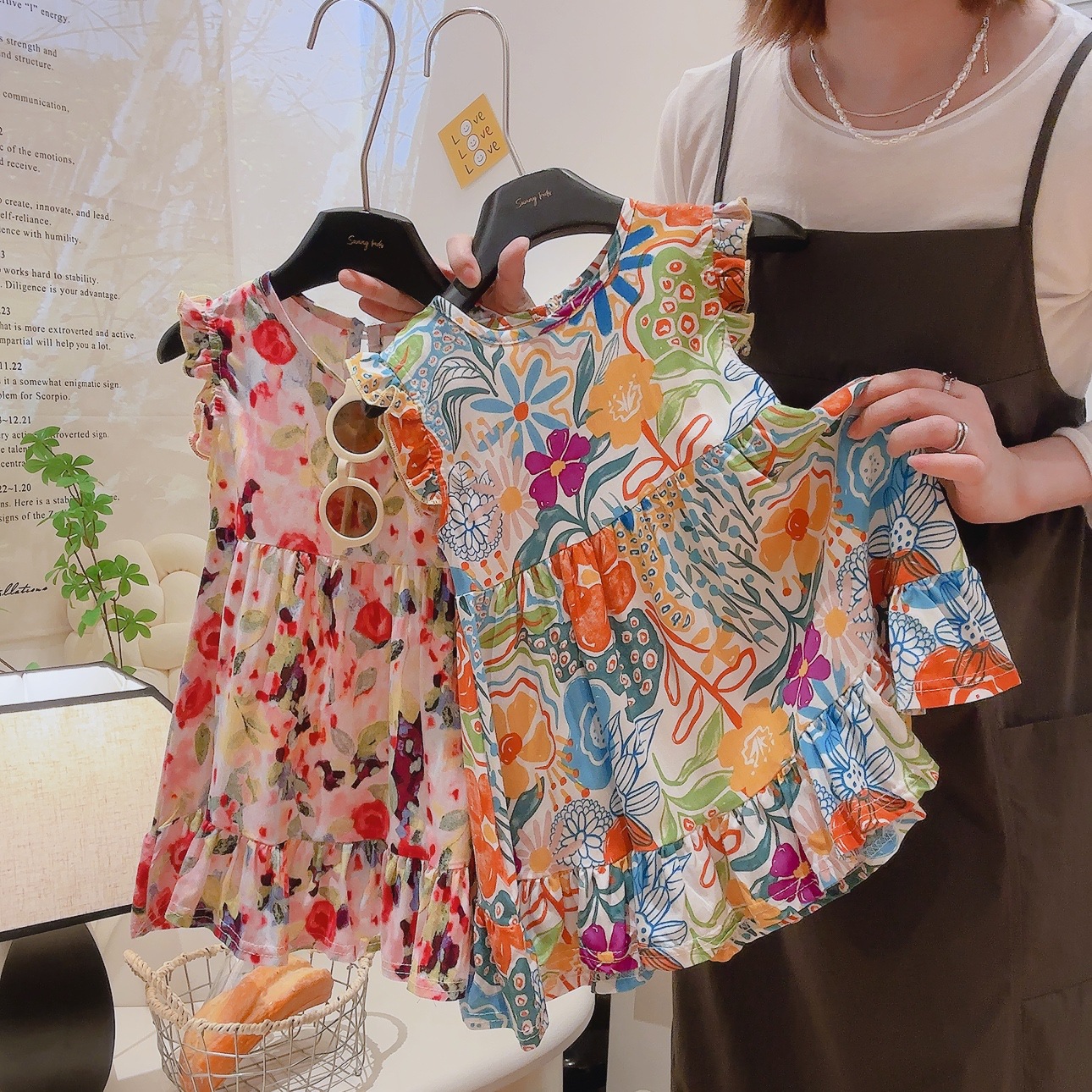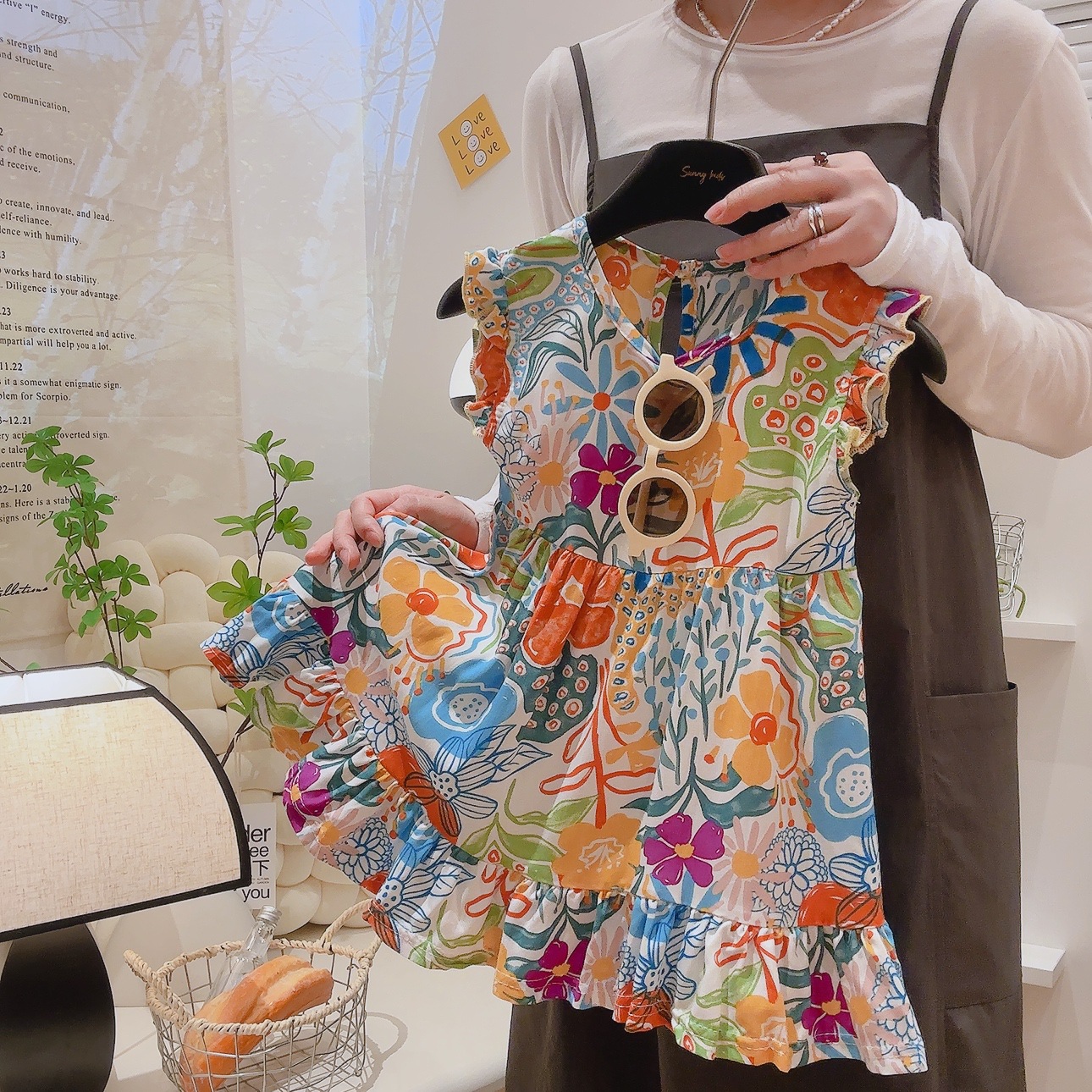 여아 꽃무늬 레이스 코튼 실크 원피스 여름 한국 스타일 워크 드레스 세련된 공주풍 달콤한 스타일 통기성 좋은 러플스토어 가기