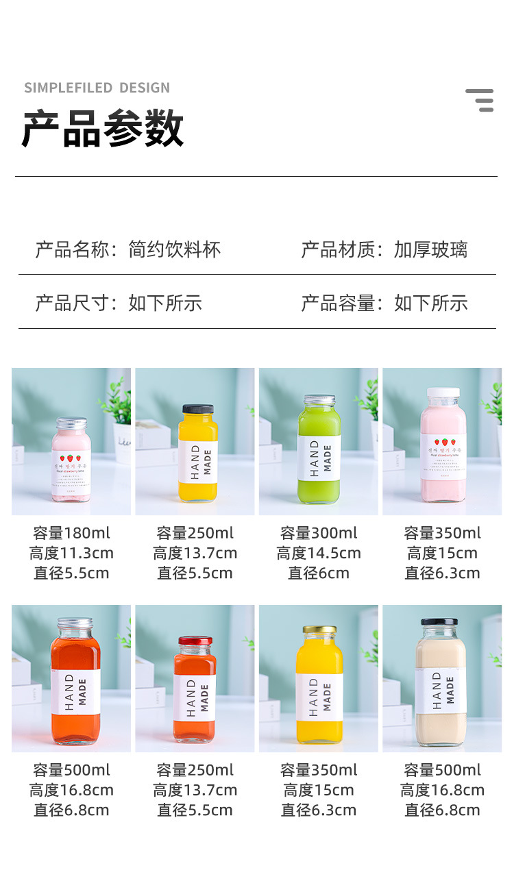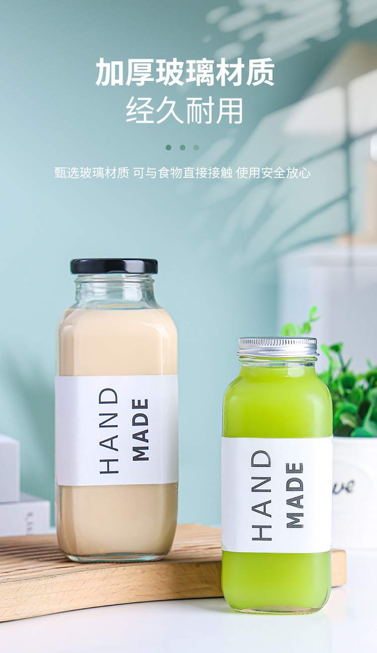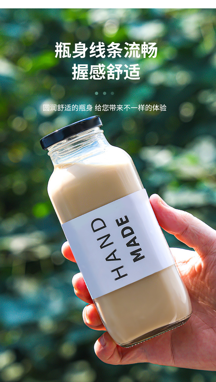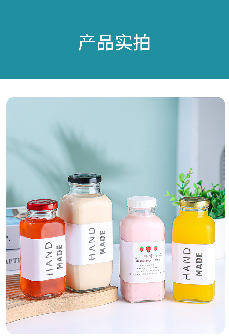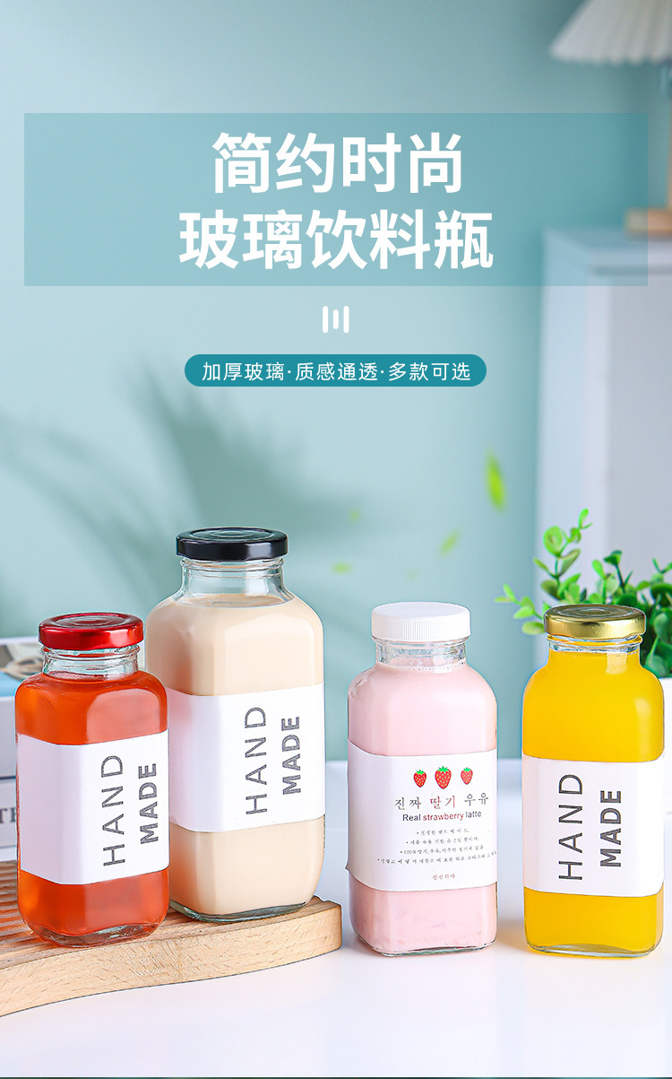 제조 업체 도매 다기능 우유 차 콜드 브루 커피 유리 팔각형 사각형 주스 음료 유리 병 요구르트 병