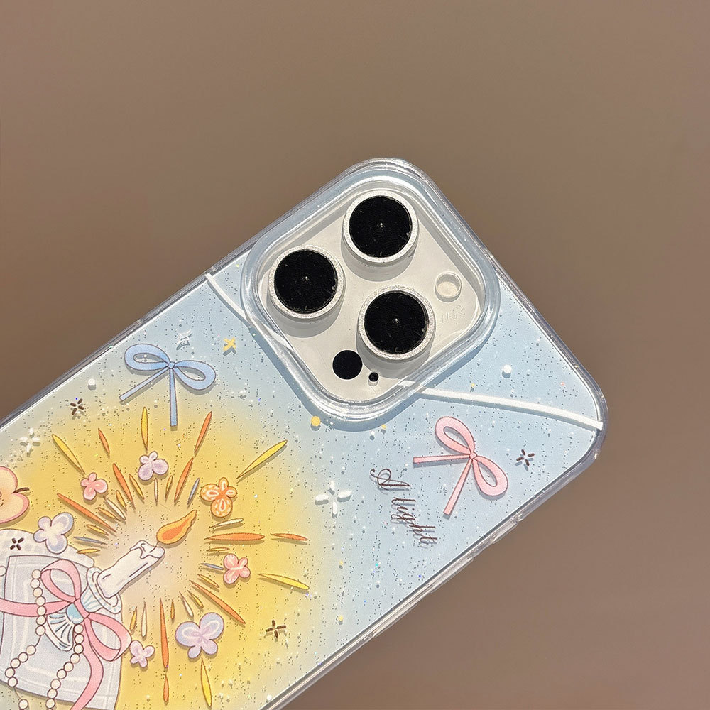 Apple 16PM 귀여운 13 휴대폰 케이스 iphone15pro 보호에 적합한 반짝이는 쉘 클라우드 캔들 보우