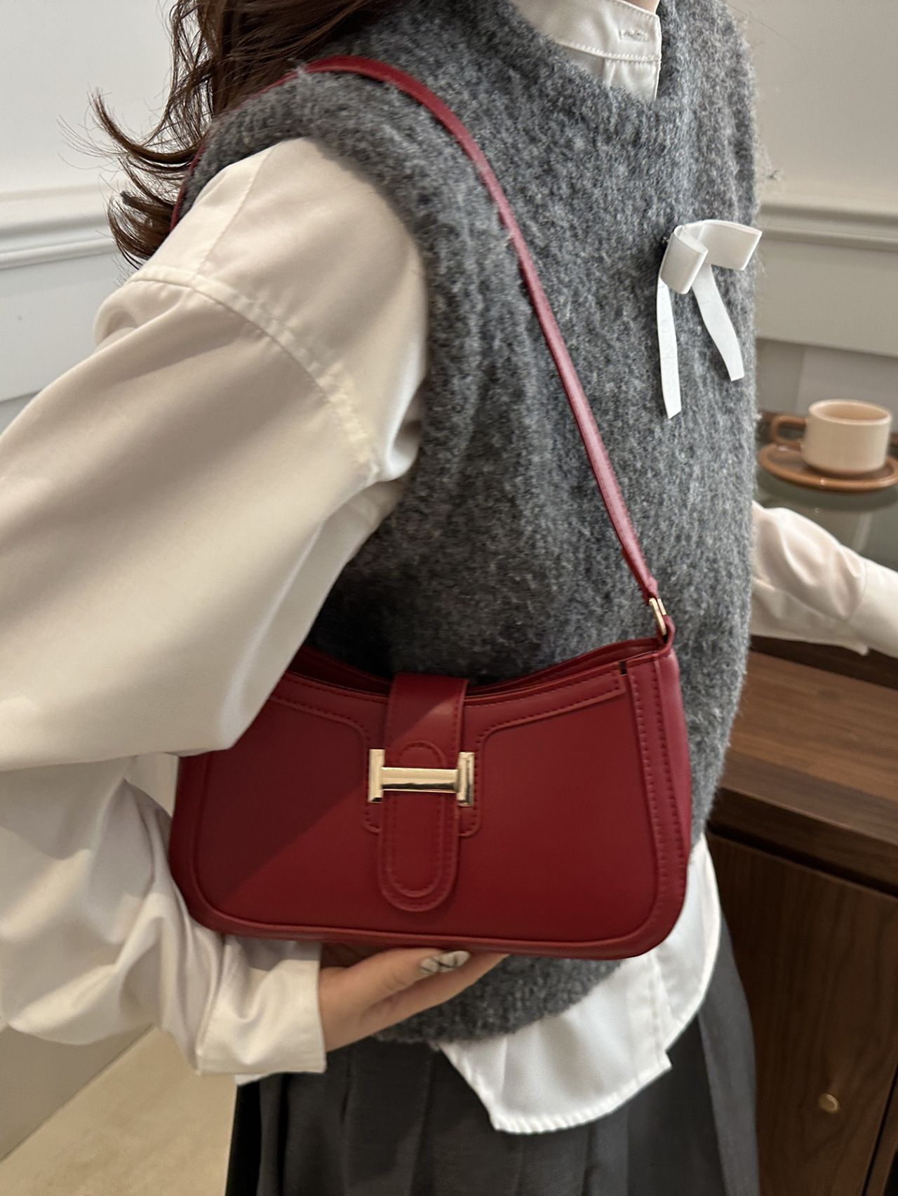 캐주얼 질감 벨트 장식 가방 2025 새로운 봄 여성 가방 솔리드 컬러 휴대용 어깨 크로스 바디 겨드랑이 가방 여성을위한
