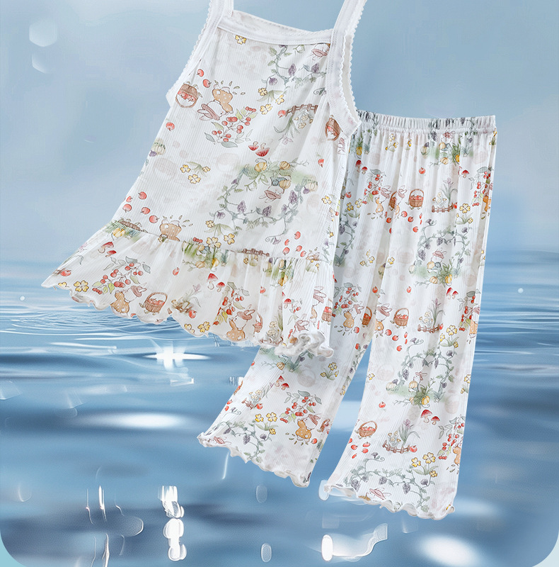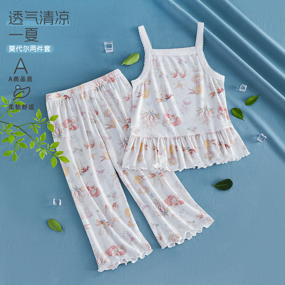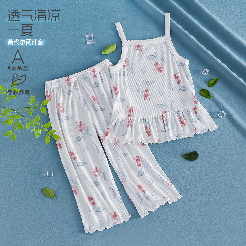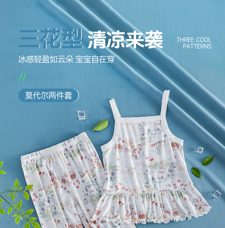 여름 얇은 여자 모달 아동 잠옷 카테고리 A 시원한 얼음 실크 아기 에어컨 의류 2 피스 홈 의류 세트