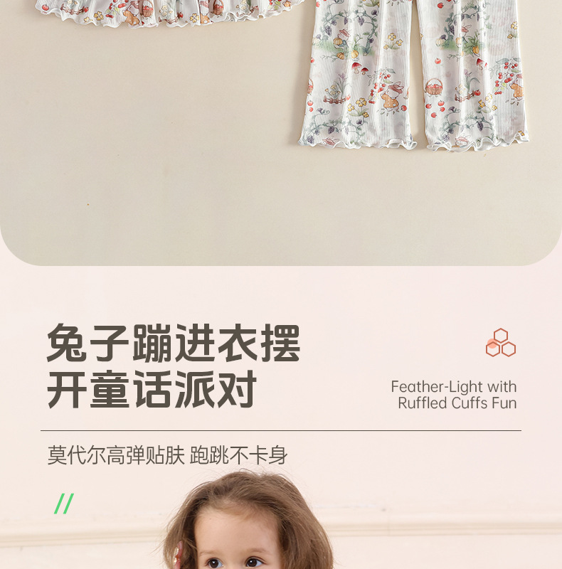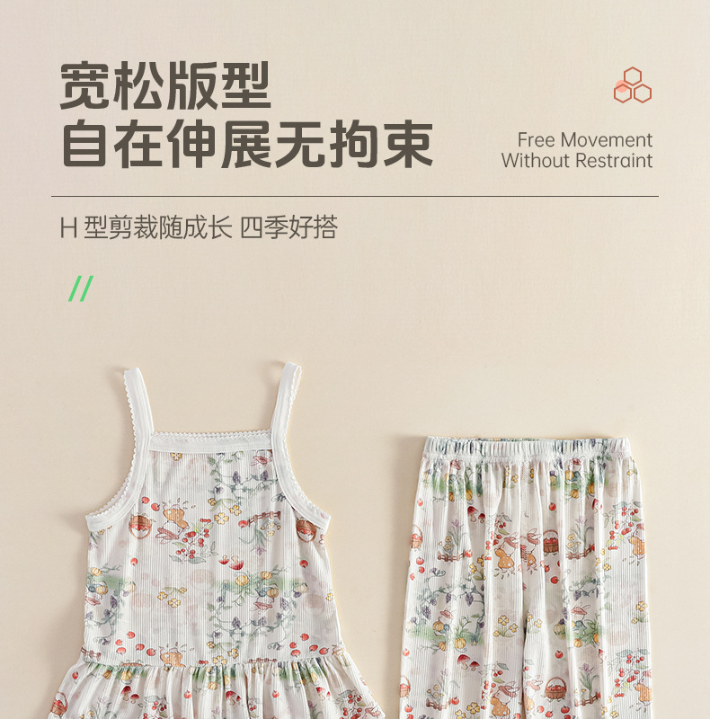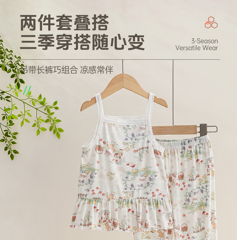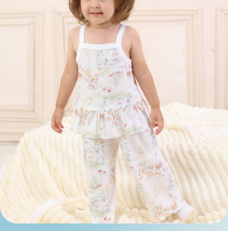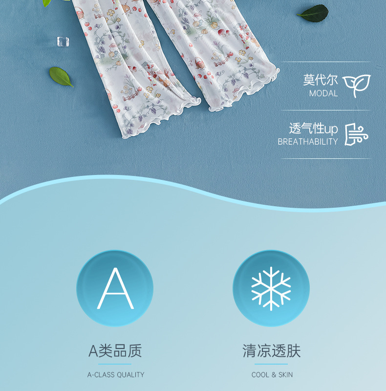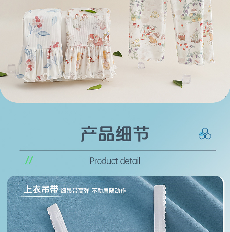 여름 얇은 여자 모달 아동 잠옷 카테고리 A 시원한 얼음 실크 아기 에어컨 의류 2 피스 홈 의류 세트