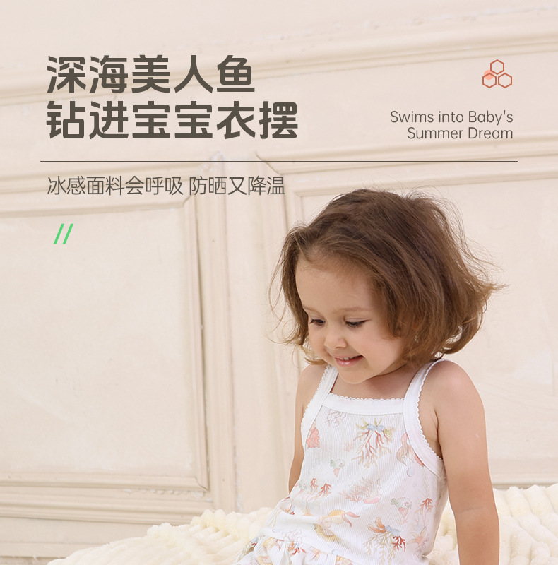여름 얇은 여자 모달 아동 잠옷 카테고리 A 시원한 얼음 실크 아기 에어컨 의류 2 피스 홈 의류 세트스토어 가기
