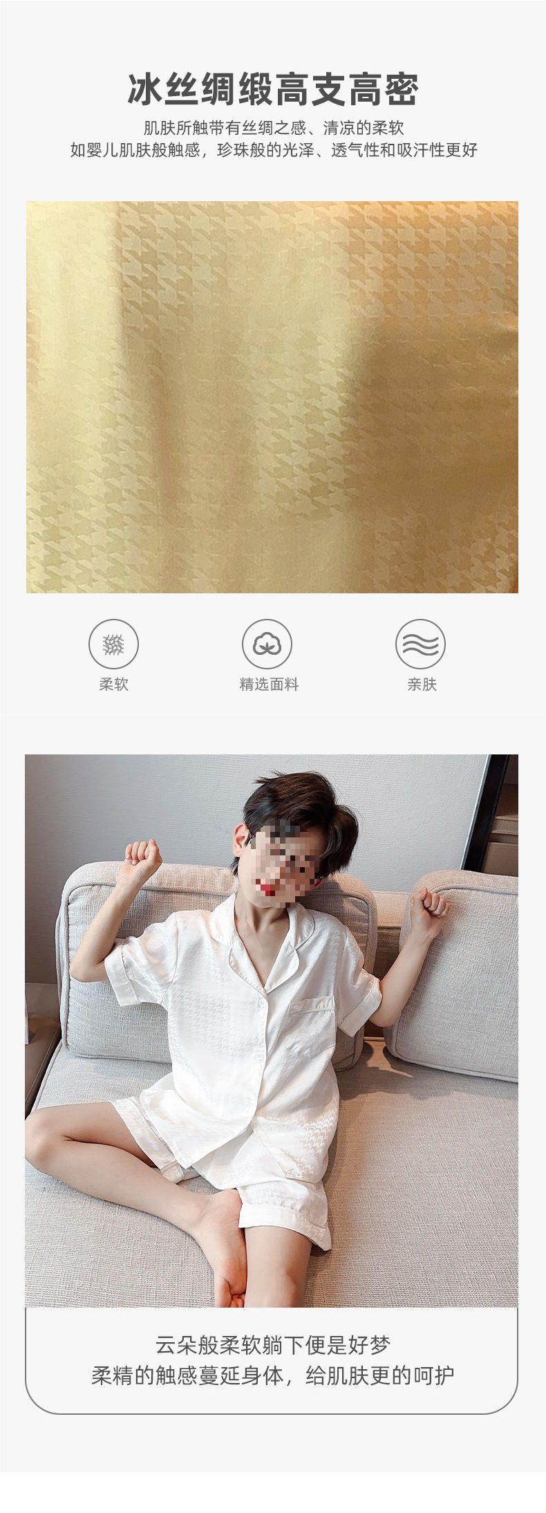 여름 소년 얼음 실크 잠옷, 아동복, 소년 얇은 에어컨 옷, 가디건 양복, 중대형 아동복스토어 가기