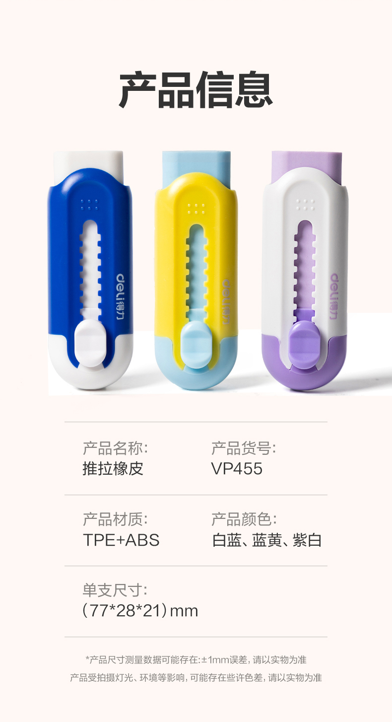어린이와 학생을 위한 델리 푸시풀 지우개, 부스러기가 없는 특수 문구, 매우 깨끗하고 문자를 줄여주는 안전하고 무독성 지우개스토어 가기