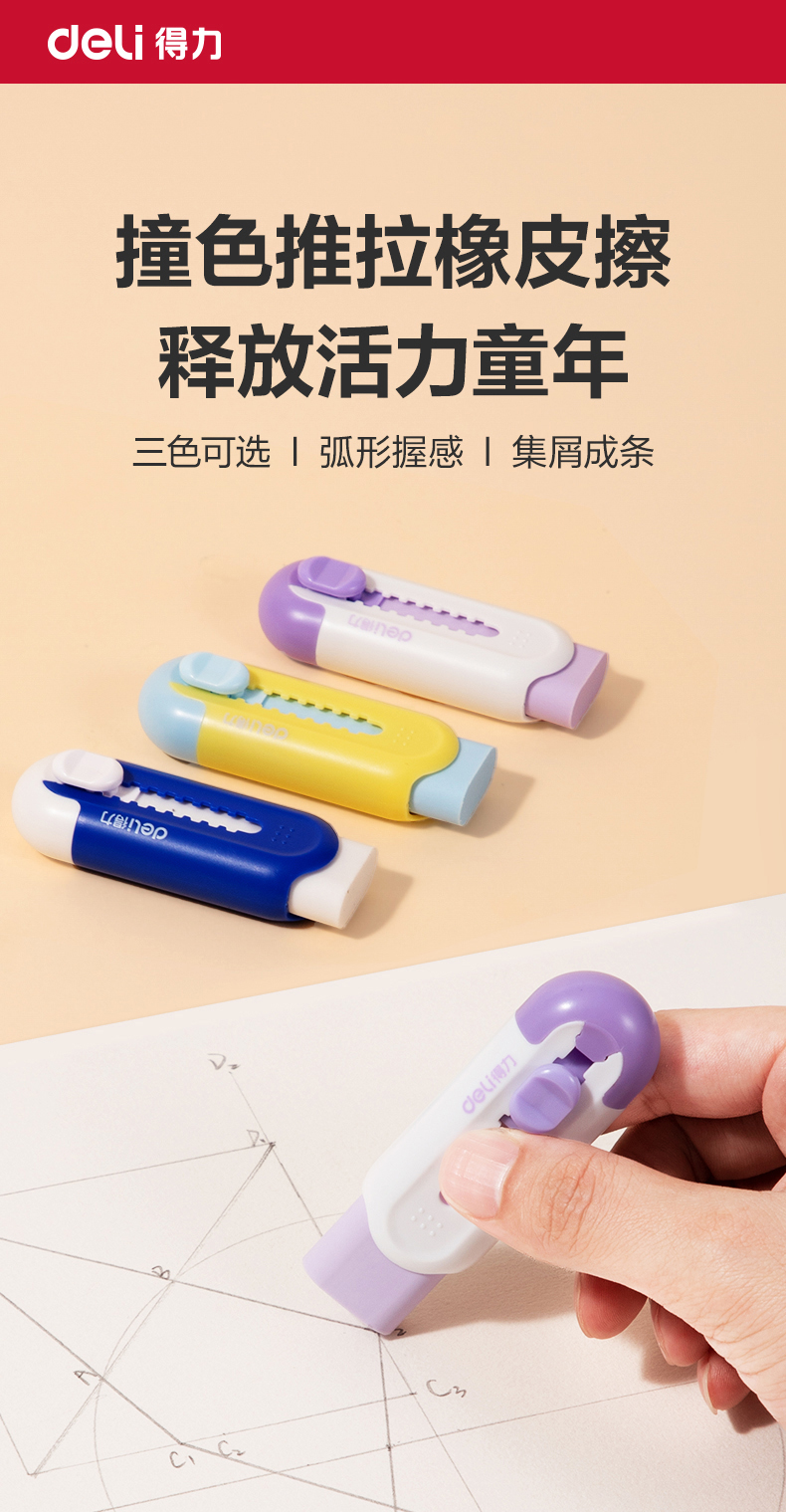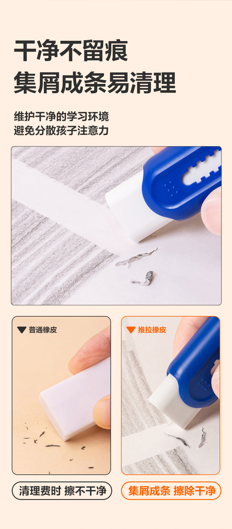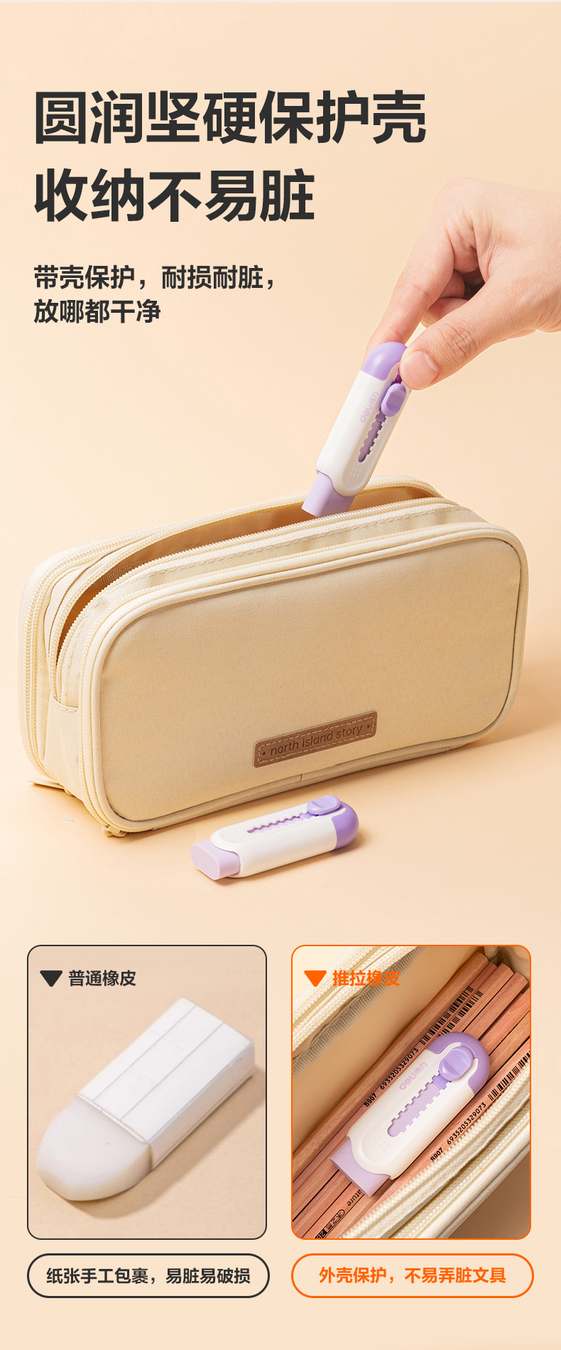 어린이와 학생을 위한 델리 푸시풀 지우개, 부스러기가 없는 특수 문구, 매우 깨끗하고 문자를 줄여주는 안전하고 무독성 지우개