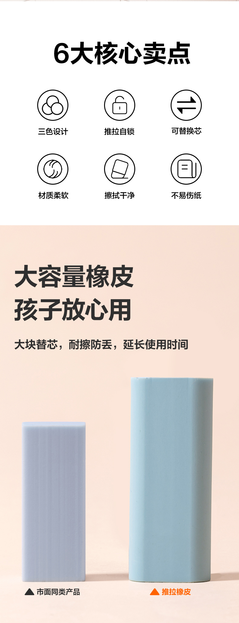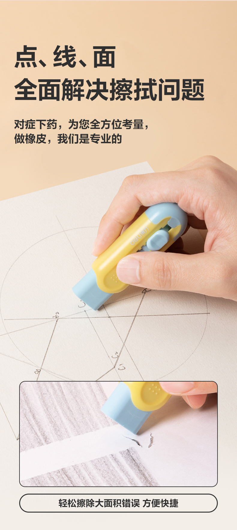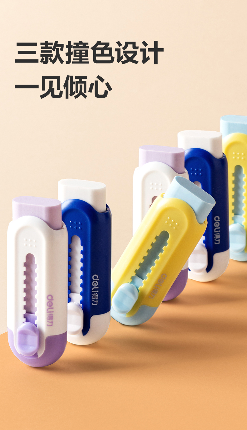어린이와 학생을 위한 델리 푸시풀 지우개, 부스러기가 없는 특수 문구, 매우 깨끗하고 문자를 줄여주는 안전하고 무독성 지우개