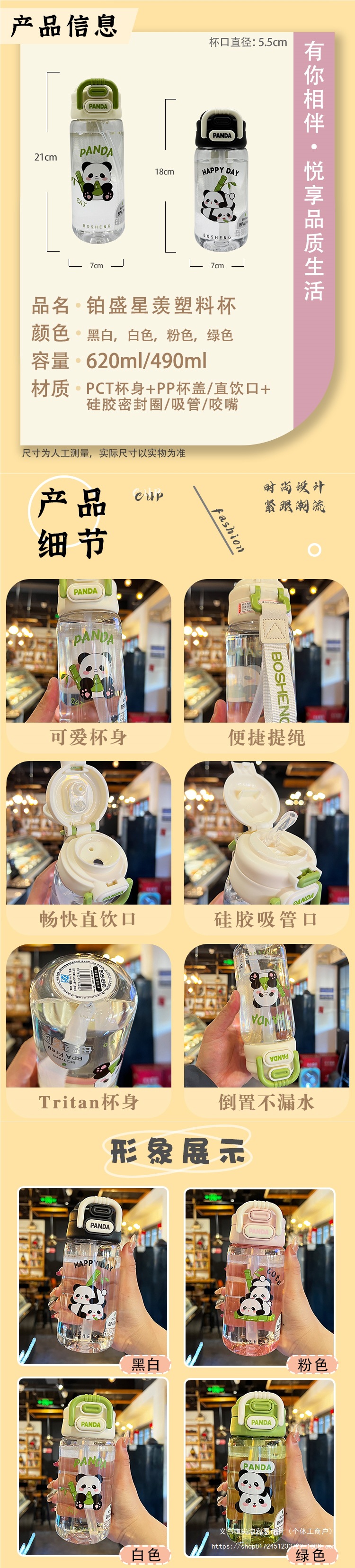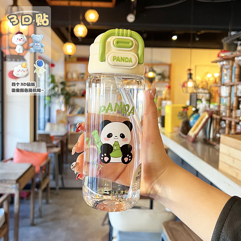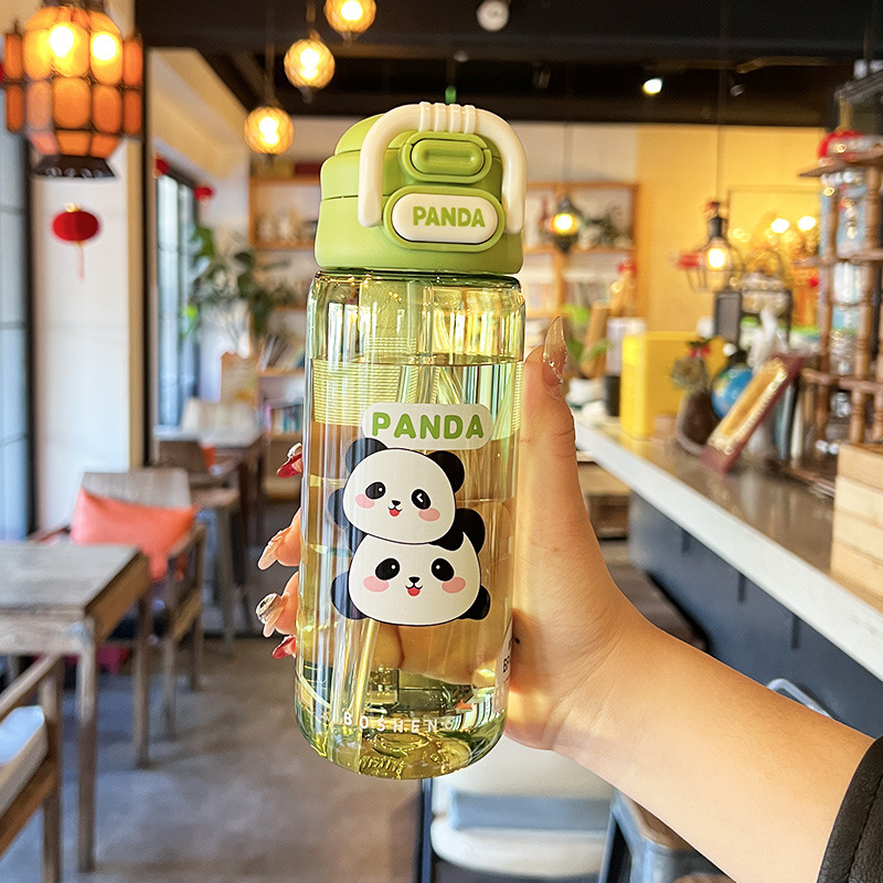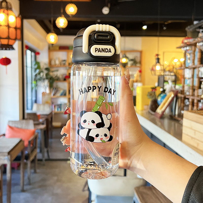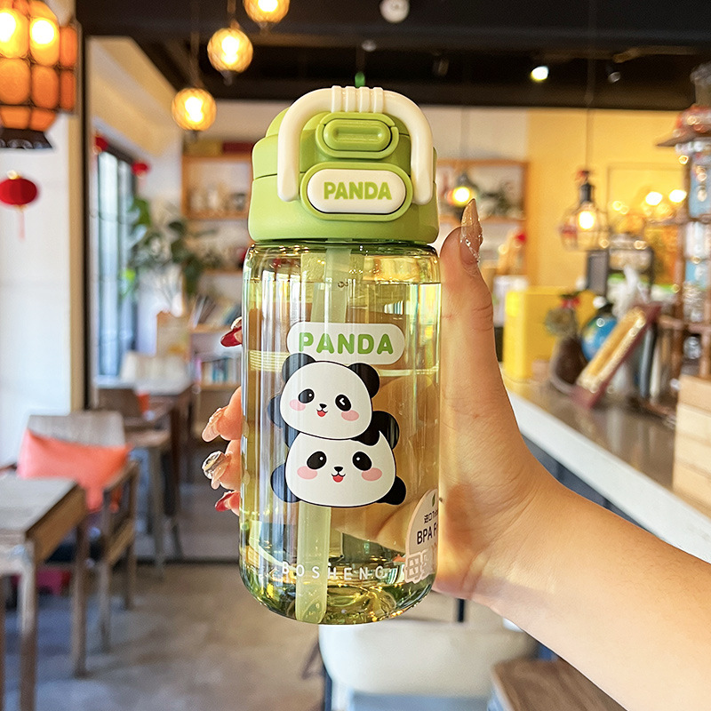 학교에가는 어린이를위한 귀여운 물 컵 플라스틱 밀짚 컵 새로운 여름 소녀 초등 학생 팬더 컵 편리