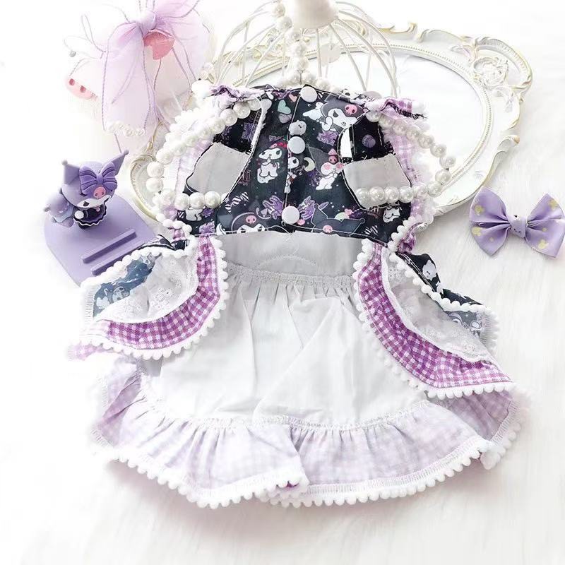 봄과 여름 얇은 보라색 쿠로미 로리타 스타일 개와 고양이 공주 드레스는 중소형견 비숑에 적합합니다.스토어 가기
