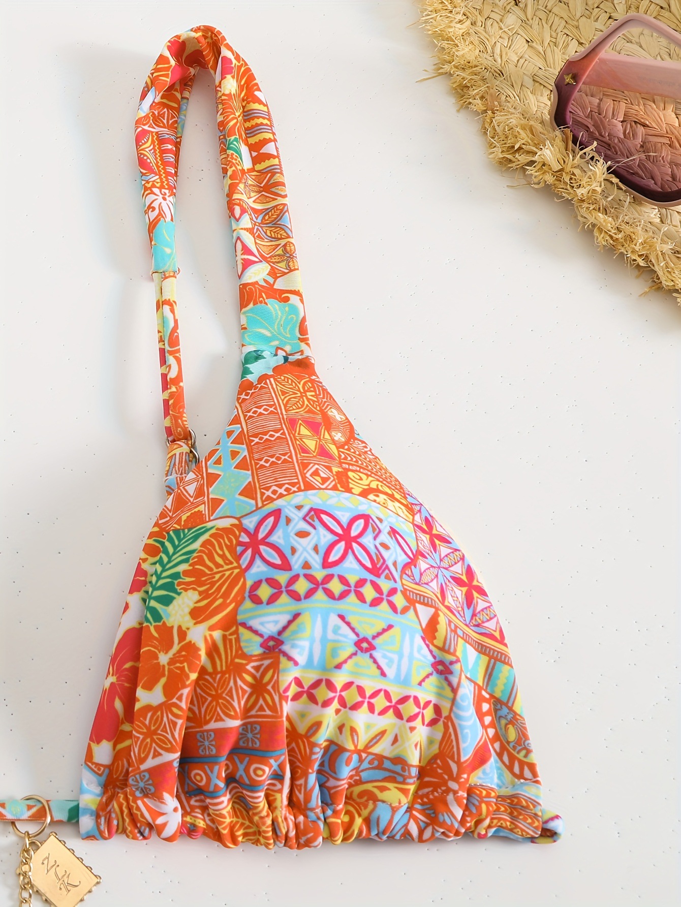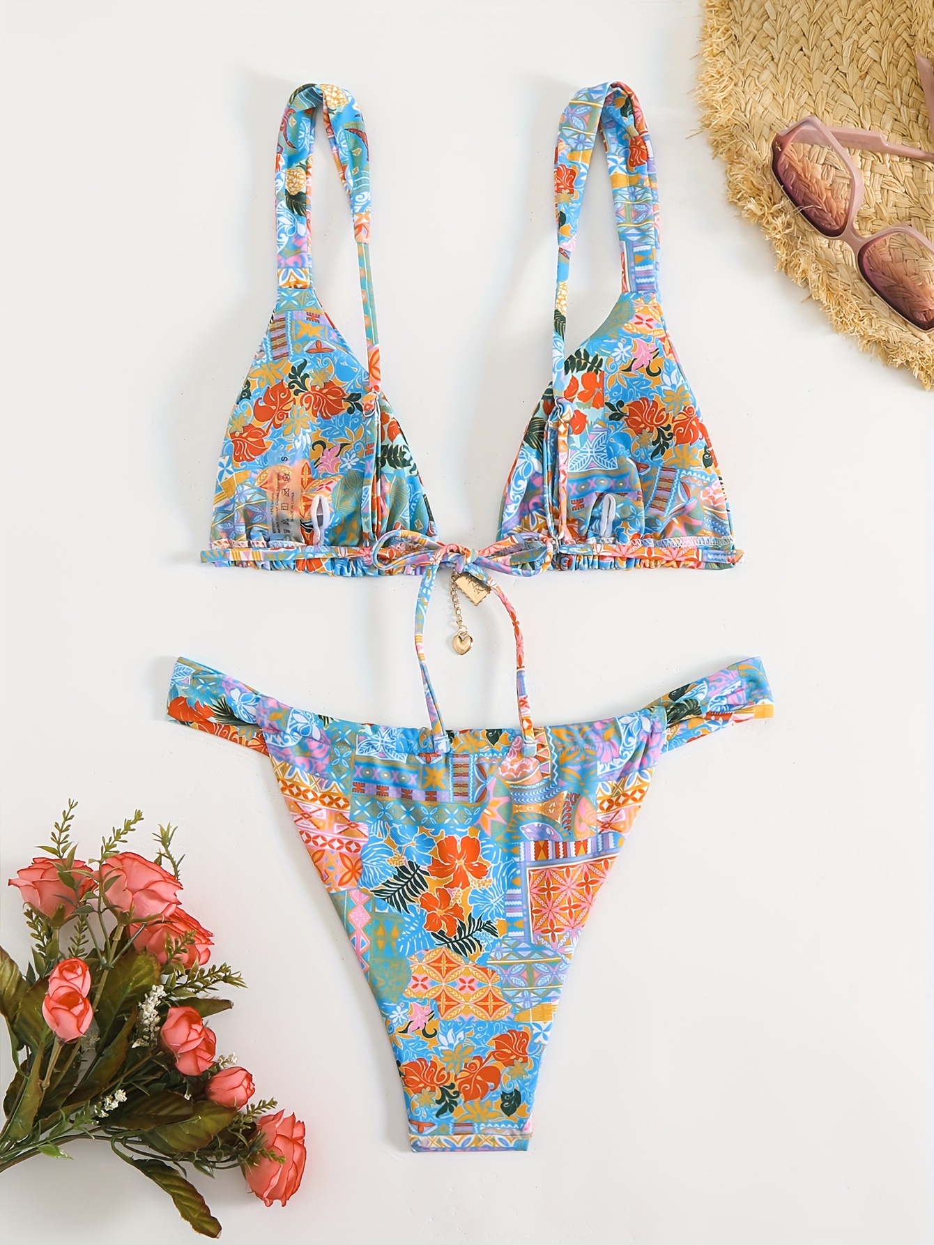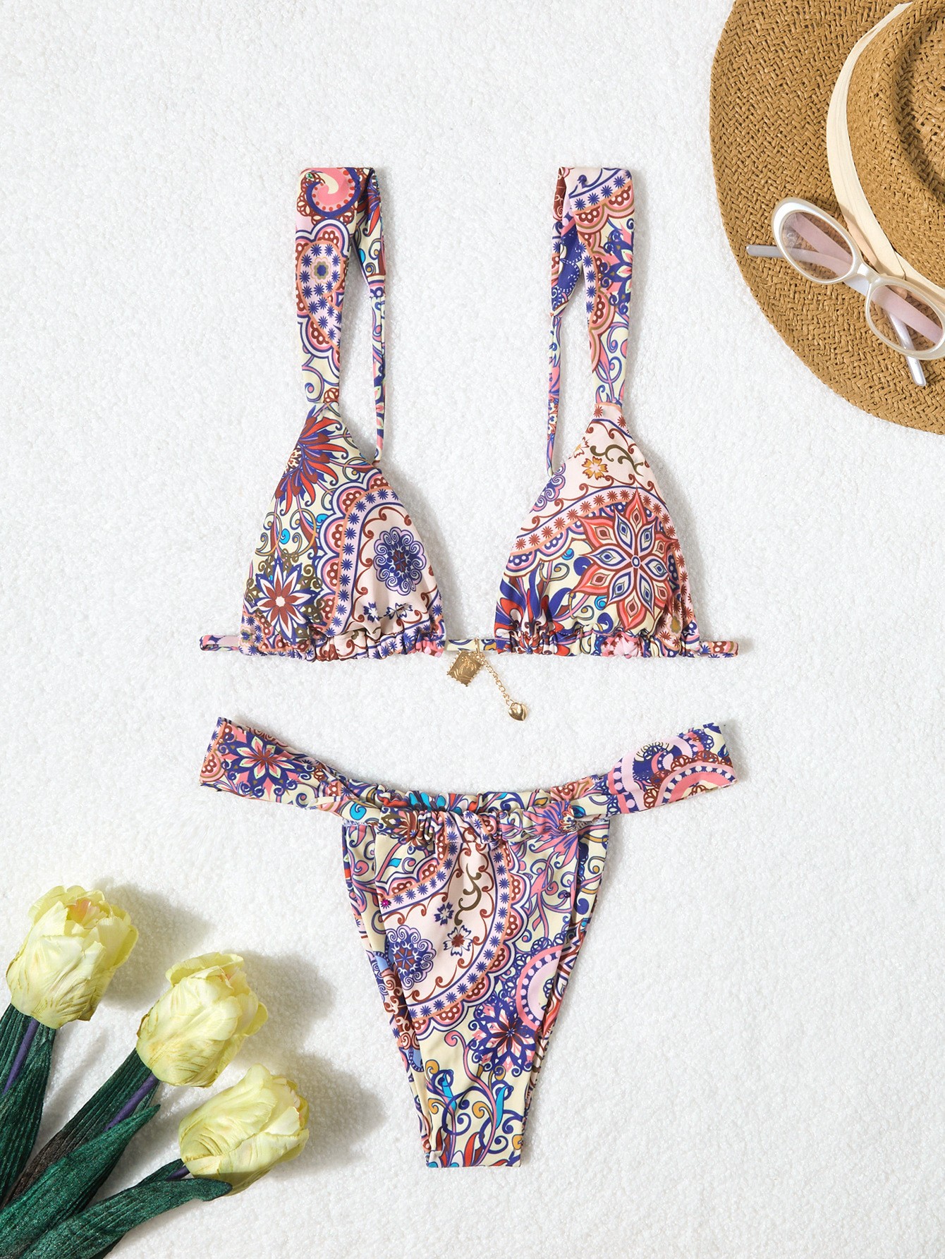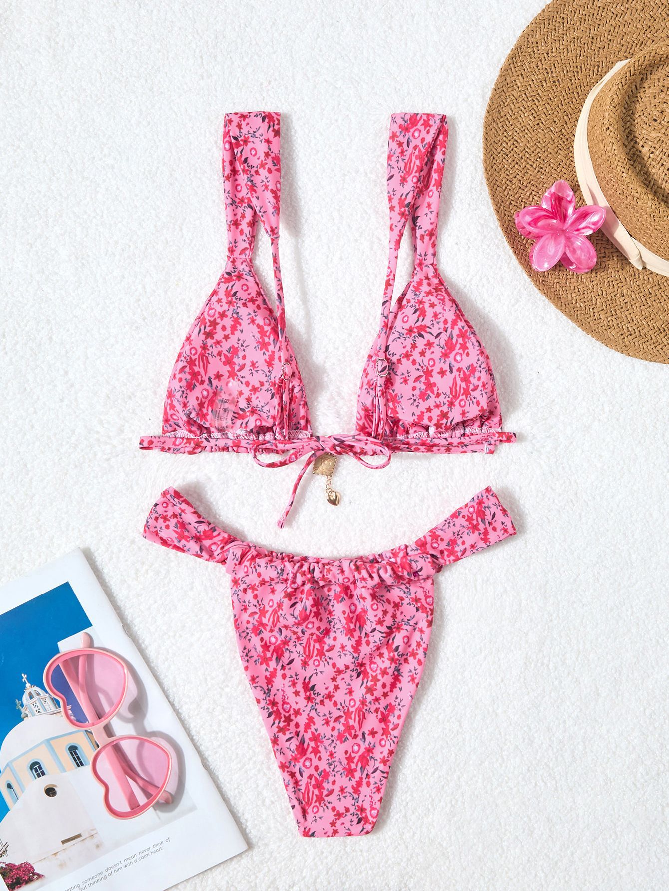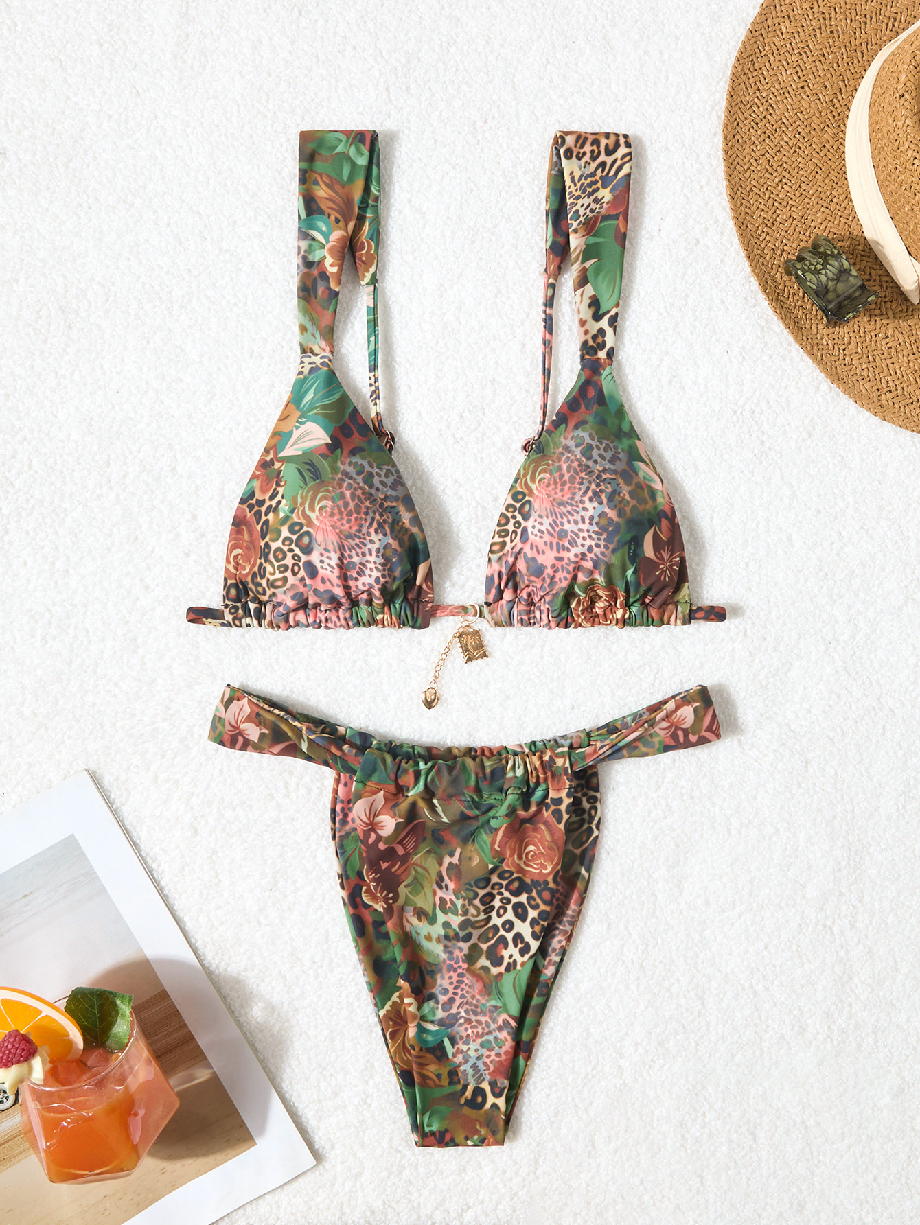 2025 유럽과 미국의 스플릿 수영복 여성 섹시한 레이스 업 프린트 새로운 비키니 투피스 백리스 크로스 보더 수영복 여성