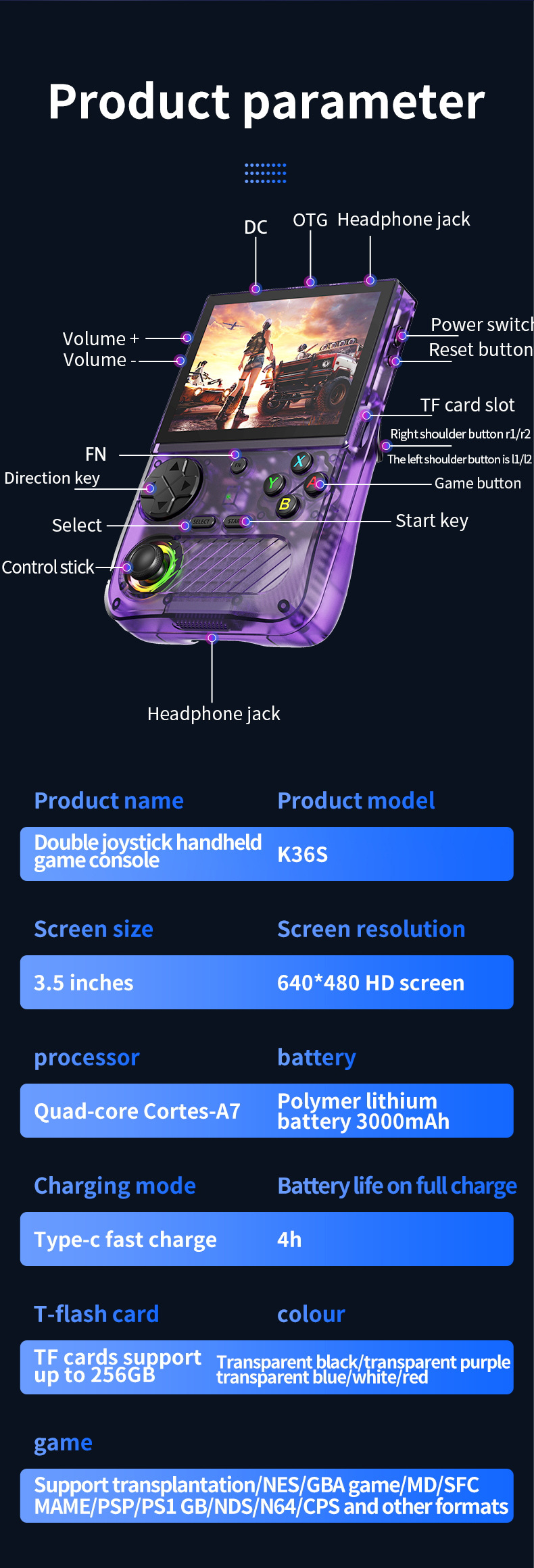 K36S 휴대용 게임 콘솔은 5월에 출시될 새로운 복고풍 향수 오픈 소스 휴대용 게임 콘솔로 온라인 전투 및 WiFi 다기능 연결이 가능합니다.스토어 가기