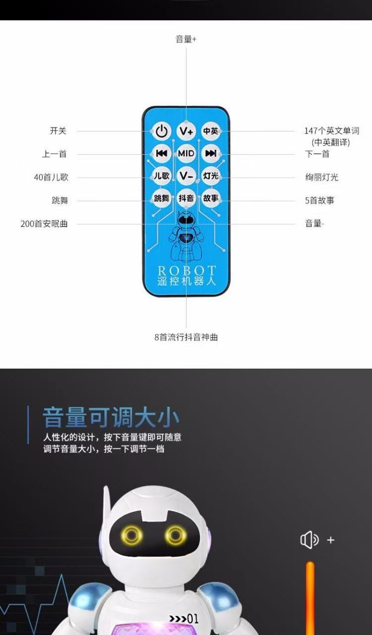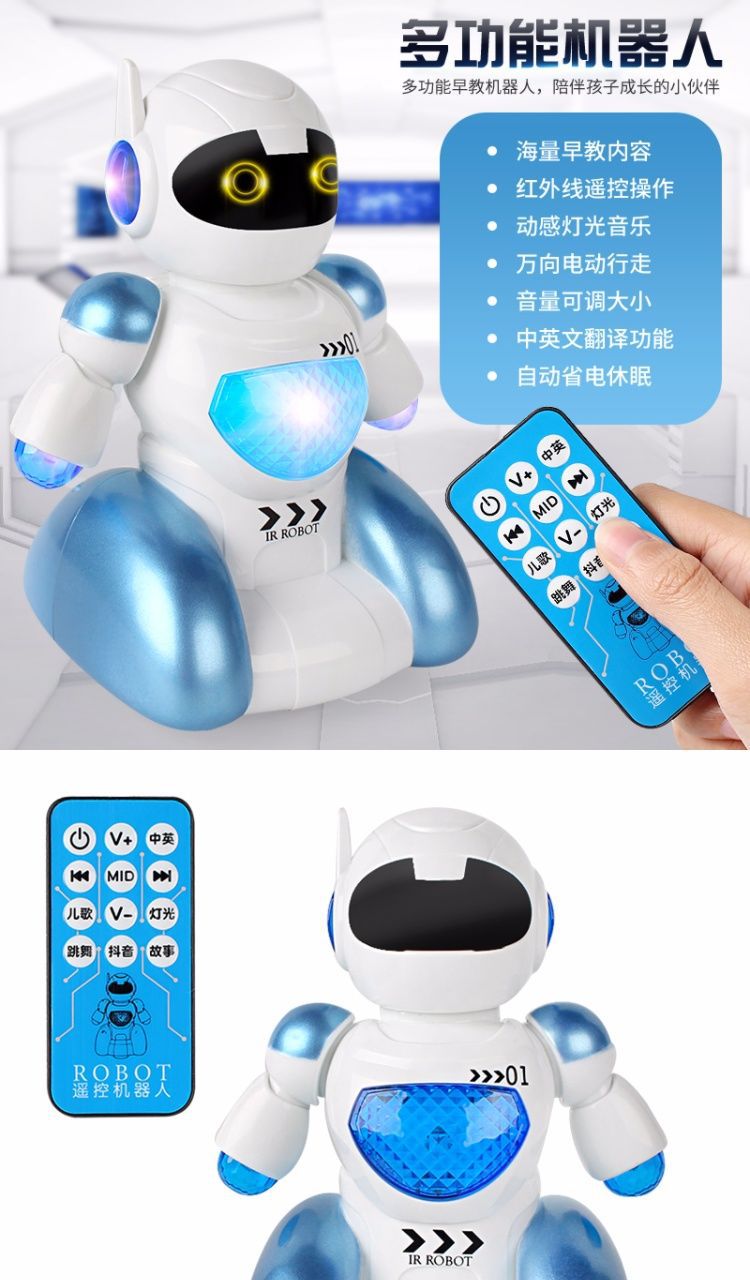 전기 회전 춤 원격 제어 로봇 노래 빛나는 음악 소년 어린이 장난감 다기능 스토리 기계스토어 가기