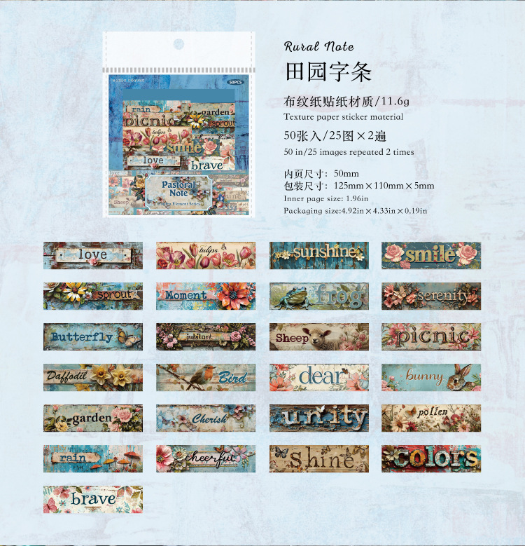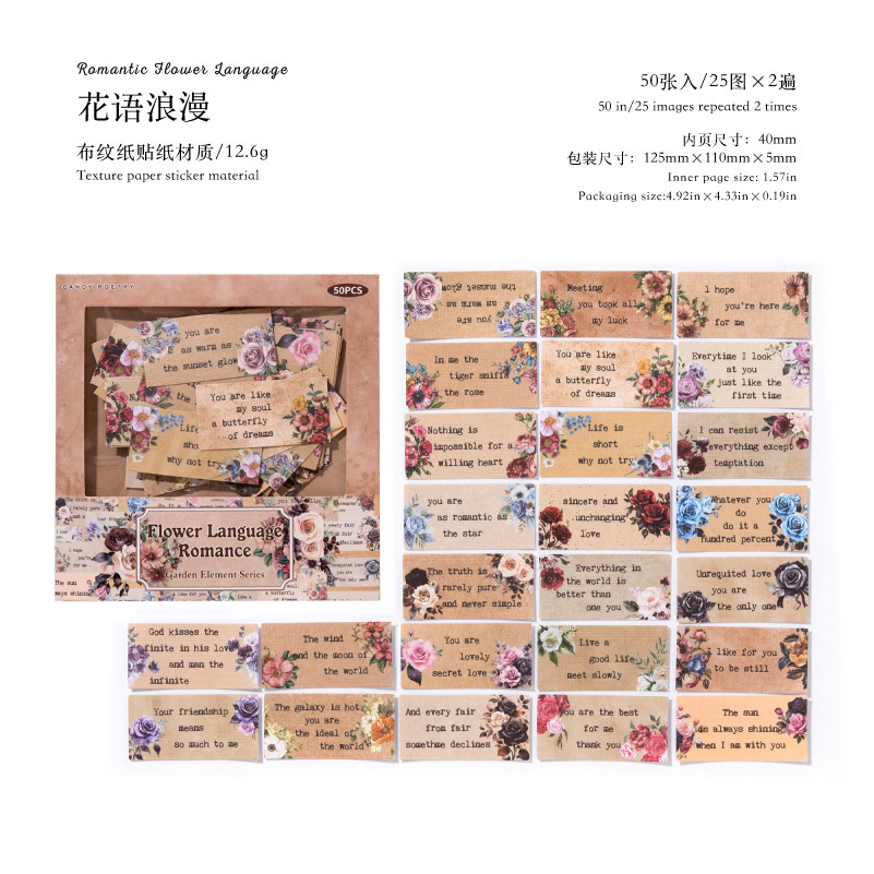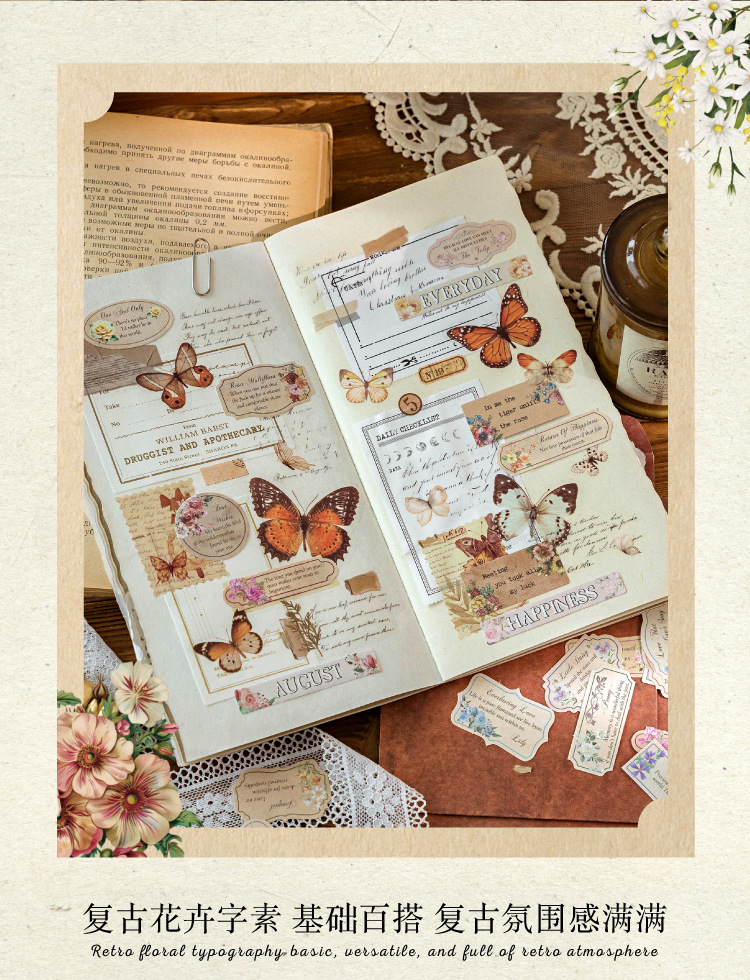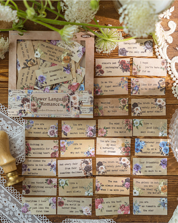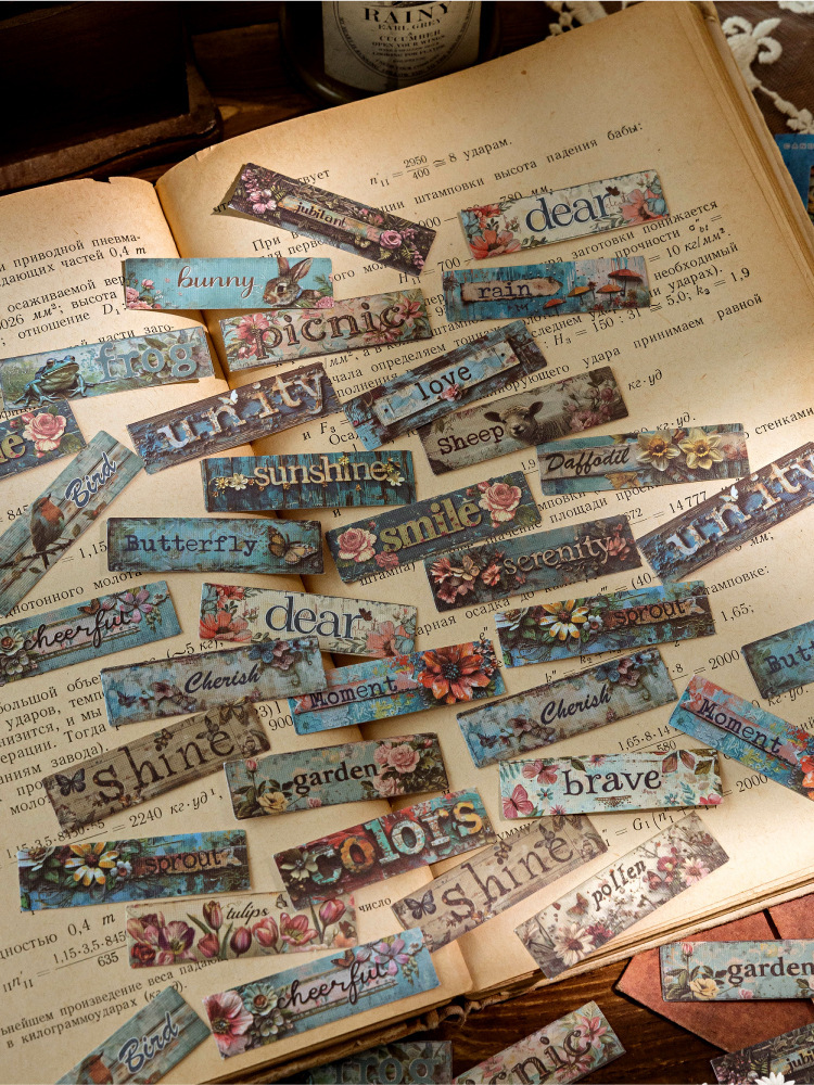 설탕 시 복고풍 텍스트 스티커 팩 정원 단어 시리즈 꽃 단어 다목적 핸드북 패키지 diy 장식 스티커