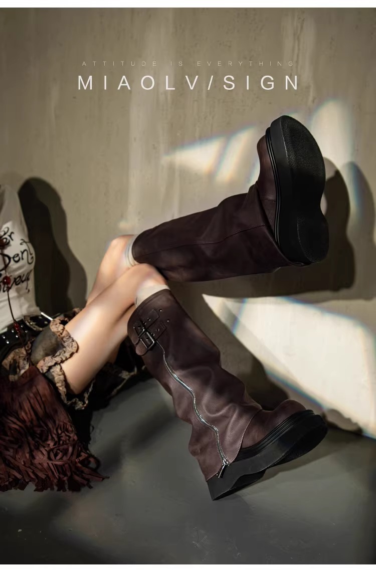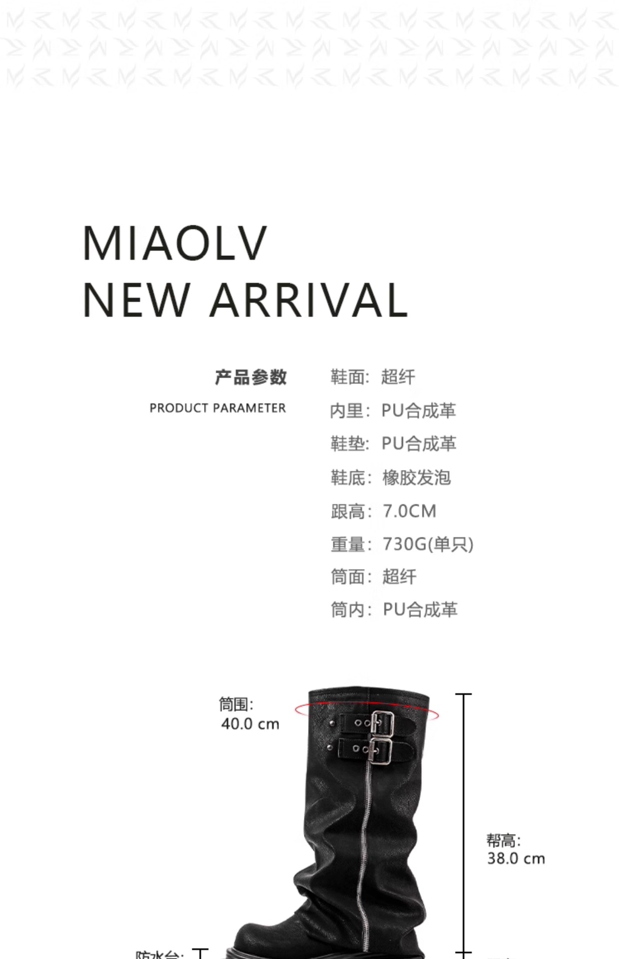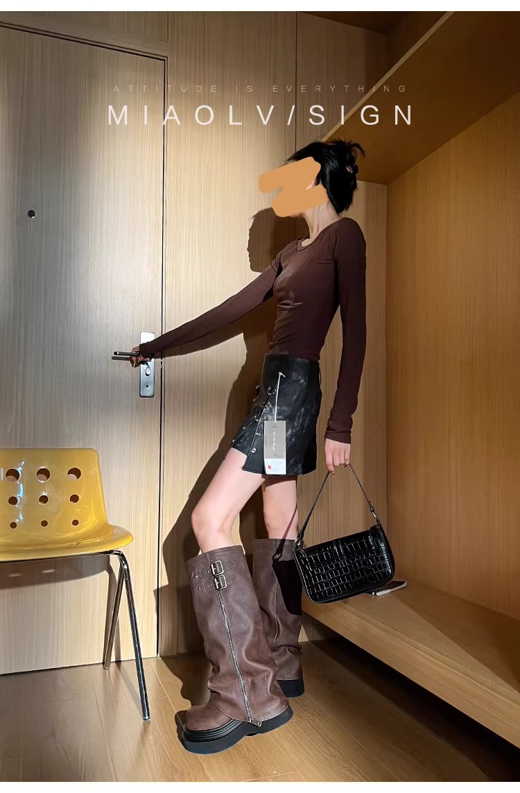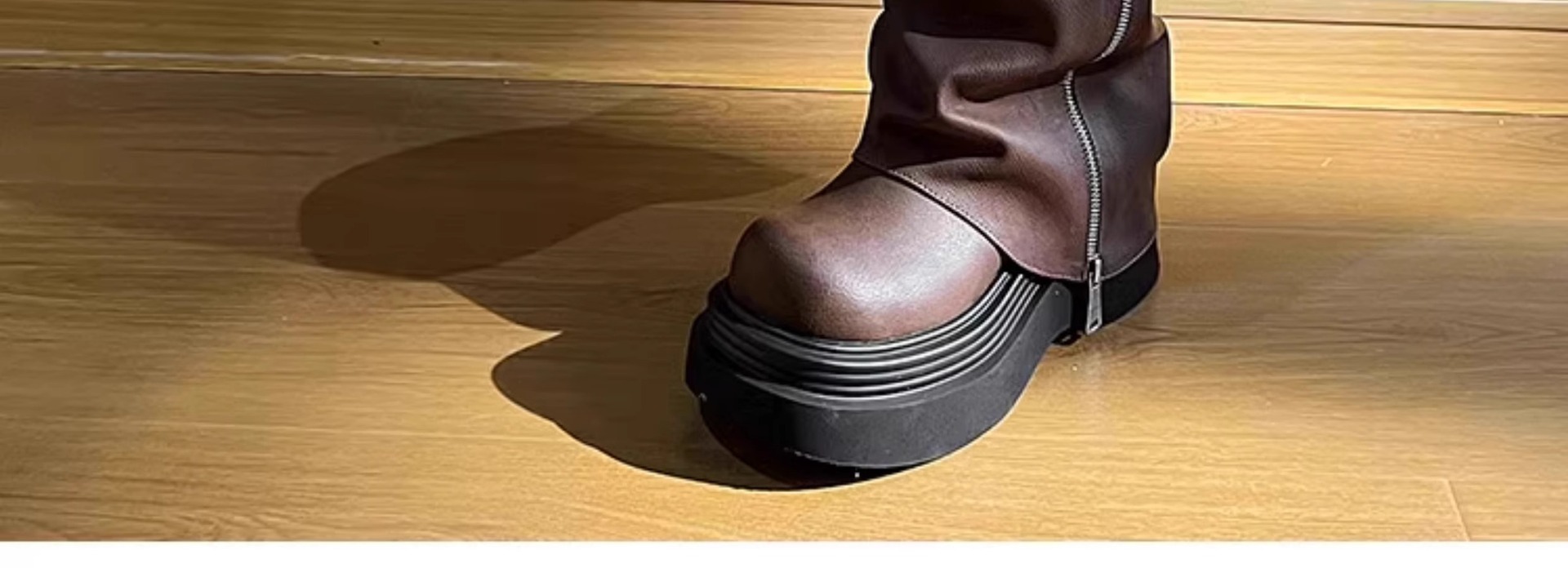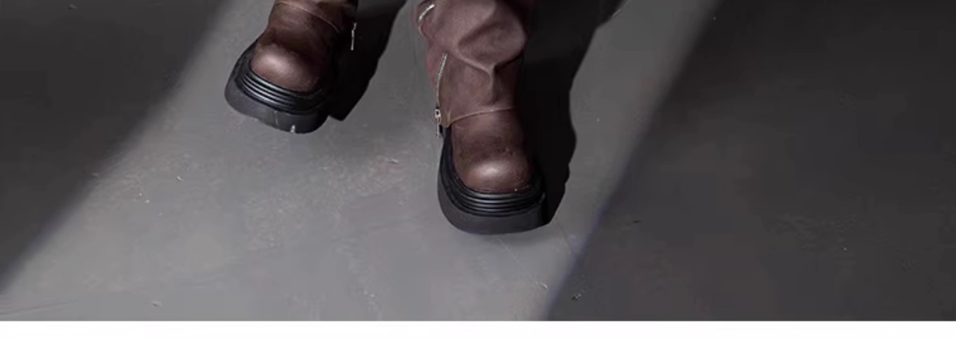 무릎 두께의 굽이 두꺼운 나이트부츠 2025 봄, 가을 두꺼운 다리 부츠 레트로 두꺼운 밑창 주름 바지 부츠 여성용스토어 가기