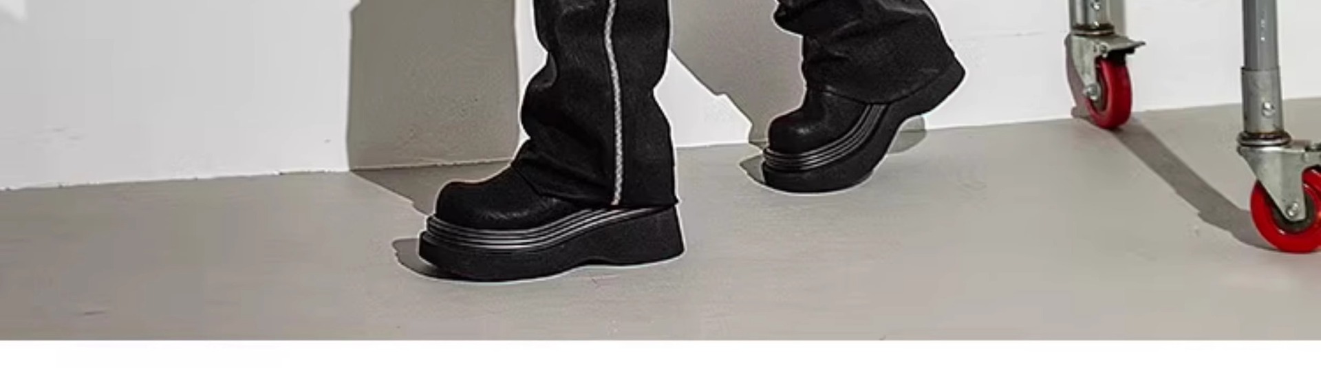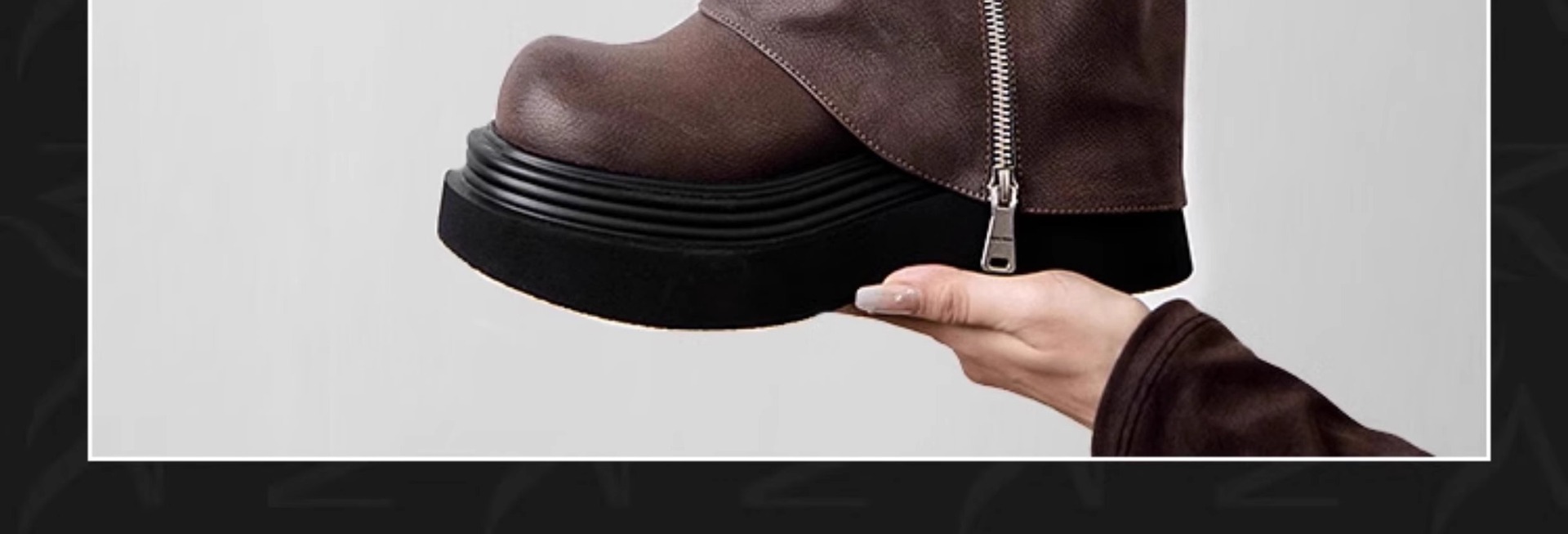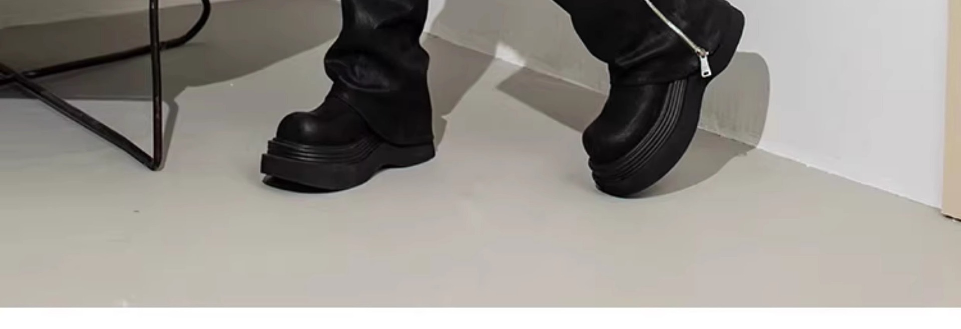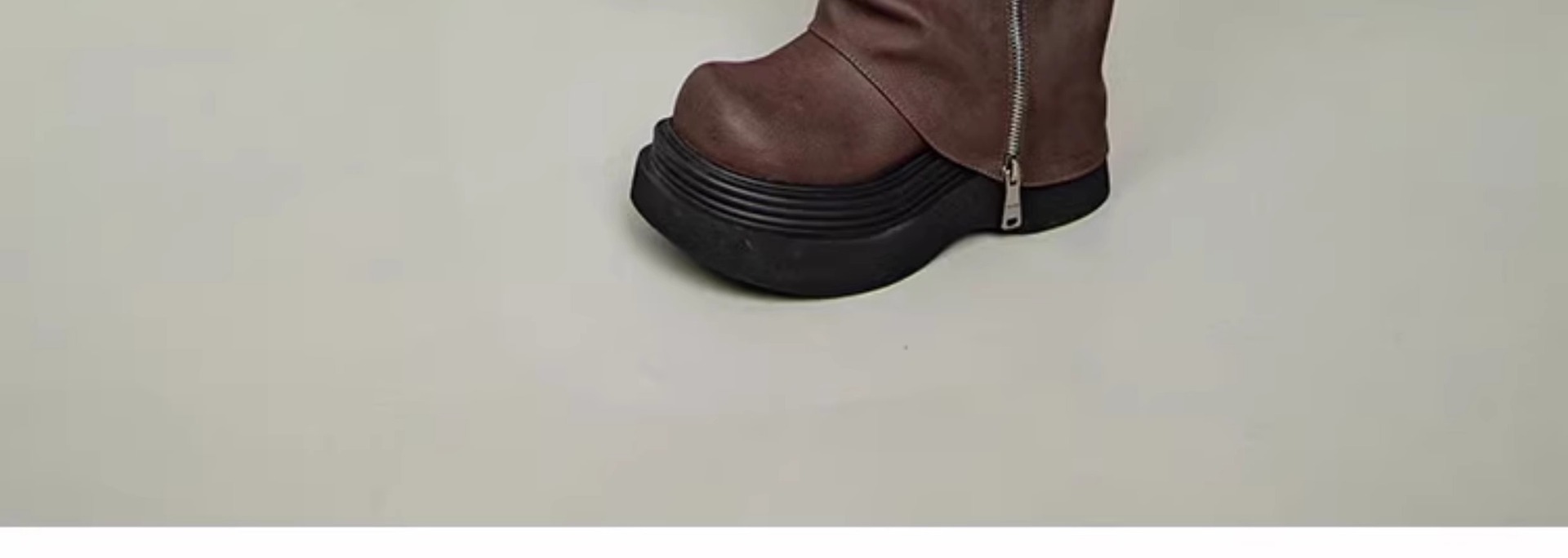 무릎 두께의 굽이 두꺼운 나이트부츠 2025 봄, 가을 두꺼운 다리 부츠 레트로 두꺼운 밑창 주름 바지 부츠 여성용스토어 가기