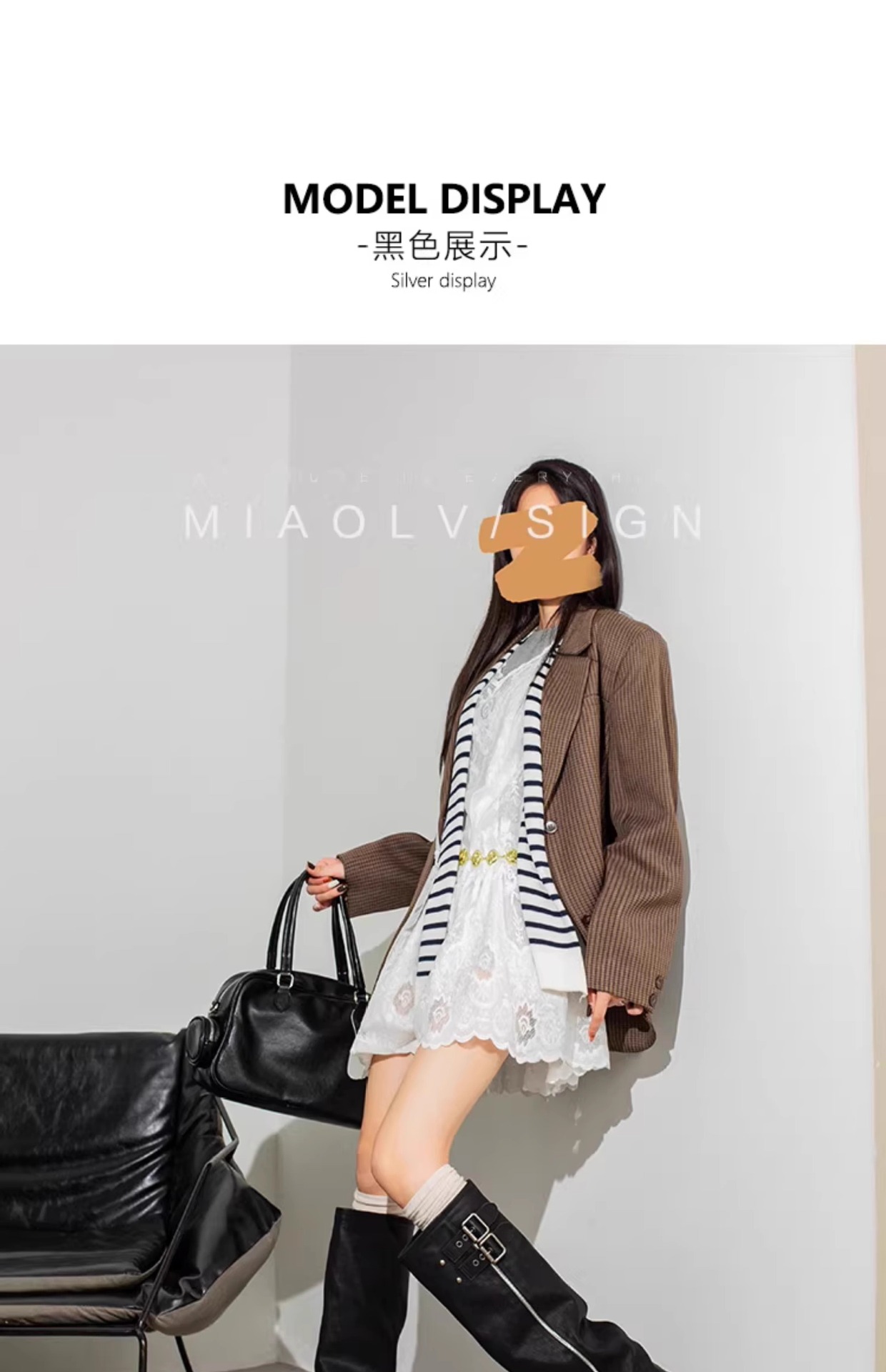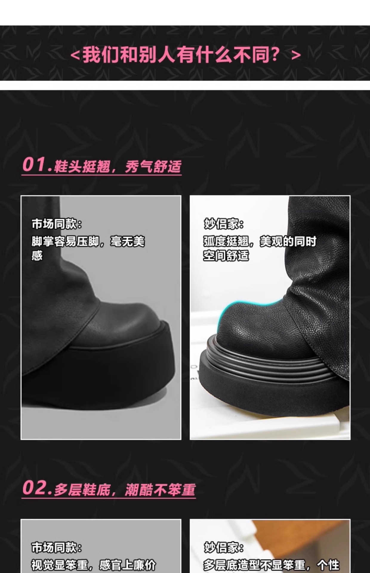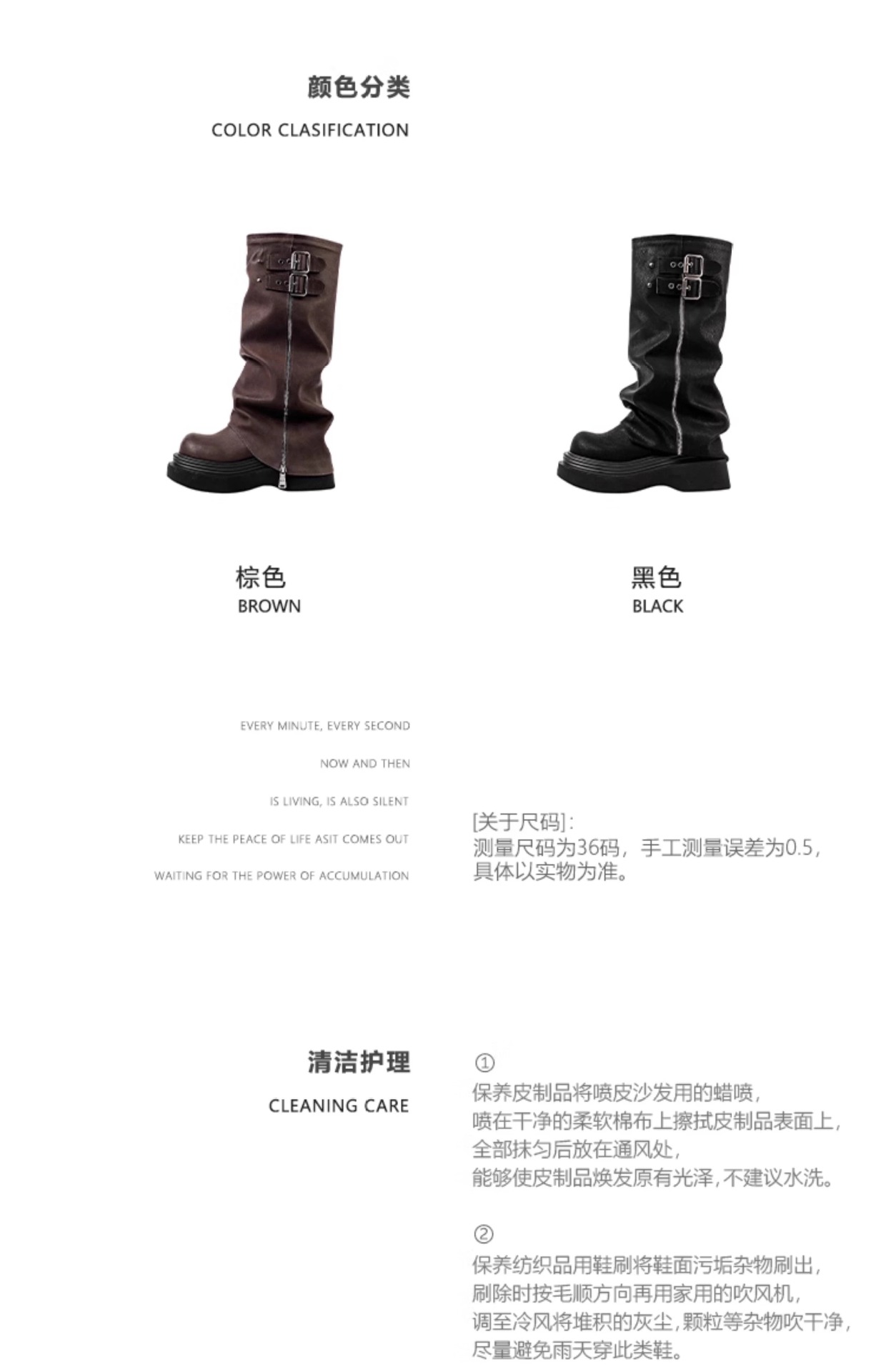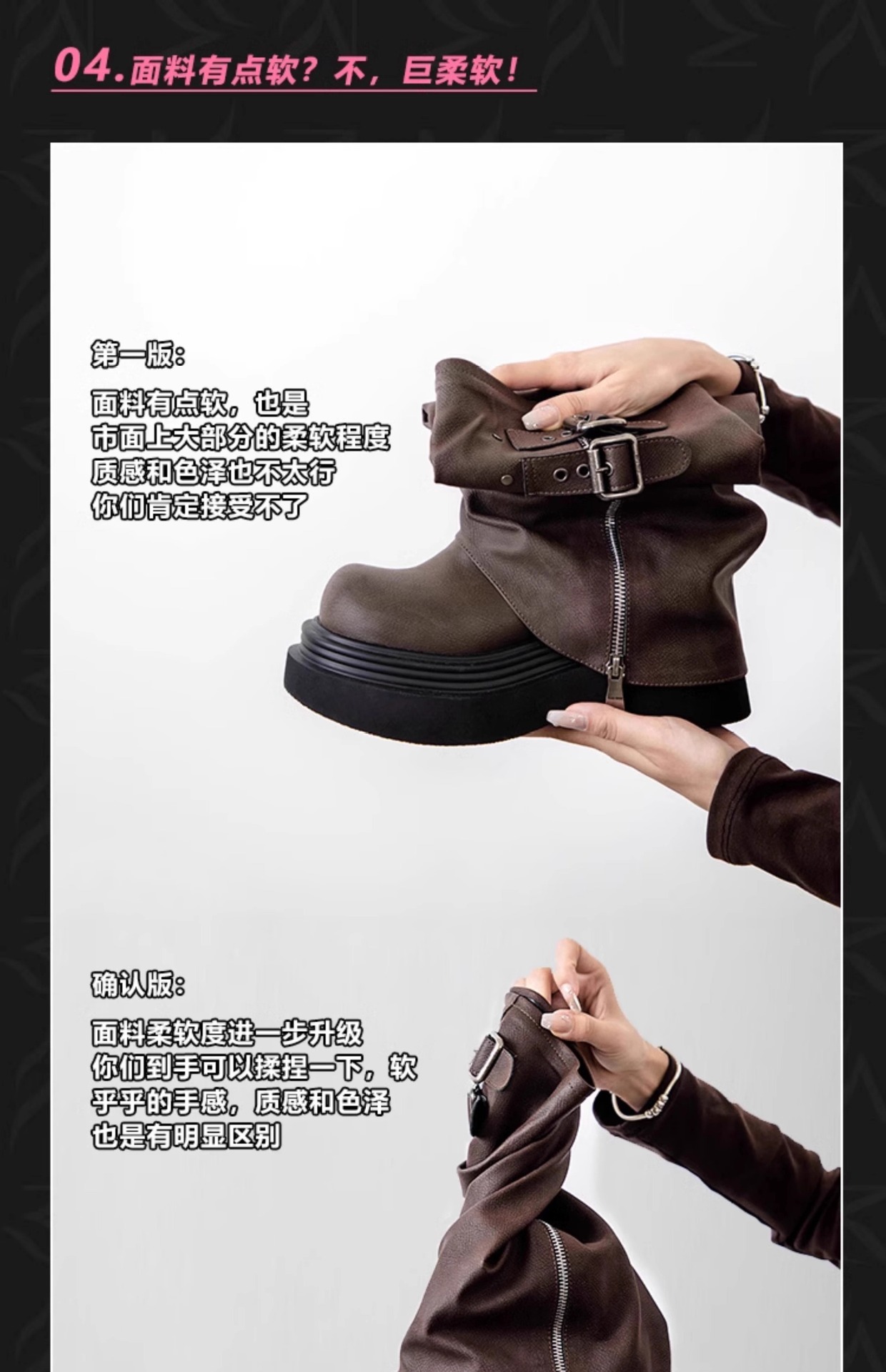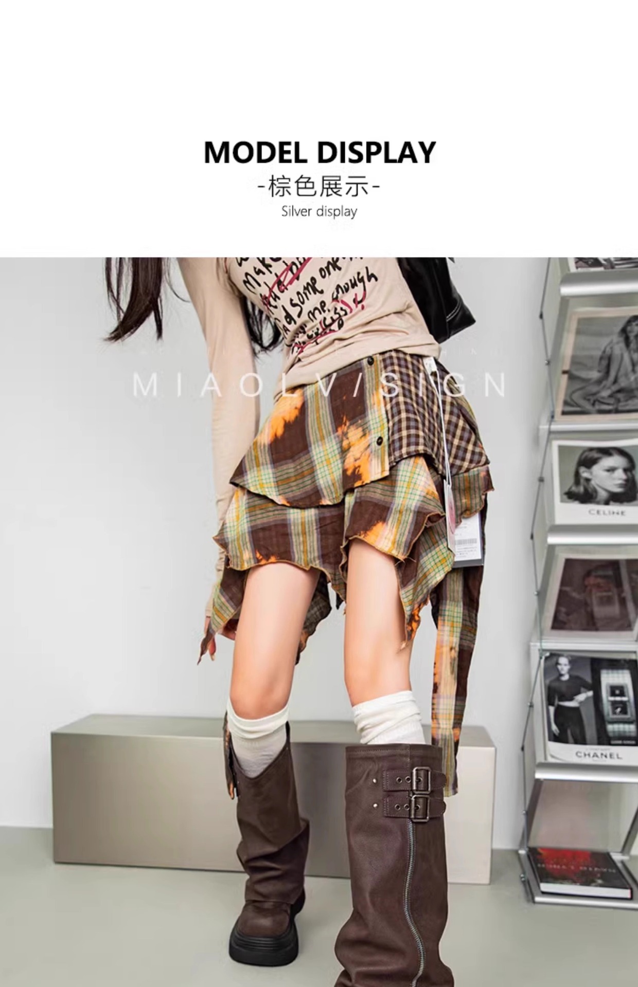 무릎 두께의 굽이 두꺼운 나이트부츠 2025 봄, 가을 두꺼운 다리 부츠 레트로 두꺼운 밑창 주름 바지 부츠 여성용스토어 가기