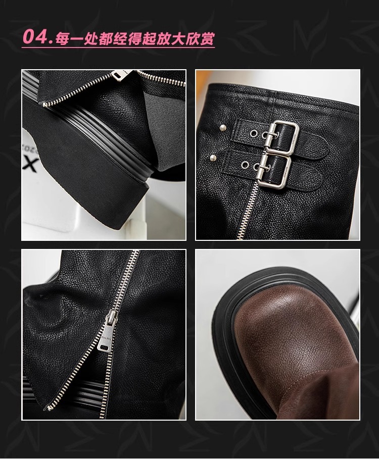 皮带扣复古中跟马丁靴子女夏季西部牛仔靴厚底中筒沙漠堆堆皮靴秋