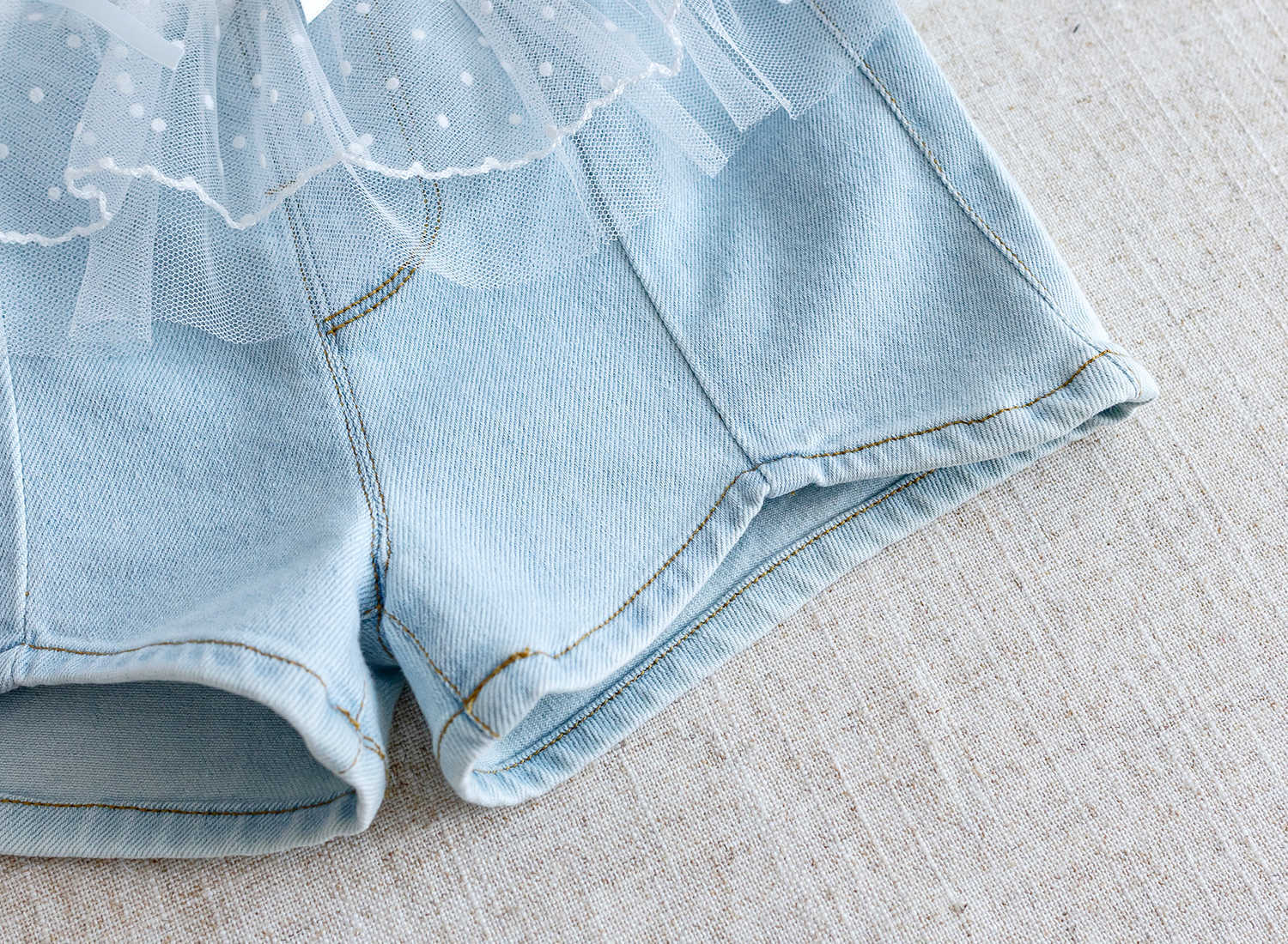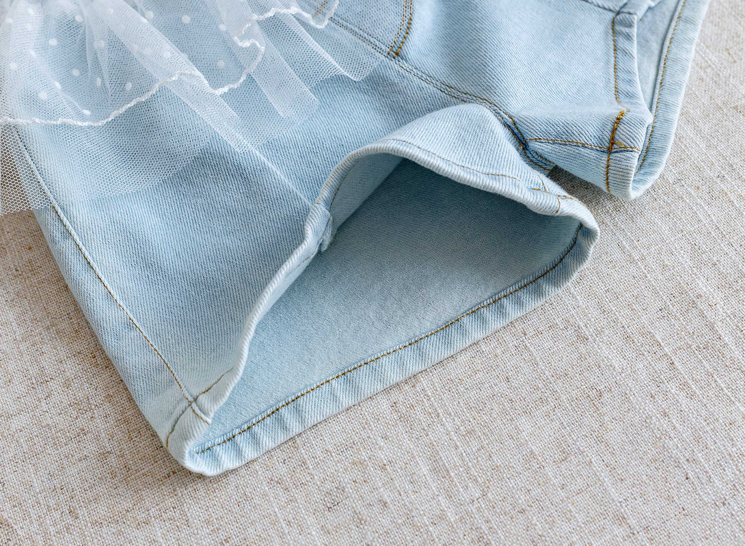 여아 데님 반바지 2025 여름 신작 중소형 아동용 다용도 외국 스타일 여아 레이스 레이스 아동용 얇은 바지