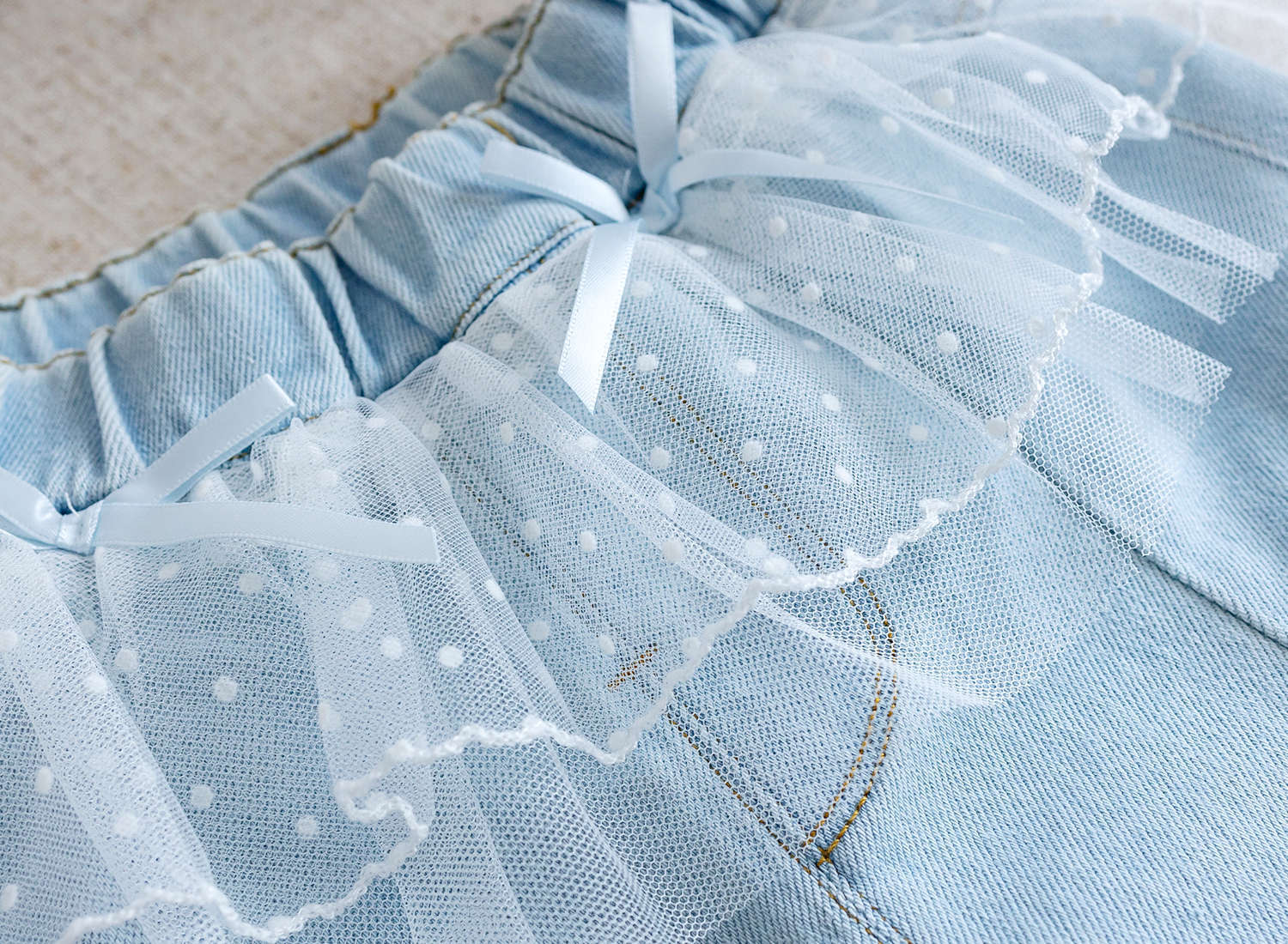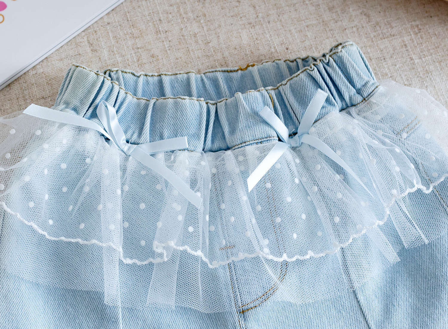 여아 데님 반바지 2025 여름 신작 중소형 아동용 다용도 외국 스타일 여아 레이스 레이스 아동용 얇은 바지스토어 가기