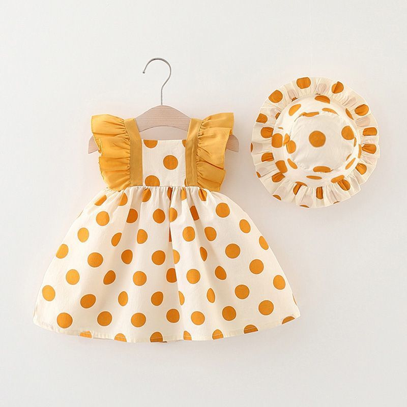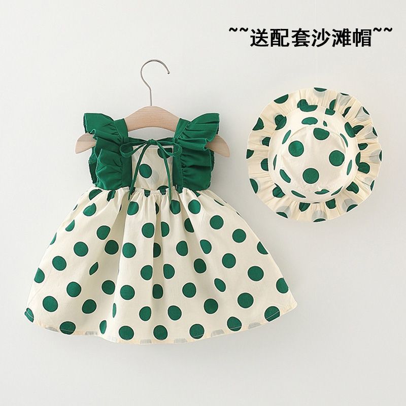 • 61 드레스 천 모자 도트 그린 (모자 포함)