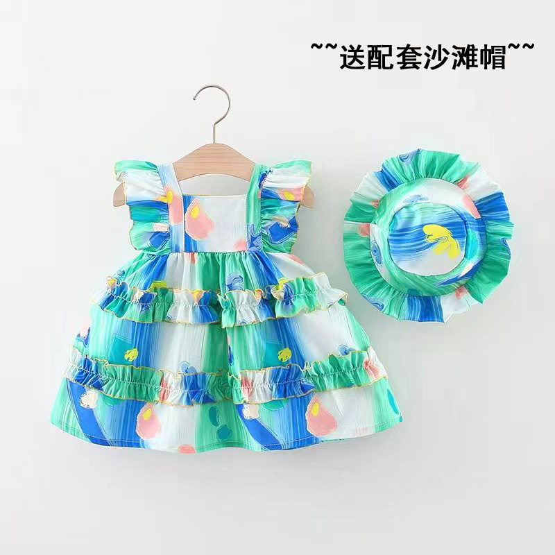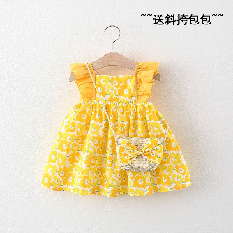 여자 꽃 드레스 여름 2024 새로운 아동 의류 인터넷 연예인 여름 드레스 어린이 스타일 스커트 아기 공주 드레스