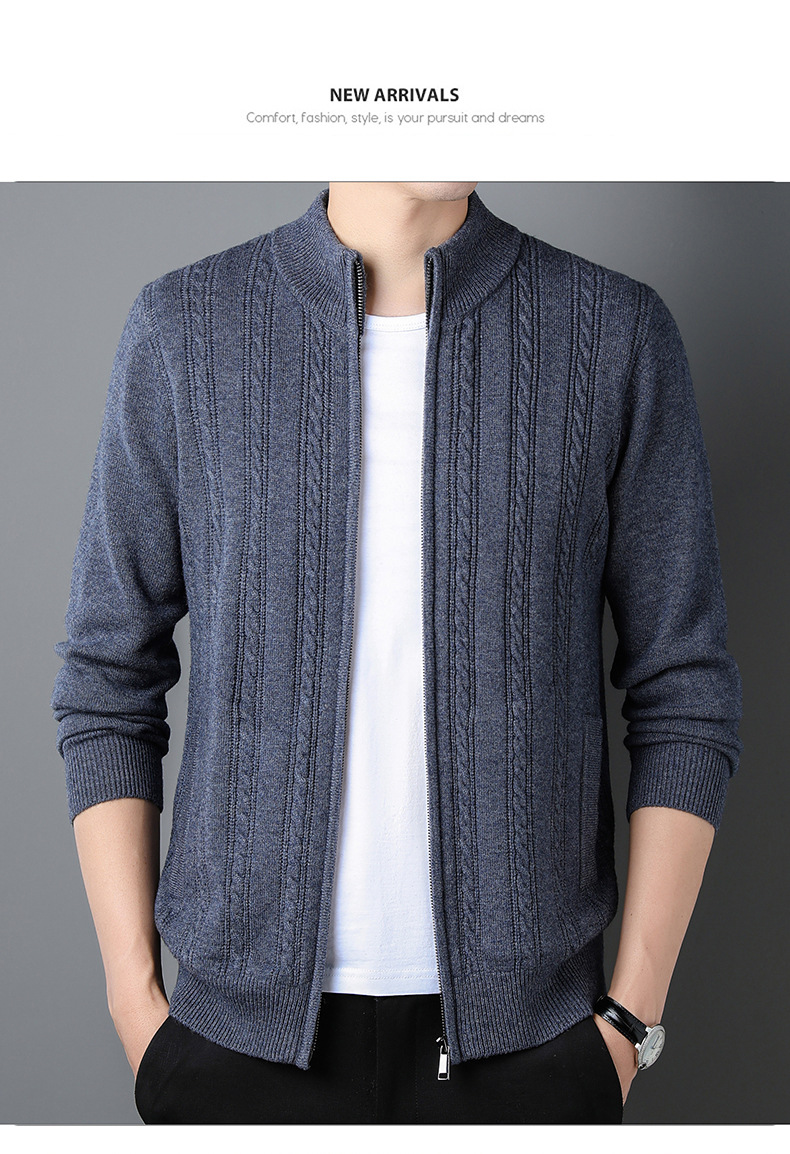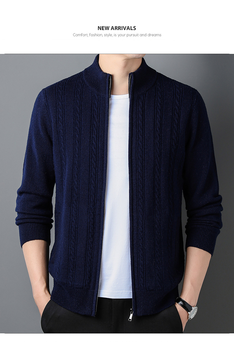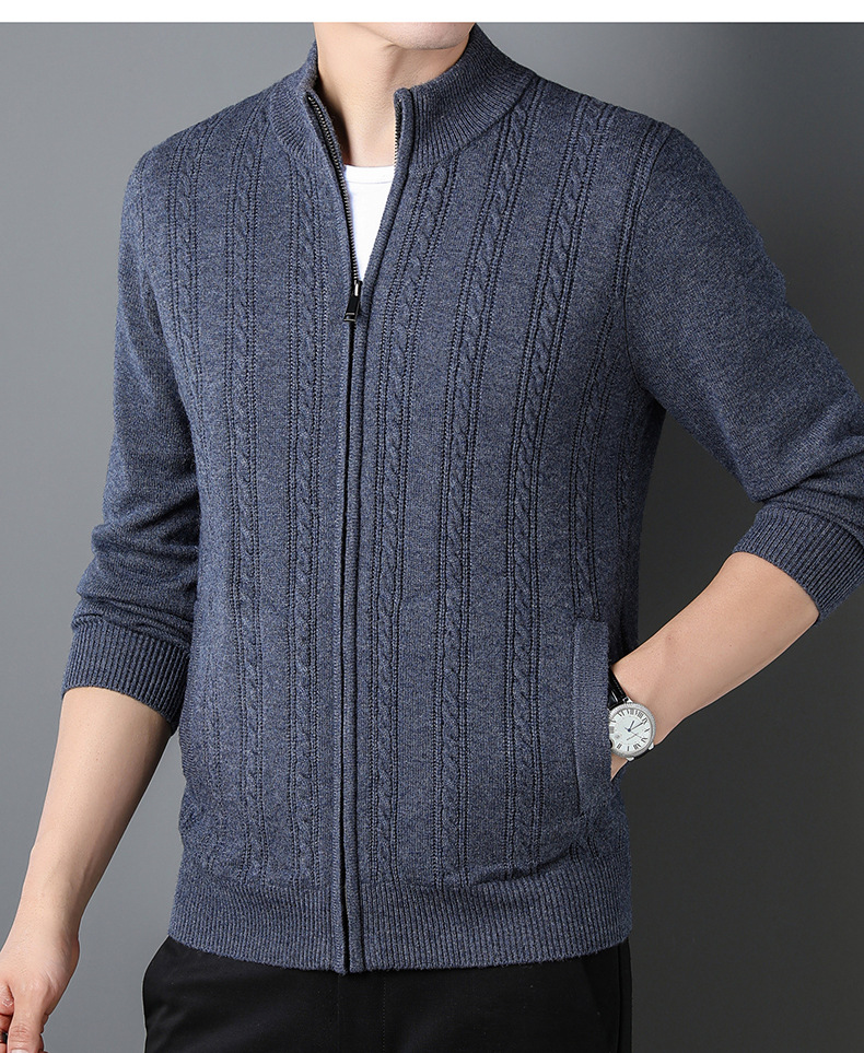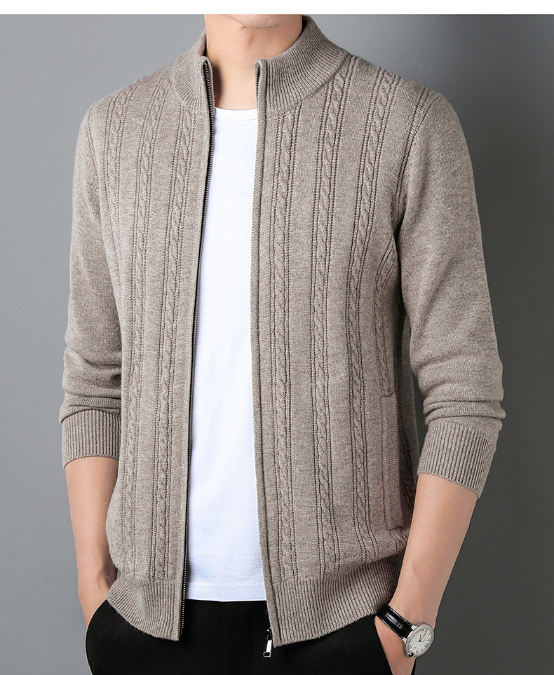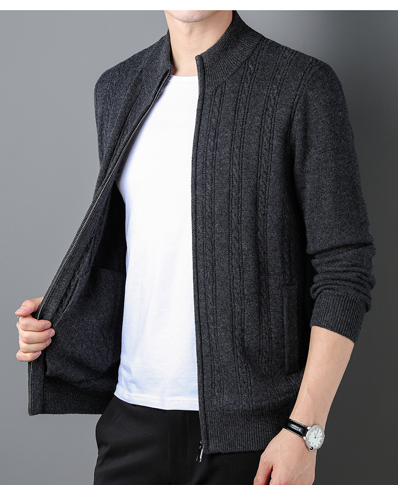 겨울 남성 양모 카디건 긴팔 새로운 트위스트 두꺼운 지퍼 셔츠 전체 양모 따뜻한 겉옷 스웨터 도매스토어 가기