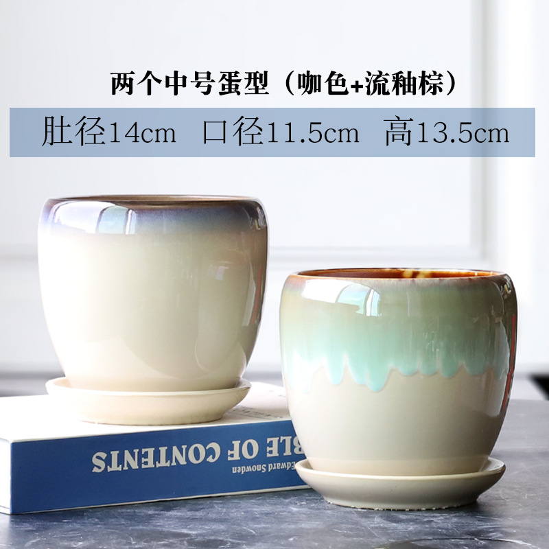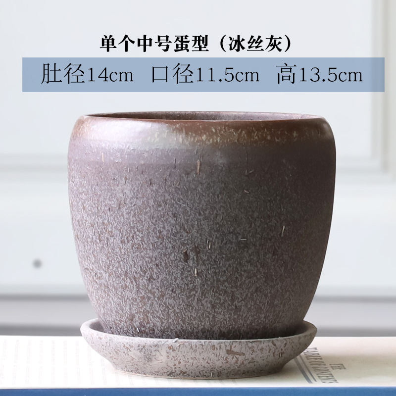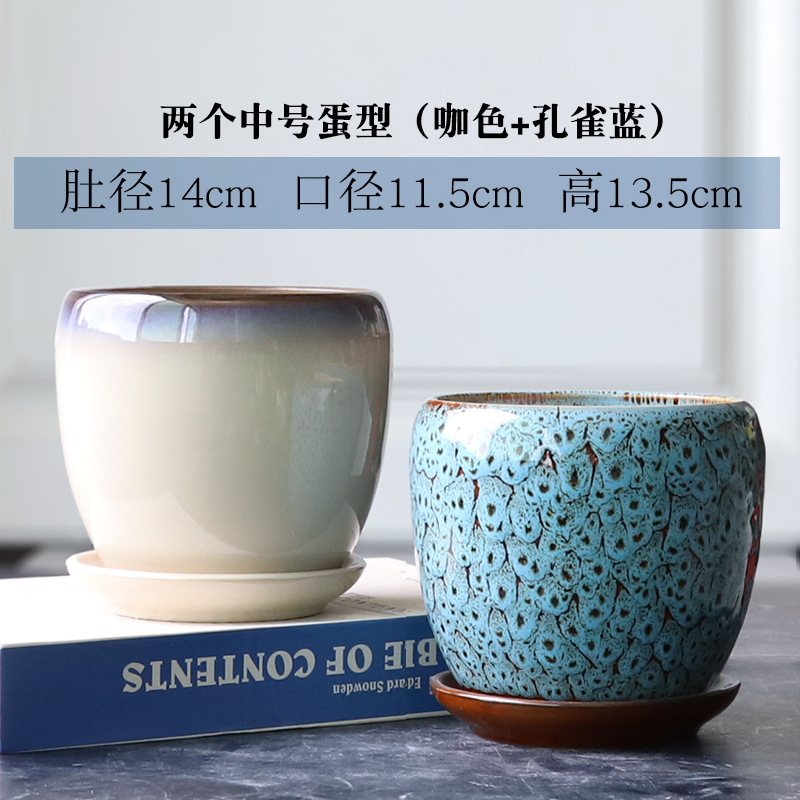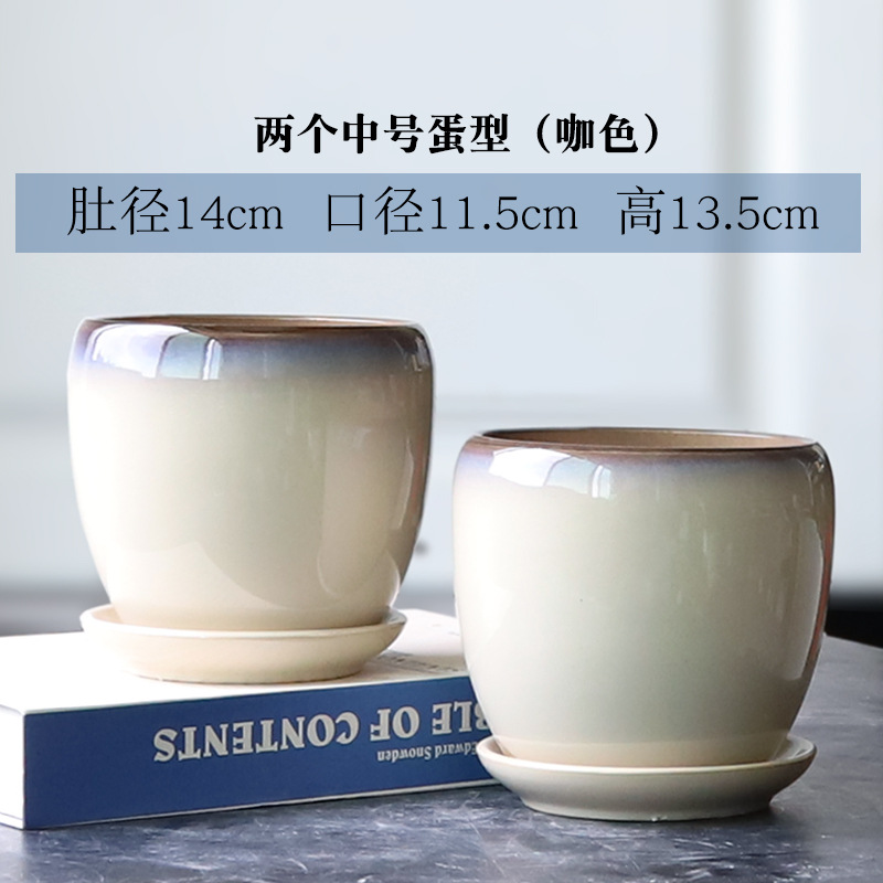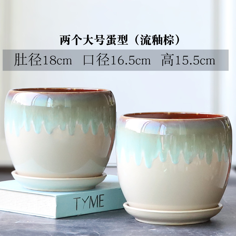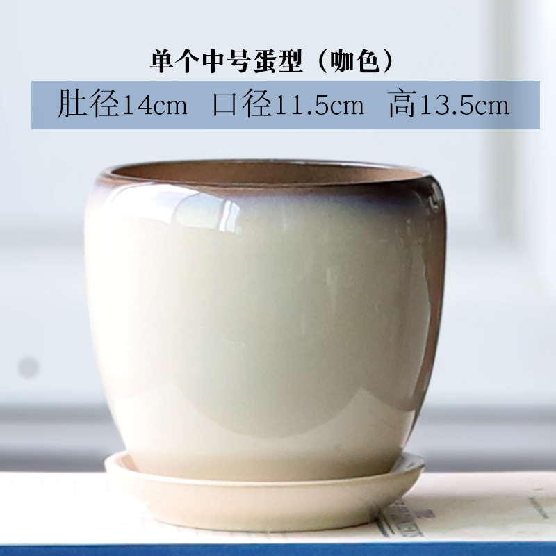 트레이가 있는 세라믹 맞춤형 화분, 계란 모양의 대형 실내 및 실외 녹색 식물, 달팽이 채소, 다육 식물, 가정용 패션 화분스토어 가기