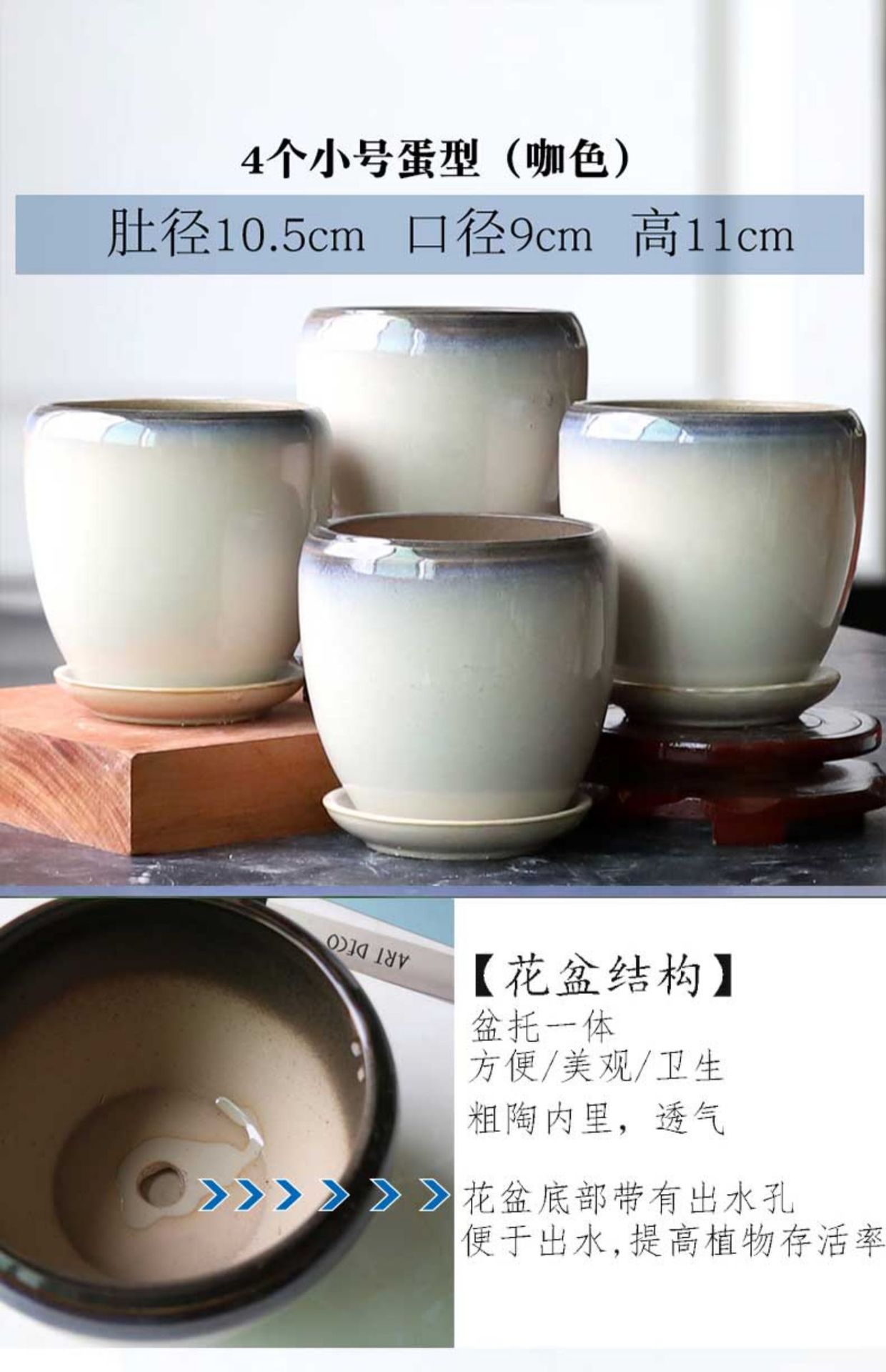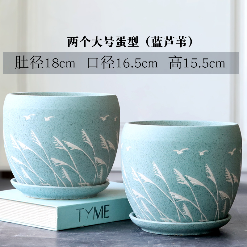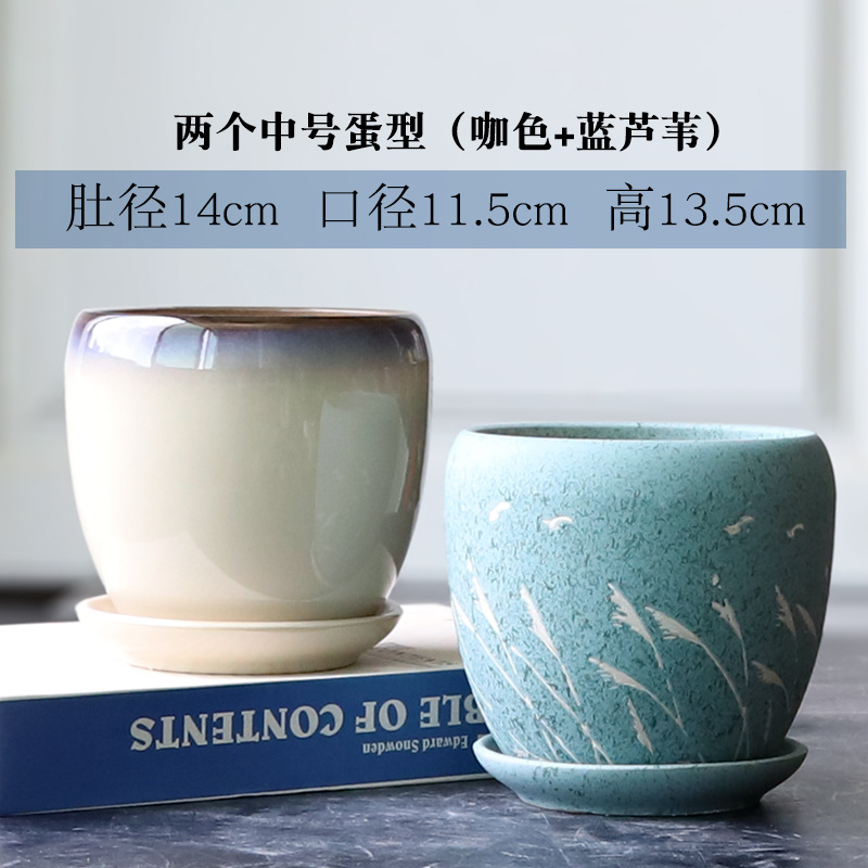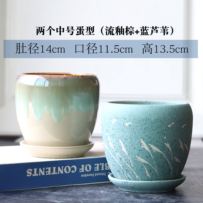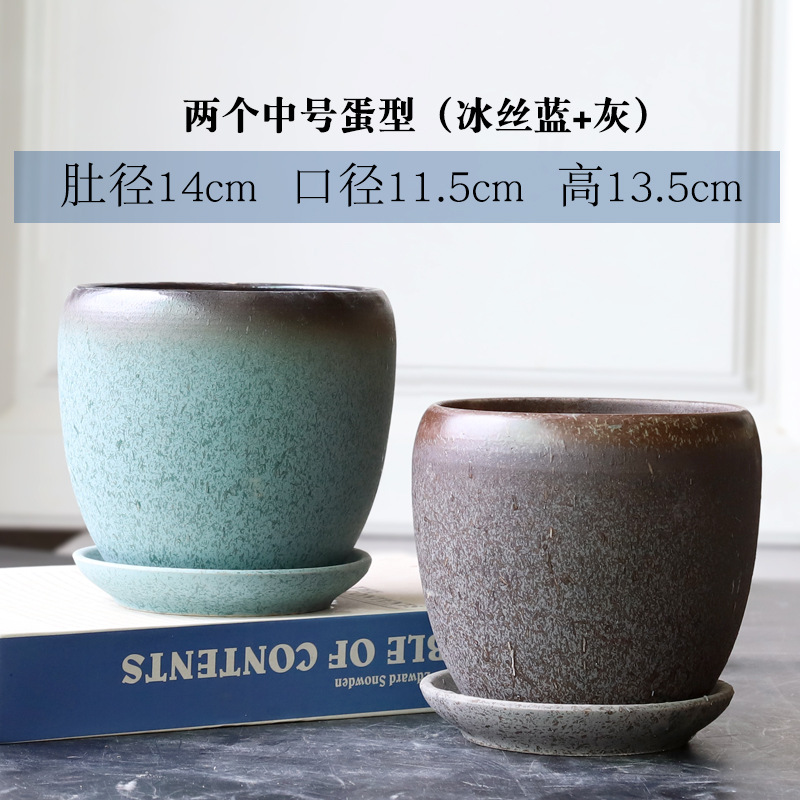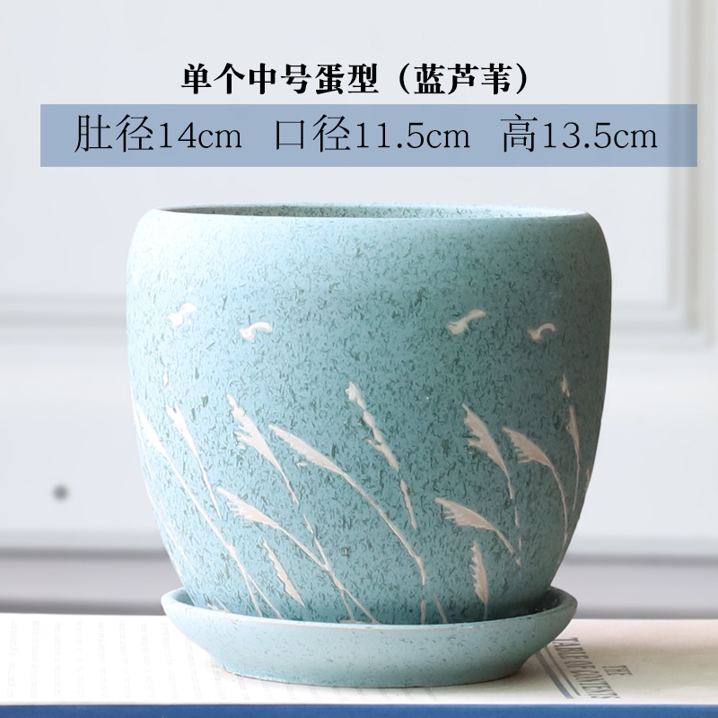 트레이가 있는 세라믹 맞춤형 화분, 계란 모양의 대형 실내 및 실외 녹색 식물, 달팽이 채소, 다육 식물, 가정용 패션 화분스토어 가기