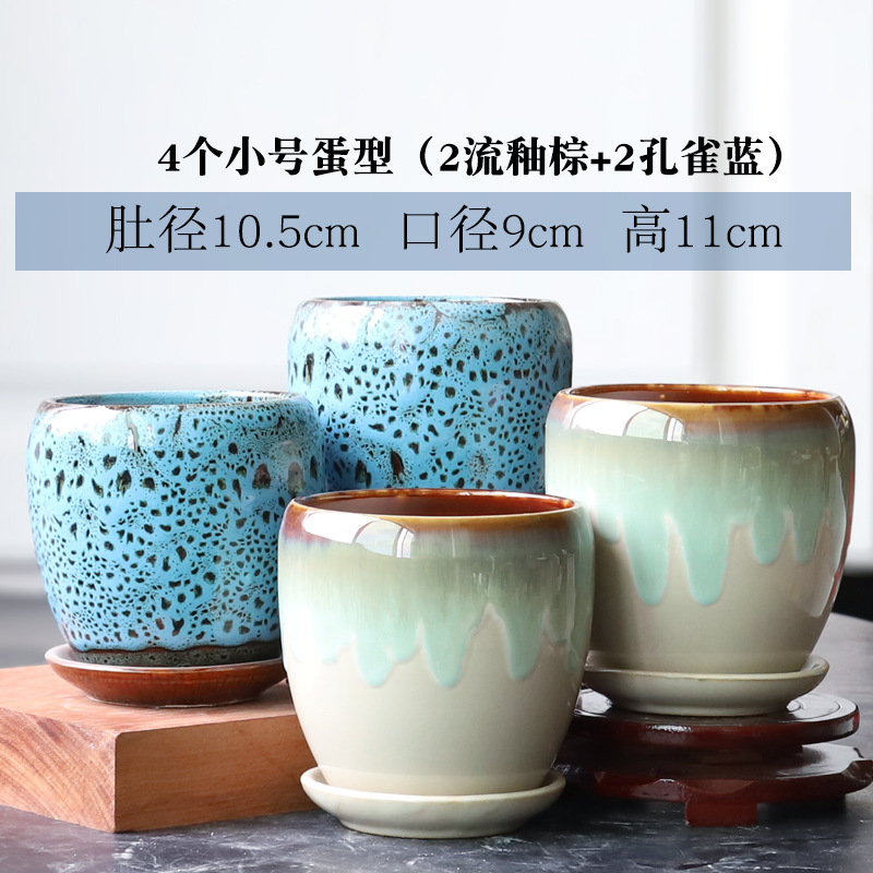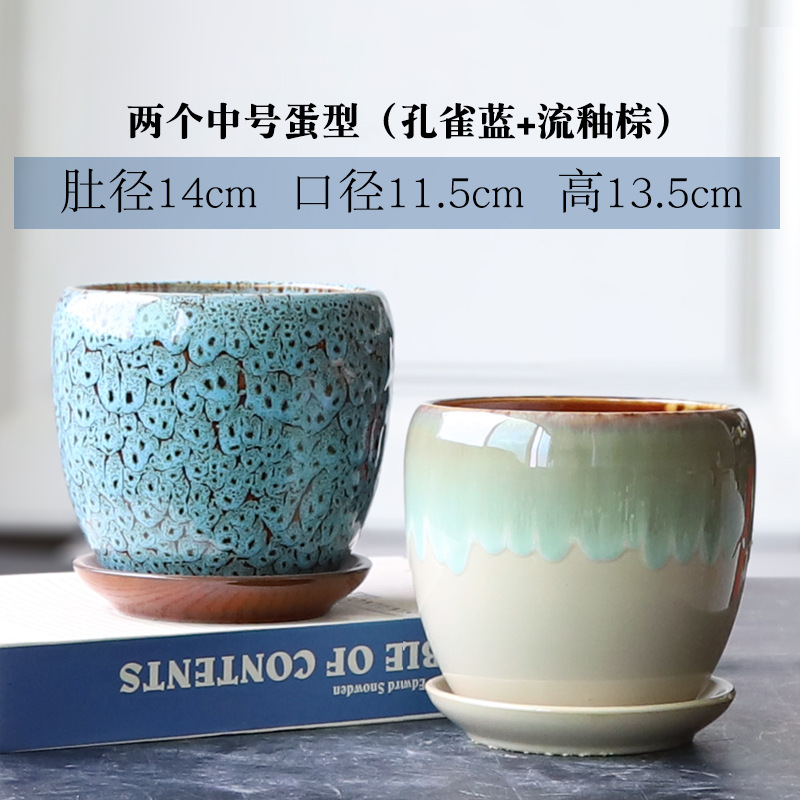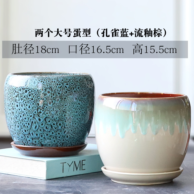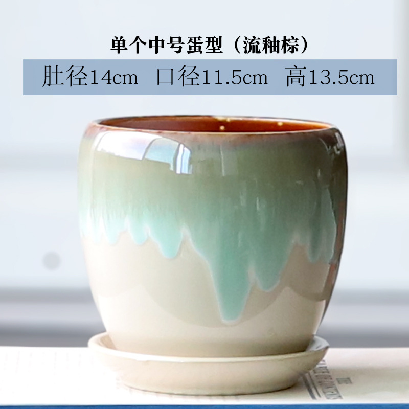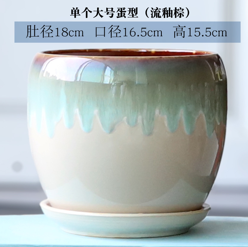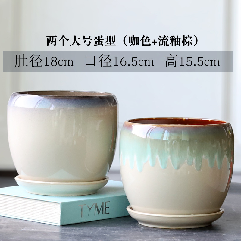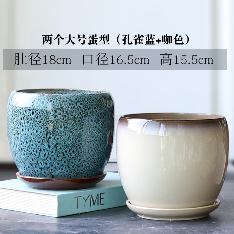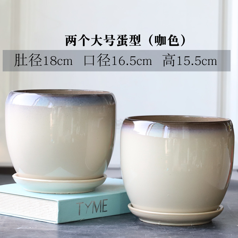 트레이가 있는 세라믹 맞춤형 화분, 계란 모양의 대형 실내 및 실외 녹색 식물, 달팽이 채소, 다육 식물, 가정용 패션 화분