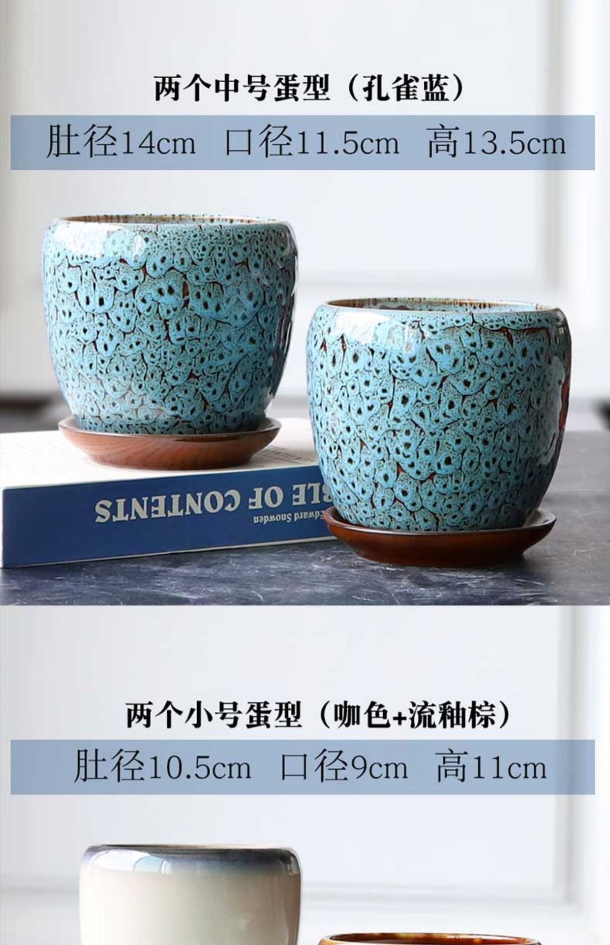 • 대형 계란형 2개(피콕블루+플로우글레이즈 브라운)