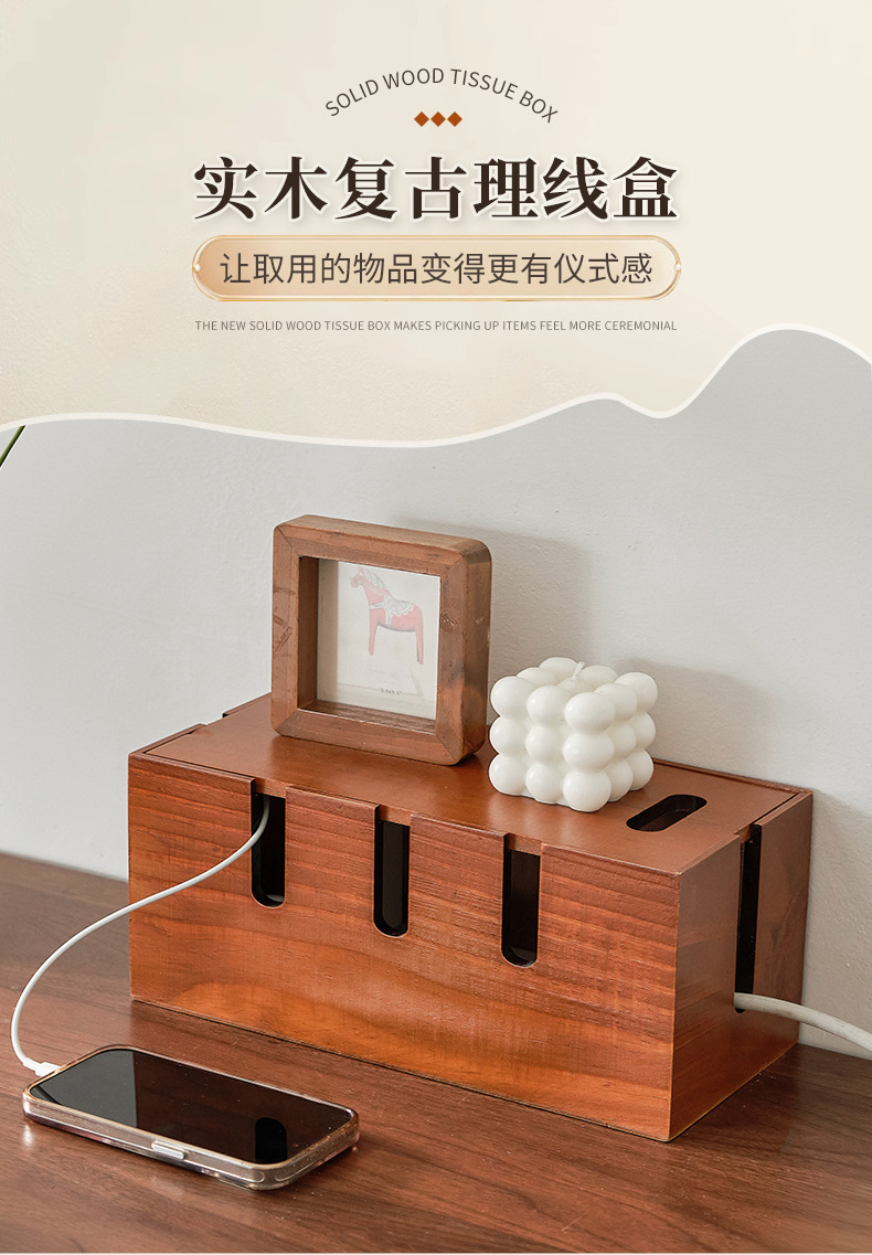단단한 나무 데이터 케이블 셋톱 박스 라우터 와이어 충전기 플러그인 보드 보관 상자 케이블 관리 상자 케이블 관리 상자스토어 가기