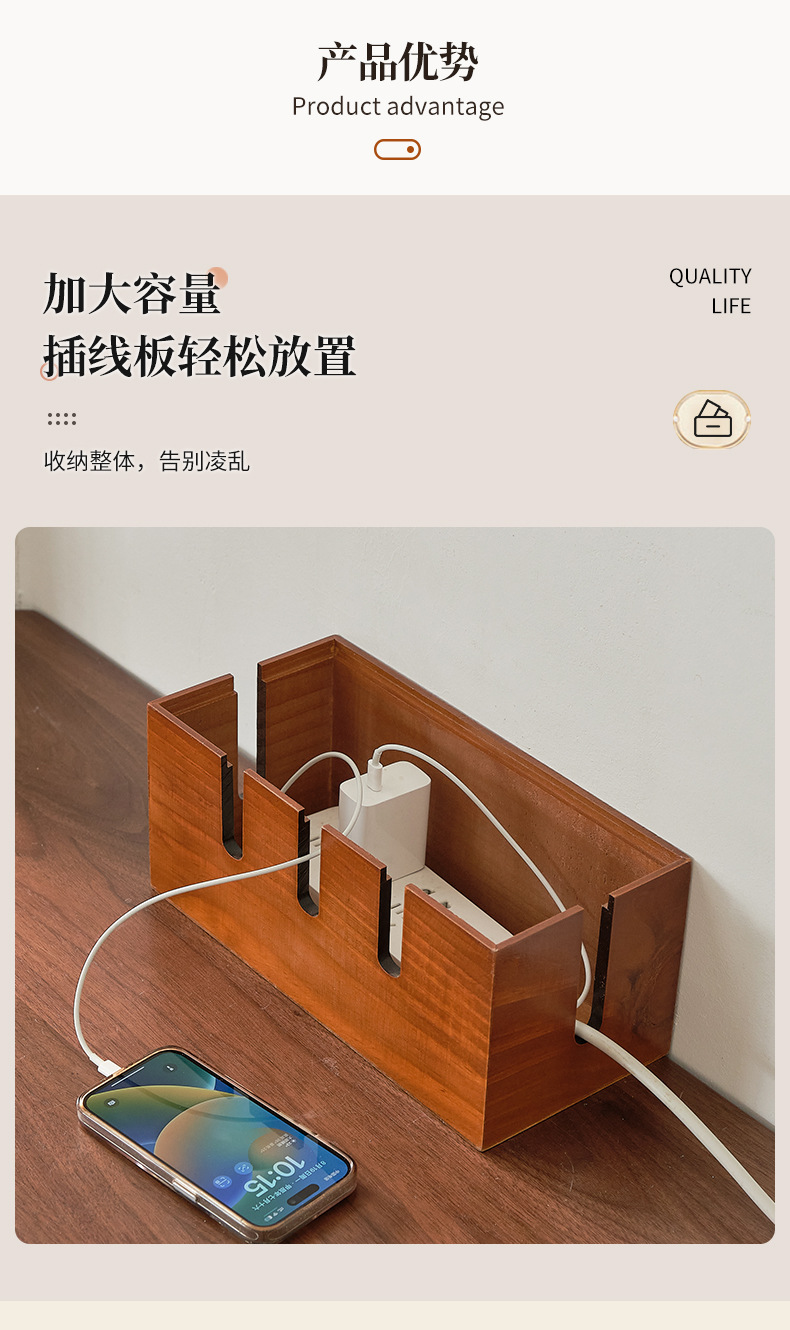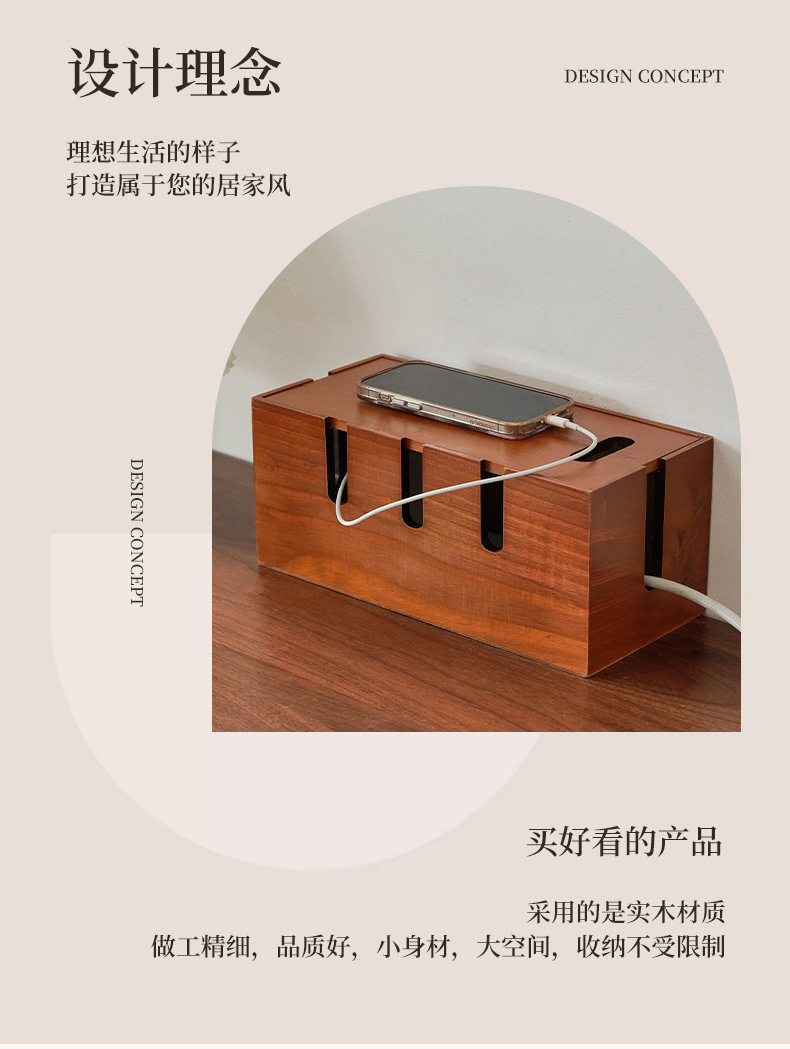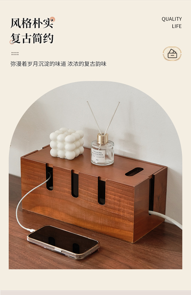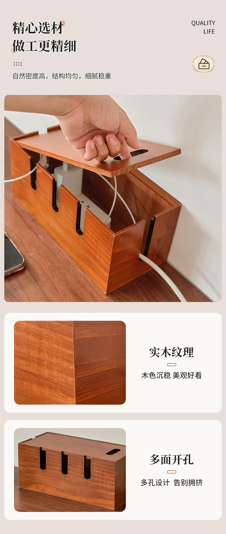 단단한 나무 데이터 케이블 셋톱 박스 라우터 와이어 충전기 플러그인 보드 보관 상자 케이블 관리 상자 케이블 관리 상자