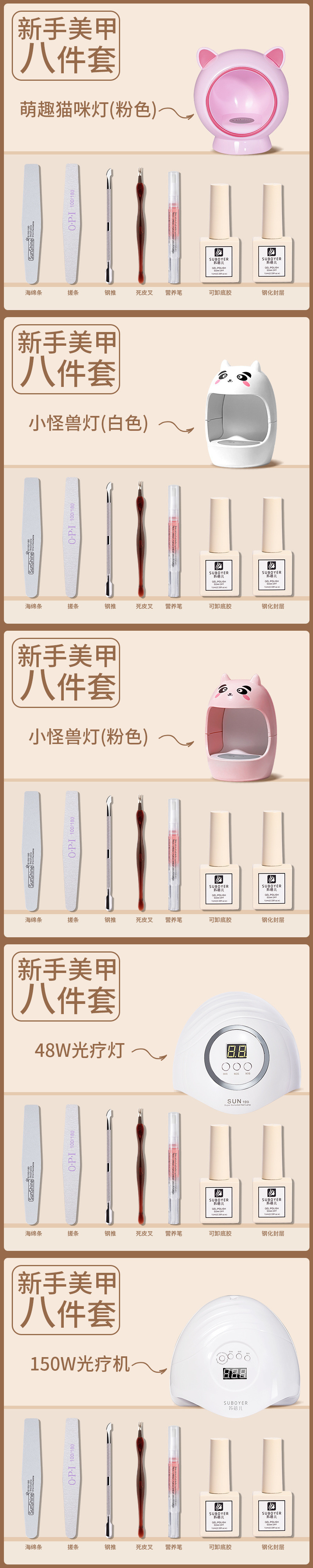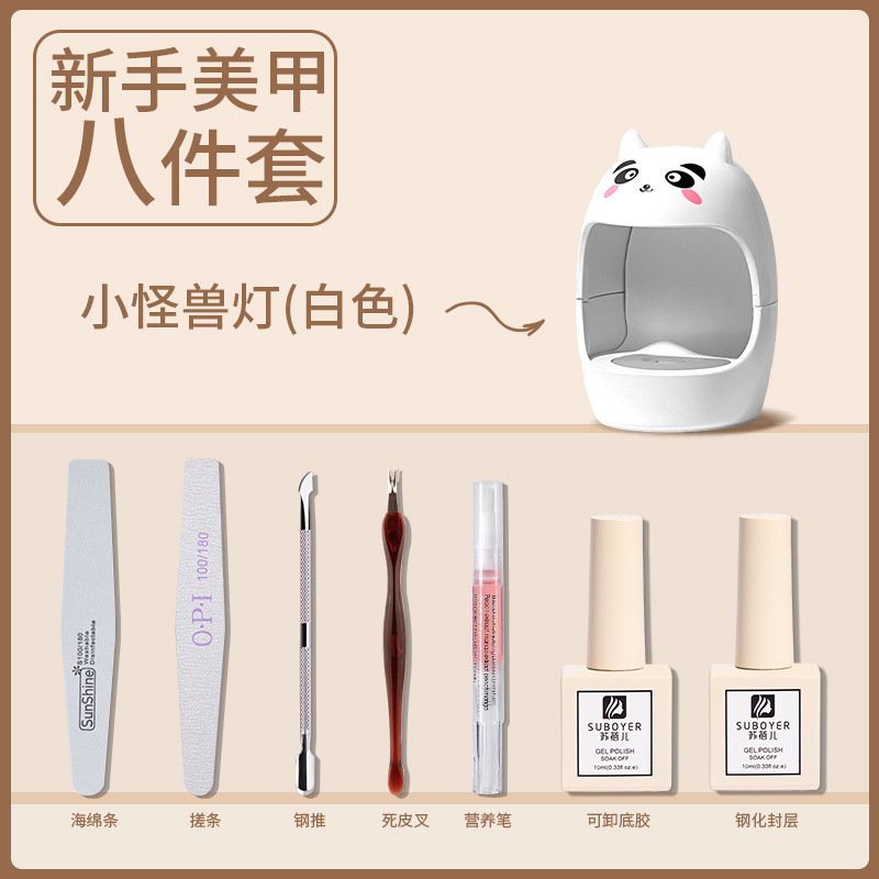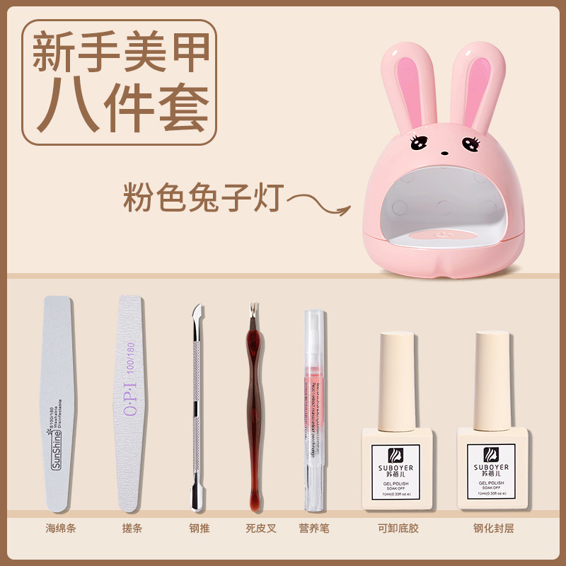 초보자를 위한 매니큐어 도구 세트, 초보자를 위한 매니큐어 접착제, 소형 광선 요법 기계, 베이킹 램프, 8종 세트