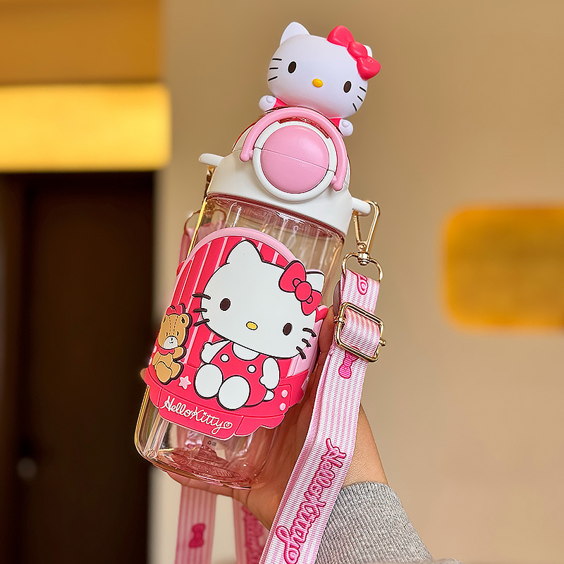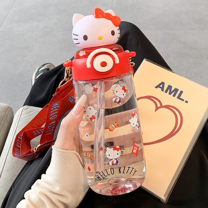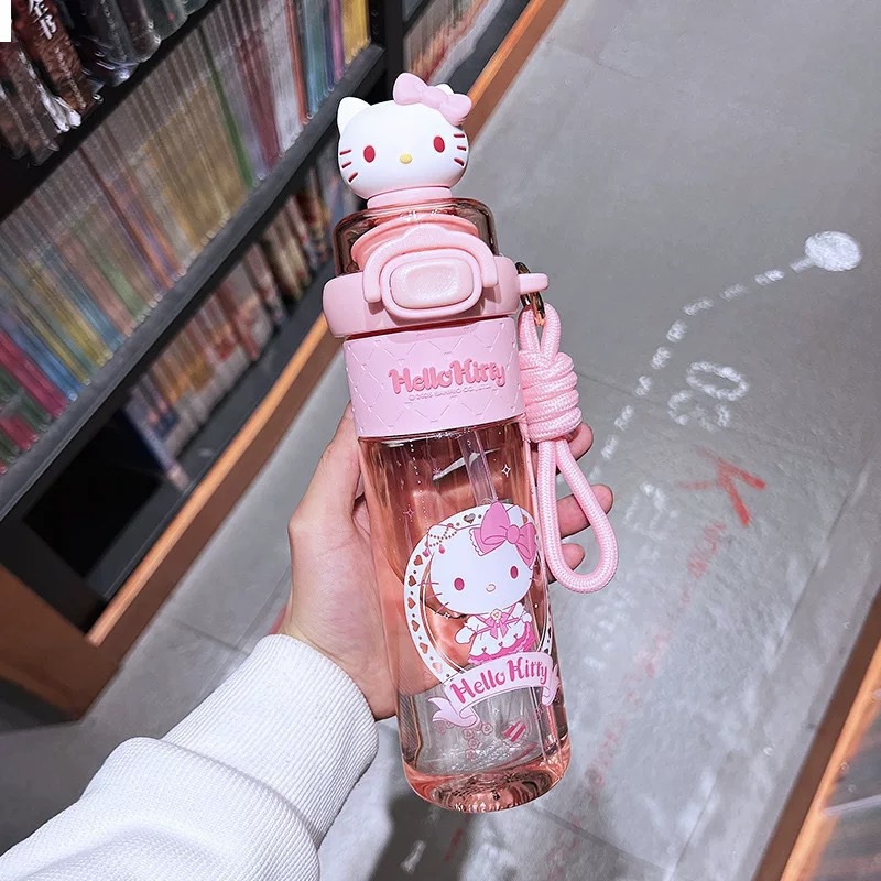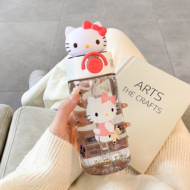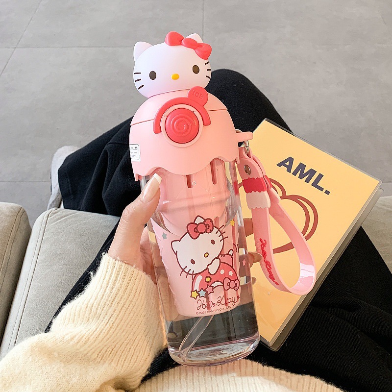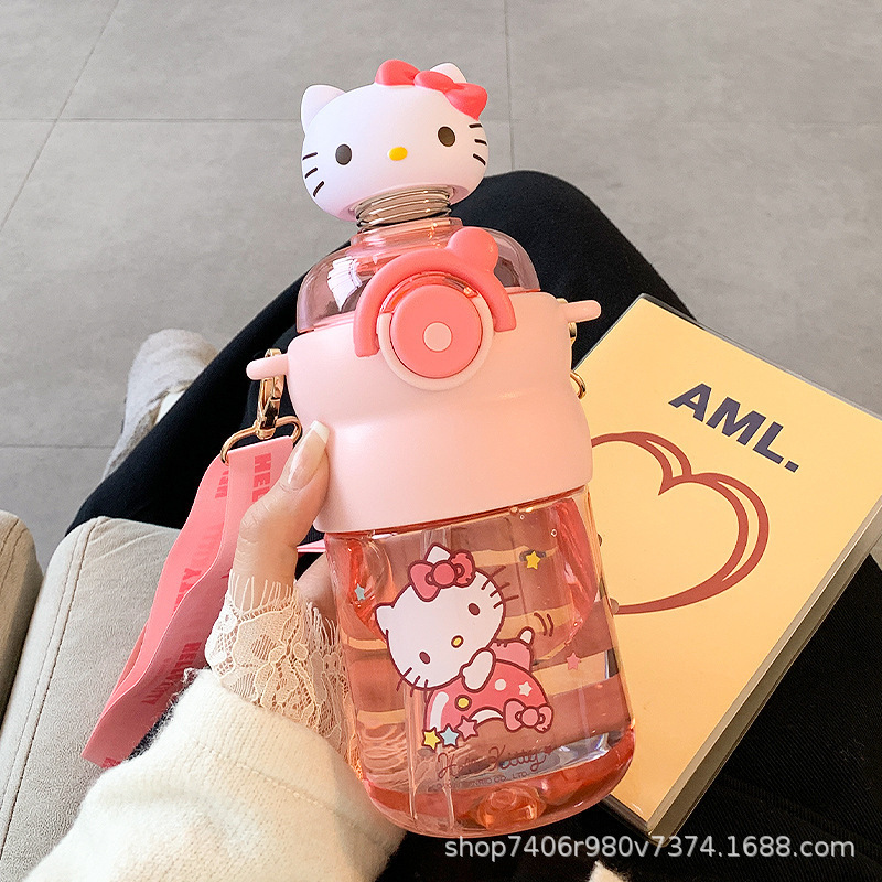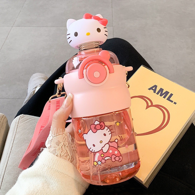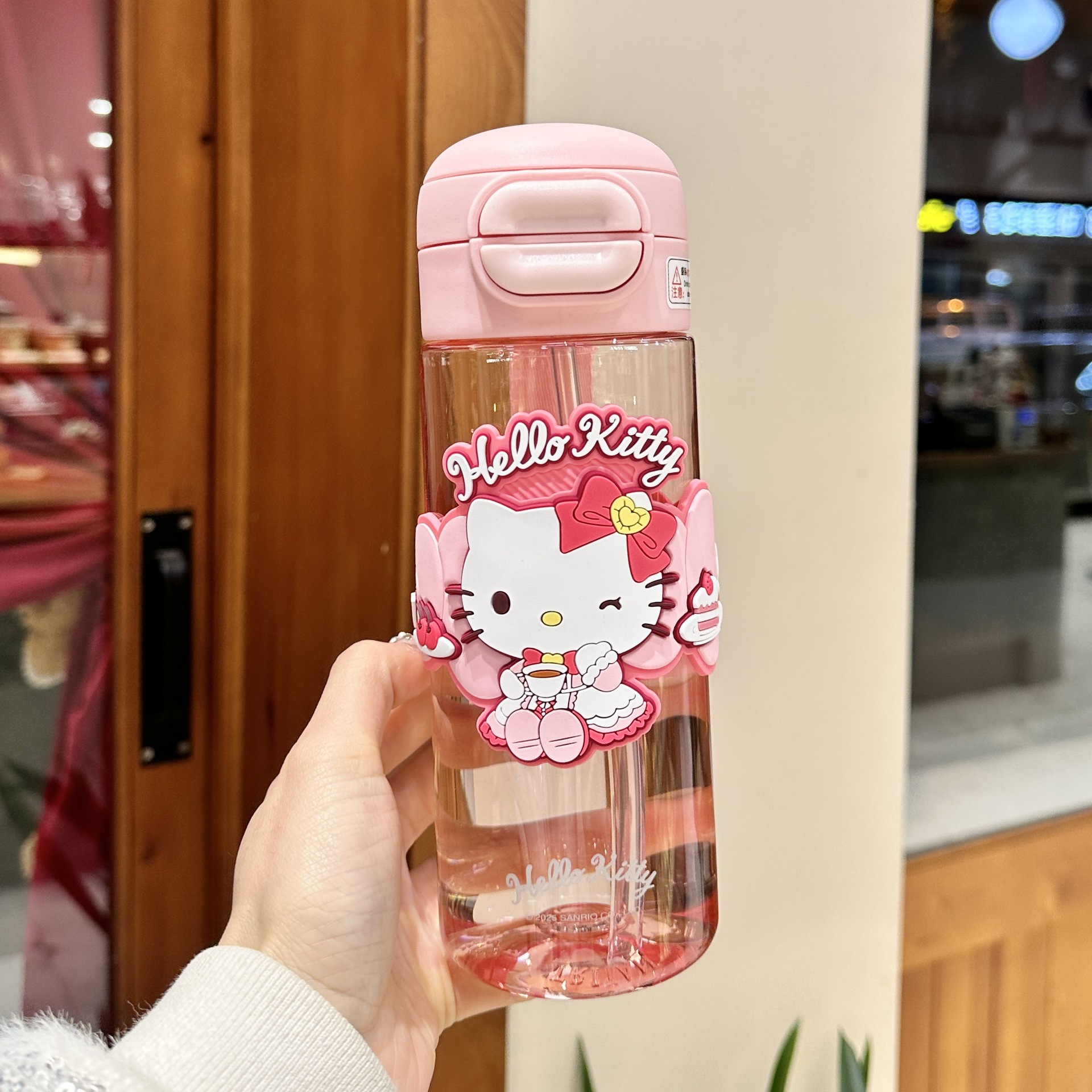 Sanrio 헬로 키티 어린이 물 컵 트라이탄 플라스틱 컵 학생 학교 휴대용 물병 대용량 밀짚 컵