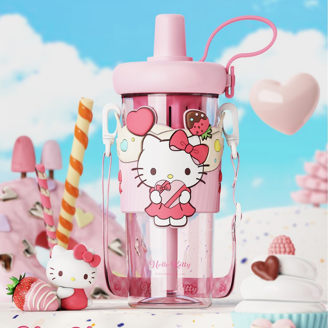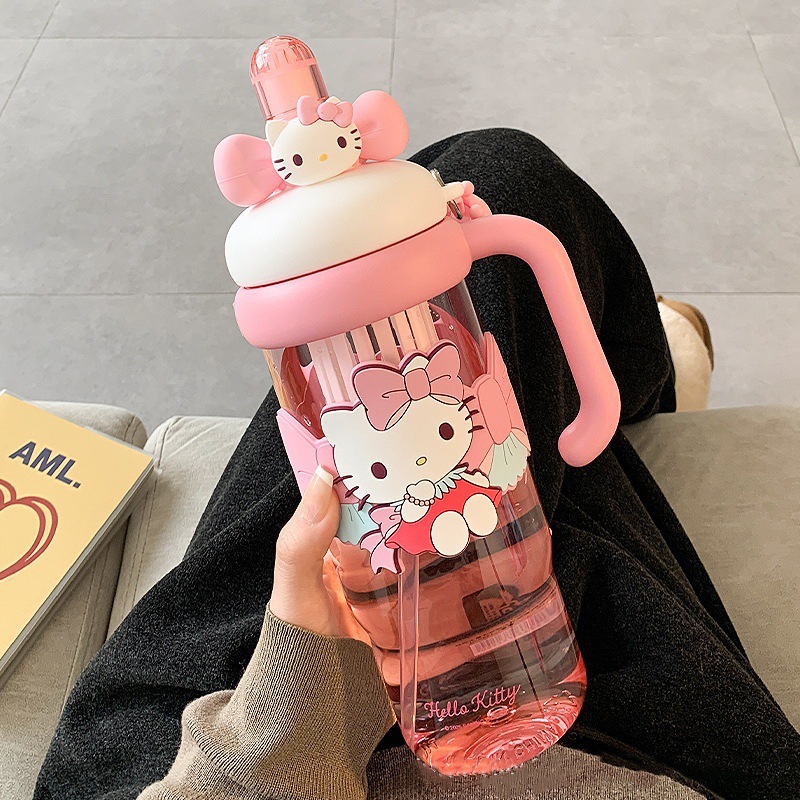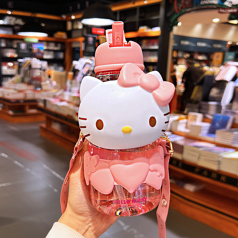 Sanrio 헬로 키티 어린이 물 컵 트라이탄 플라스틱 컵 학생 학교 휴대용 물병 대용량 밀짚 컵스토어 가기