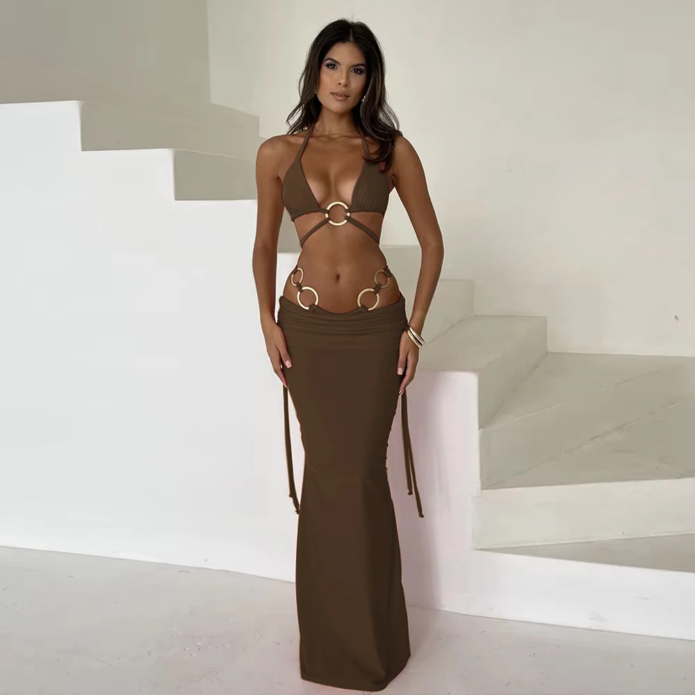 유럽과 미국의 국경 간 Amazon AliExpress 2025 여름 비키니 스플릿 스트랩 섹시한 해변 3피스 세트