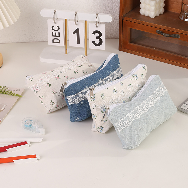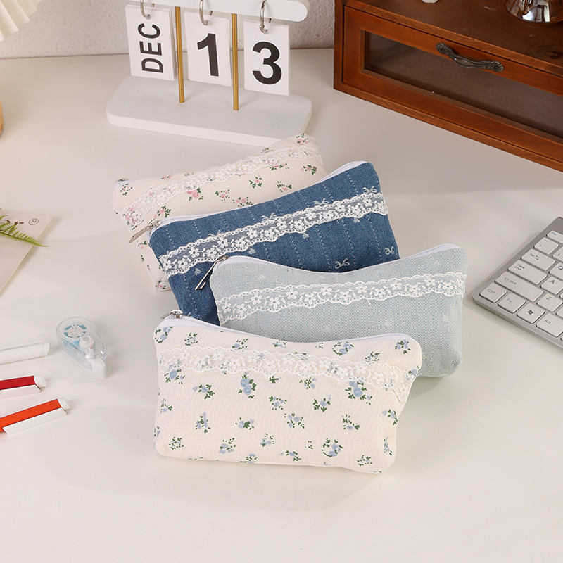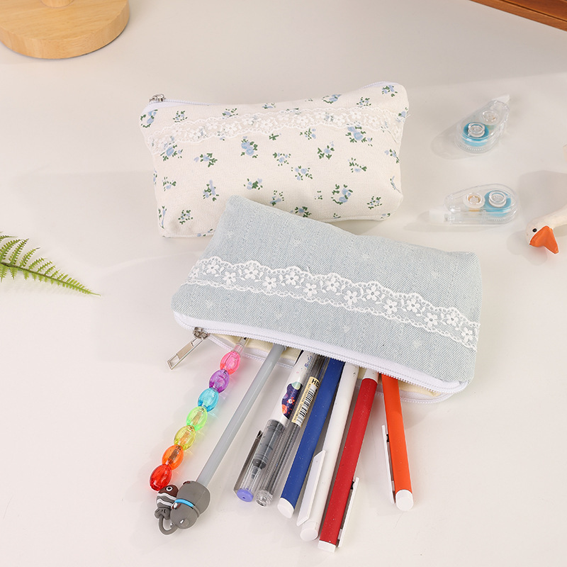 소녀들을 위한 고급스럽고 심플한 꽃무늬 필통, 귀여운 수납가방, 대용량 학생 문구가방 수납가방