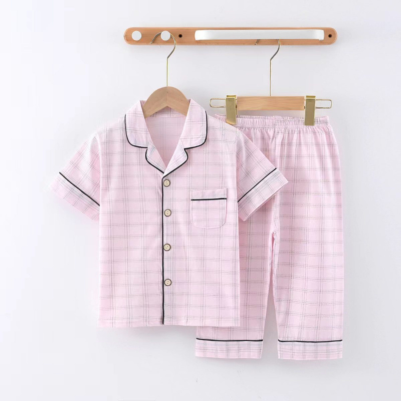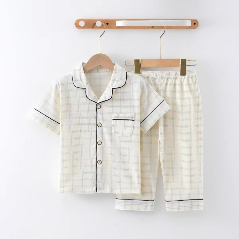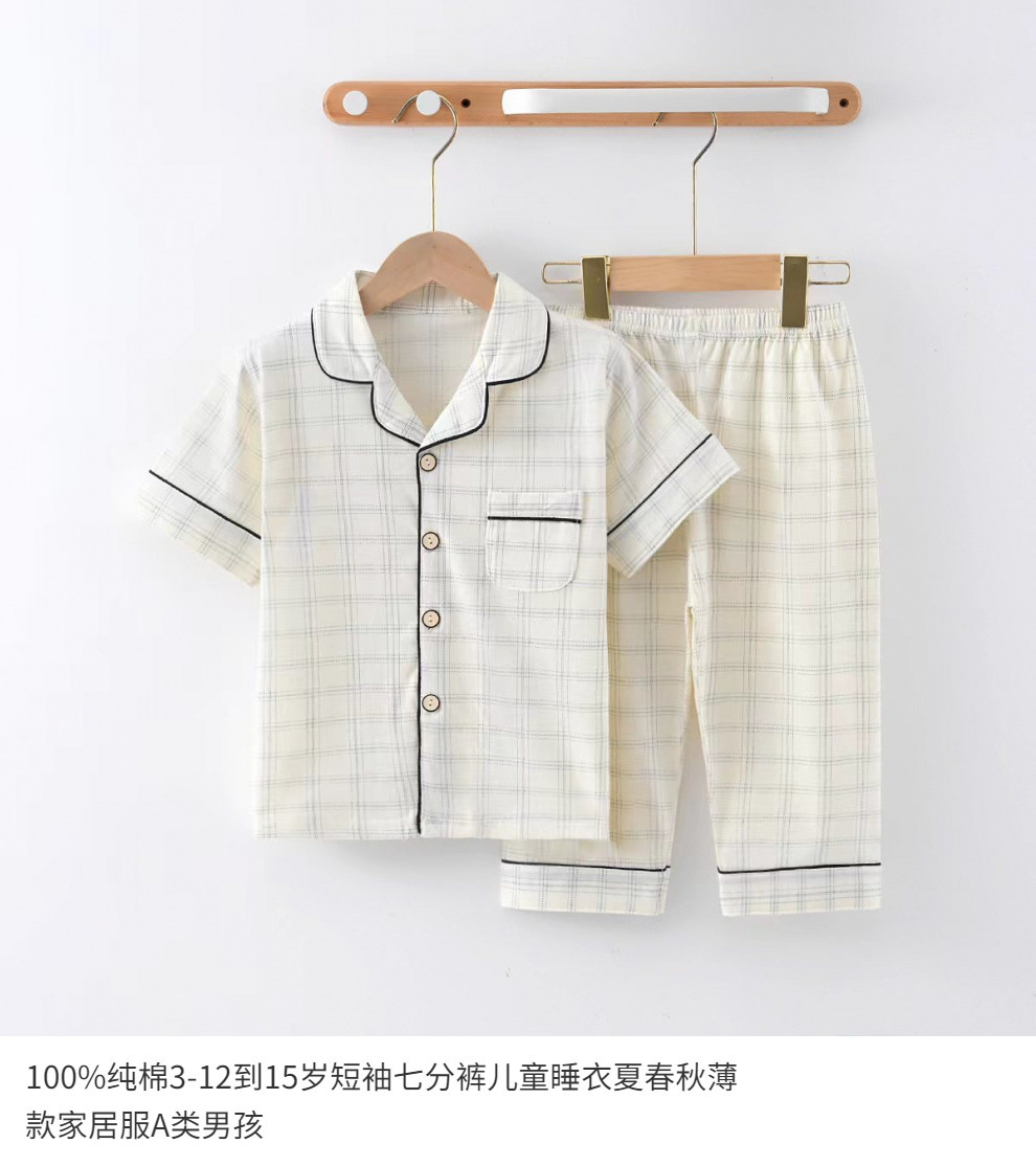 100% 면 여름 3-12 ~ 15 세 반팔 크롭 바지 아동 잠옷 봄, 가을 얇은 가정복 카테고리 A 소년