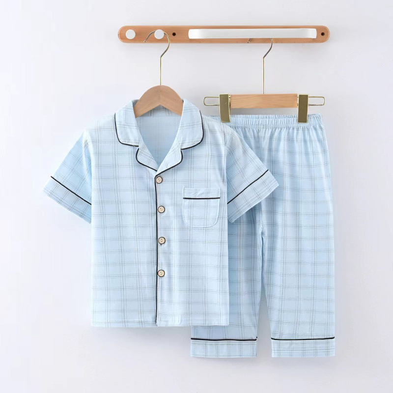 100% 면 여름 3-12 ~ 15 세 반팔 크롭 바지 아동 잠옷 봄, 가을 얇은 가정복 카테고리 A 소년스토어 가기