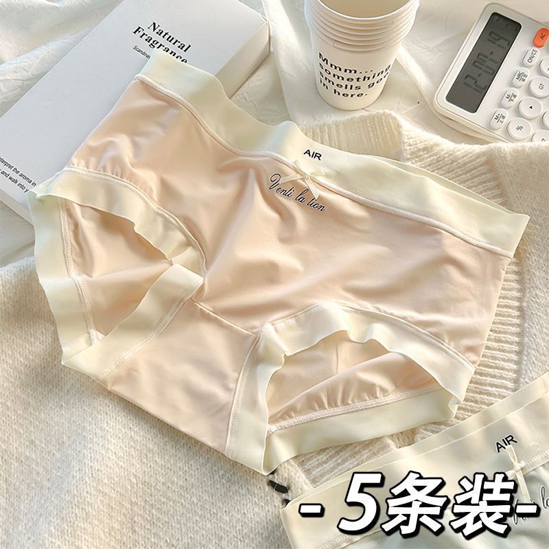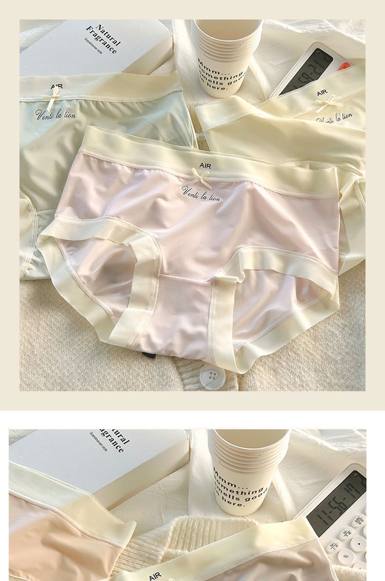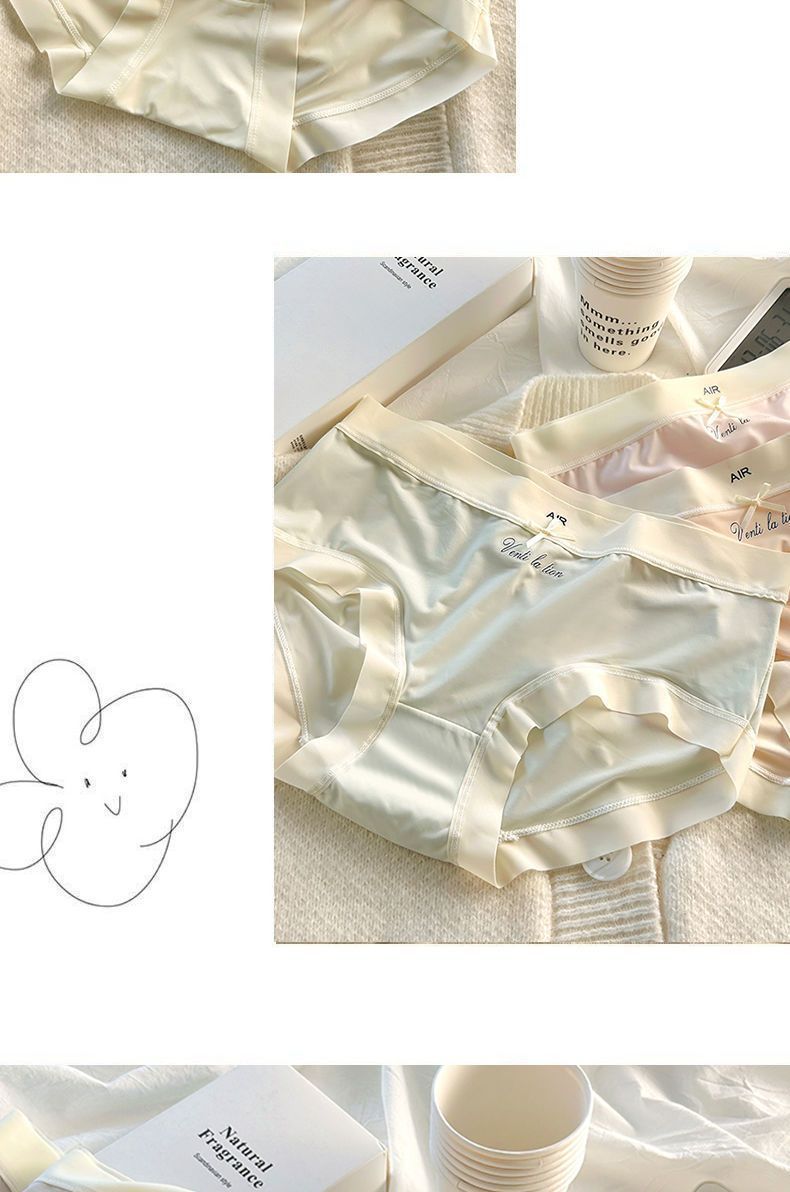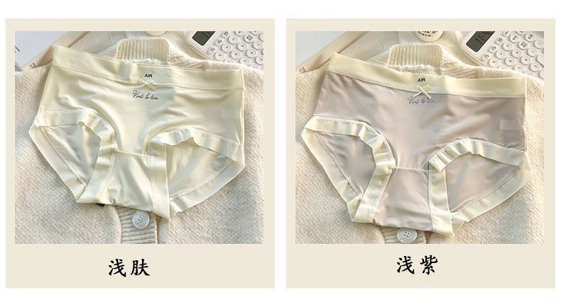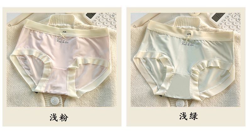 중간 높이 허리 초박형 시원한 원활한 얼음 실크 속옷, 확장된 항균 가랑이, 고탄성 및 편안한 여성용 팬티