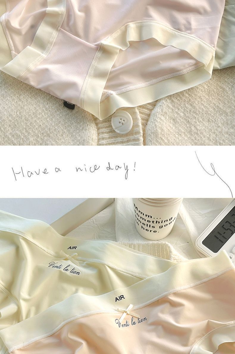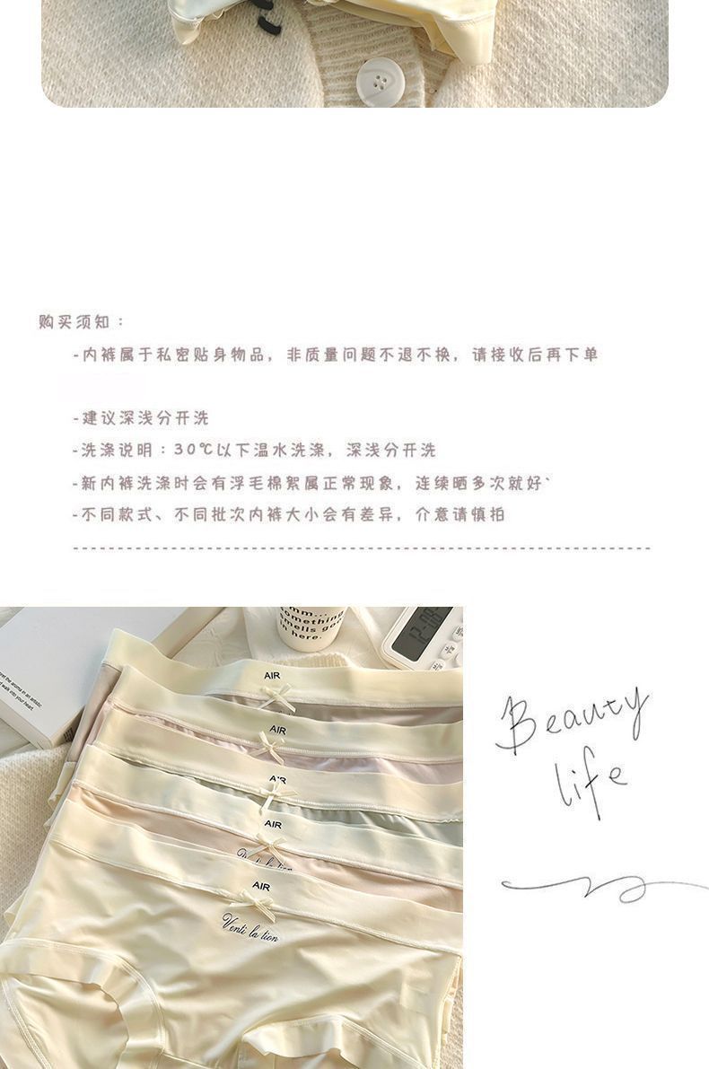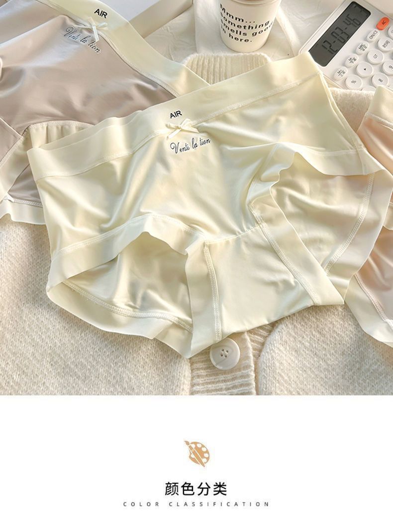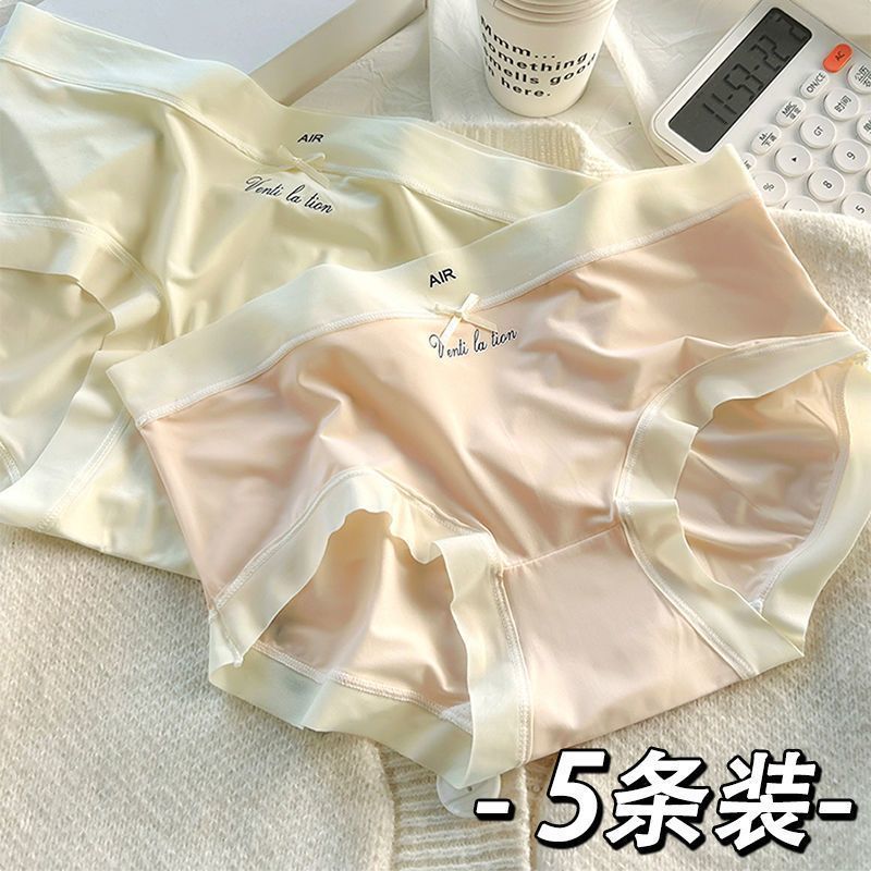 중간 높이 허리 초박형 시원한 원활한 얼음 실크 속옷, 확장된 항균 가랑이, 고탄성 및 편안한 여성용 팬티