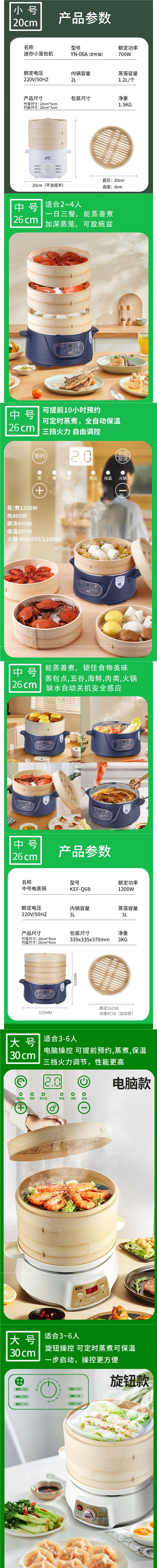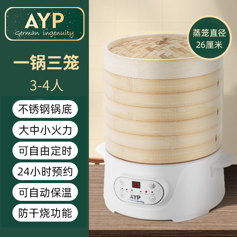 무료 배송 대나무 전기 찜통 가정용 3층 다기능 대용량 대나무 찜통 찐빵 만화 꽃 찐빵