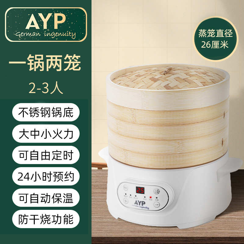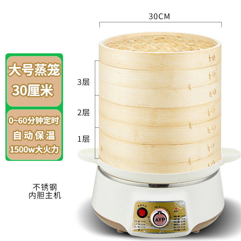 무료 배송 대나무 전기 찜통 가정용 3층 다기능 대용량 대나무 찜통 찐빵 만화 꽃 찐빵스토어 가기