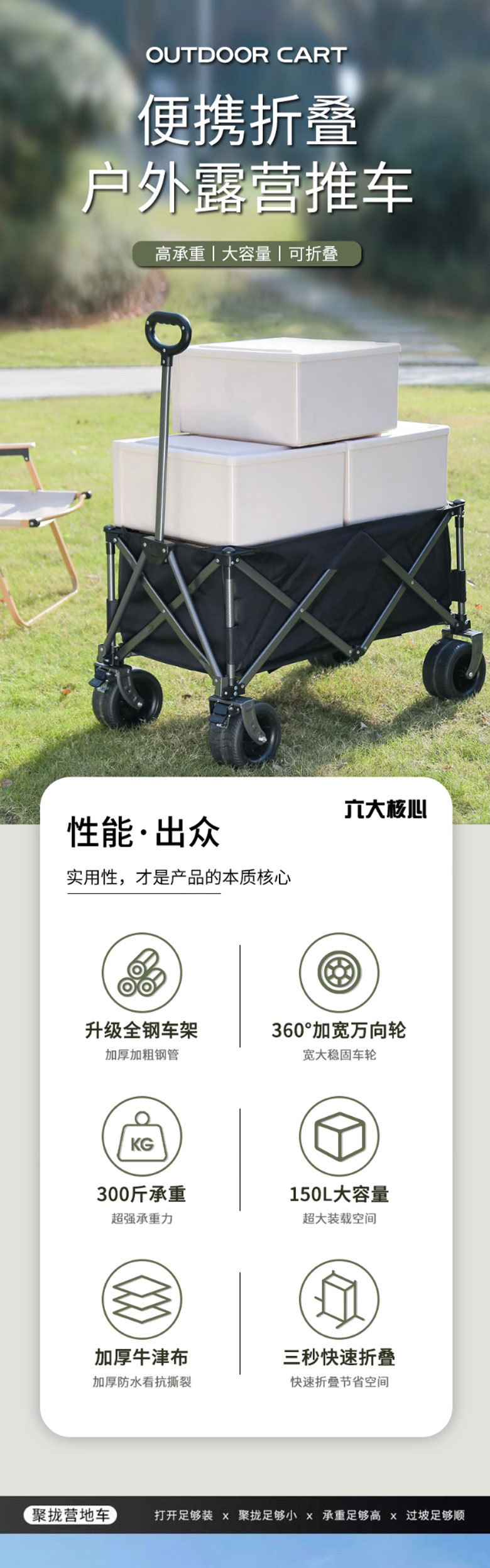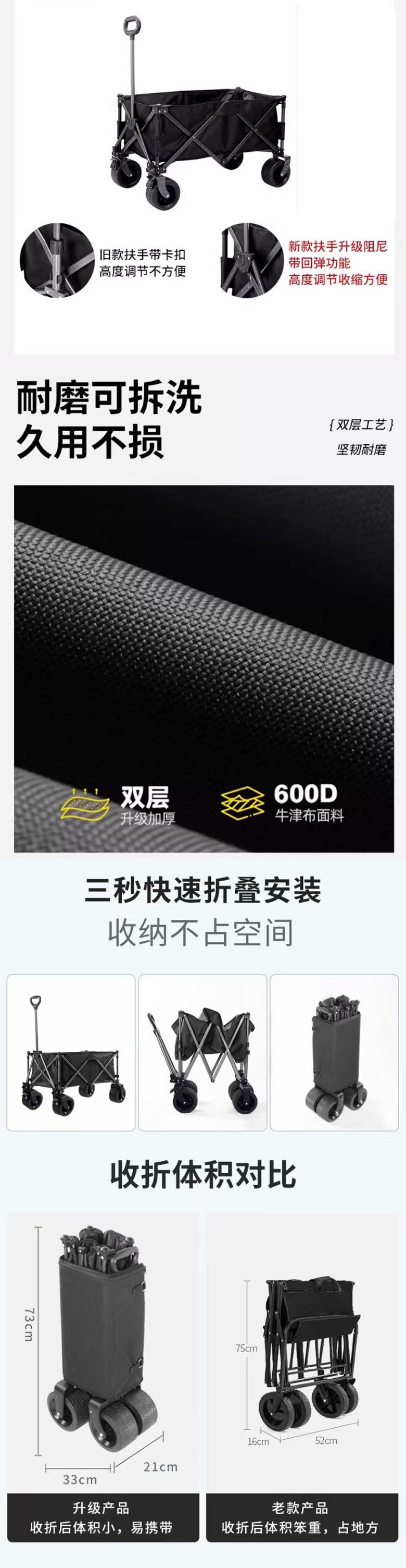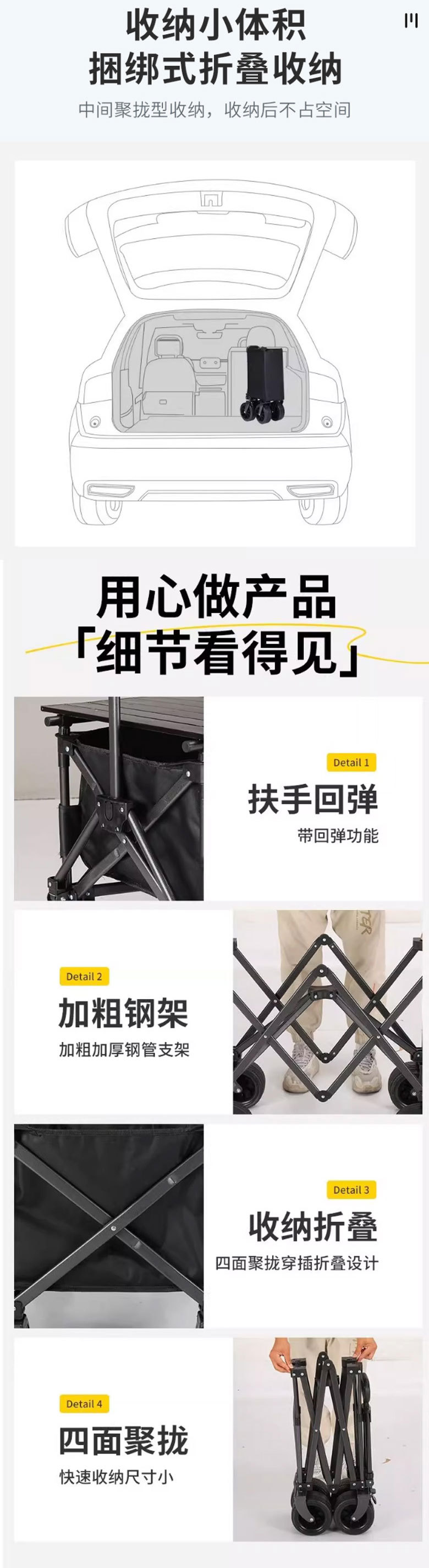 야외 캠핑카용 금속 접이식 다용도 트롤리, 4륜 다기능 트레일러, 오프로드 핸드카트스토어 가기