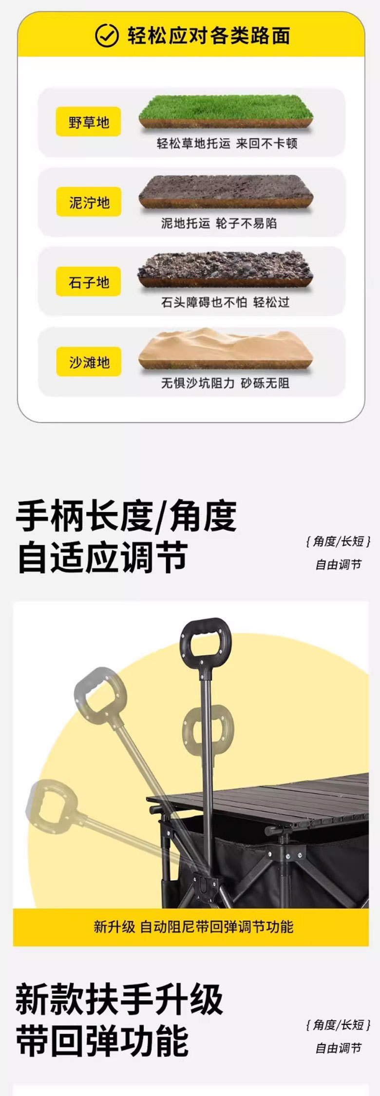 야외 캠핑카 금속 야외 접이식 푸시 트롤리 4륜 다기능 트레일러 오프로드 트롤리스토어 가기