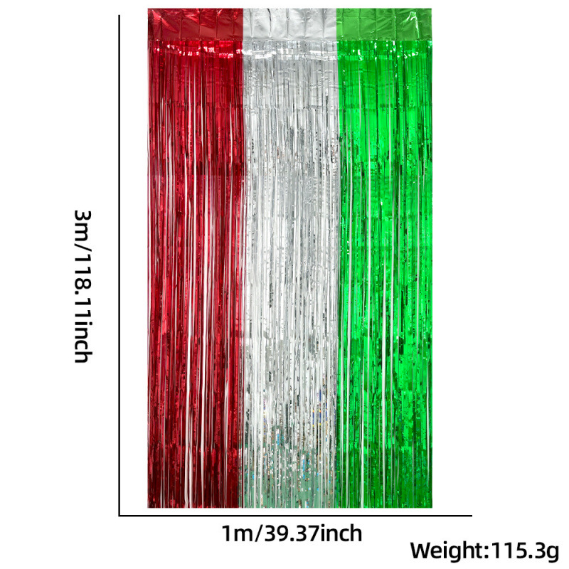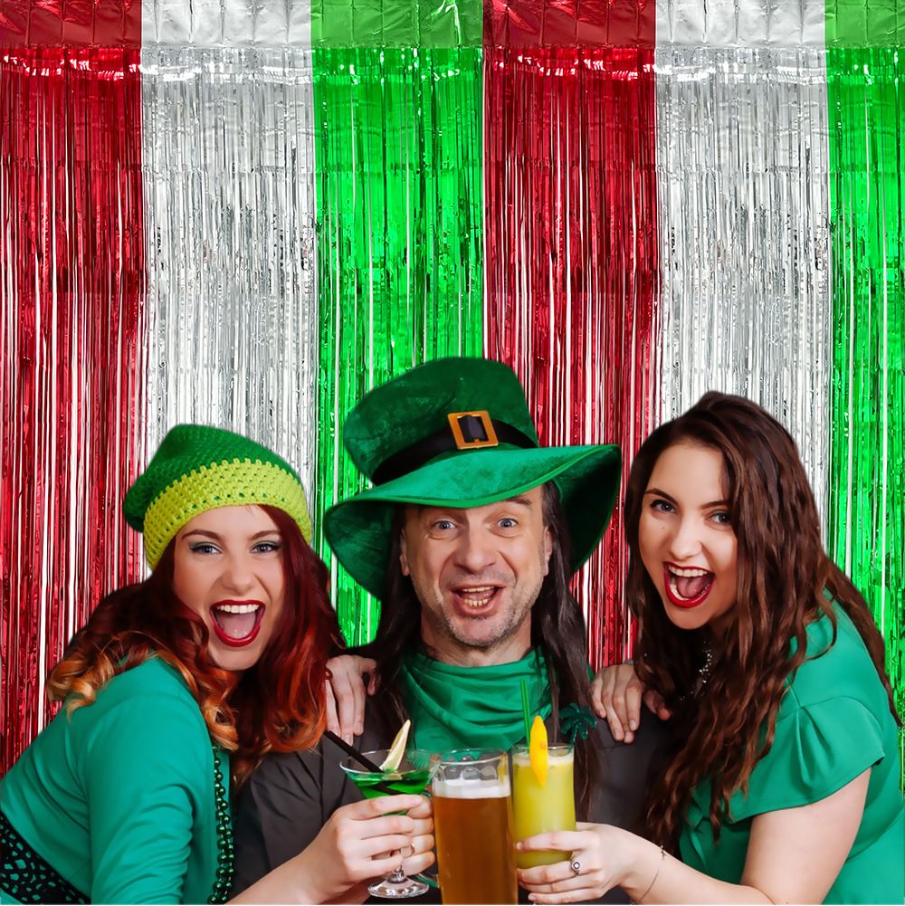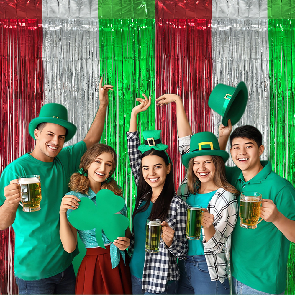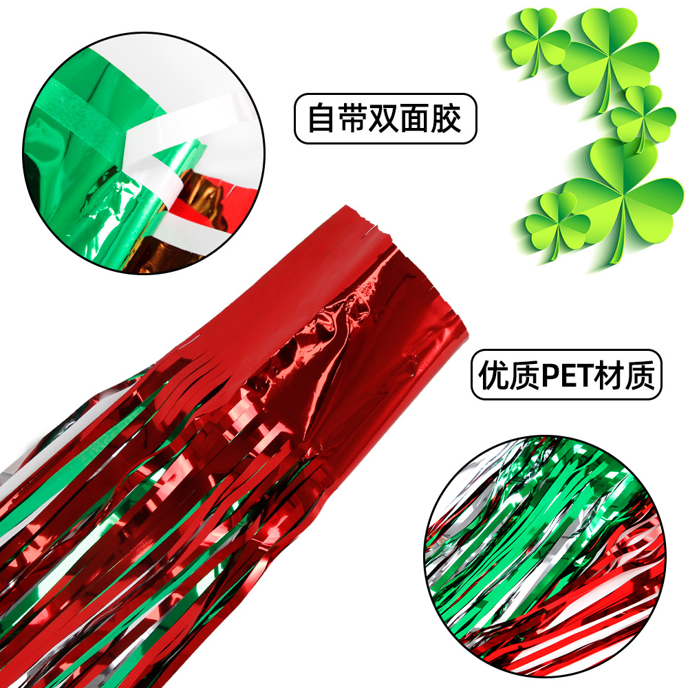 레드 실버 그린 브라이트 레인 실크 커튼 아일랜드 성 패트릭의 날 파티 장식 3 색 접합 레인 실크 커튼 술스토어 가기