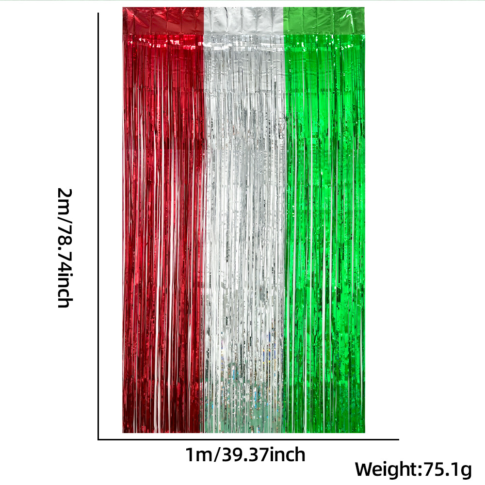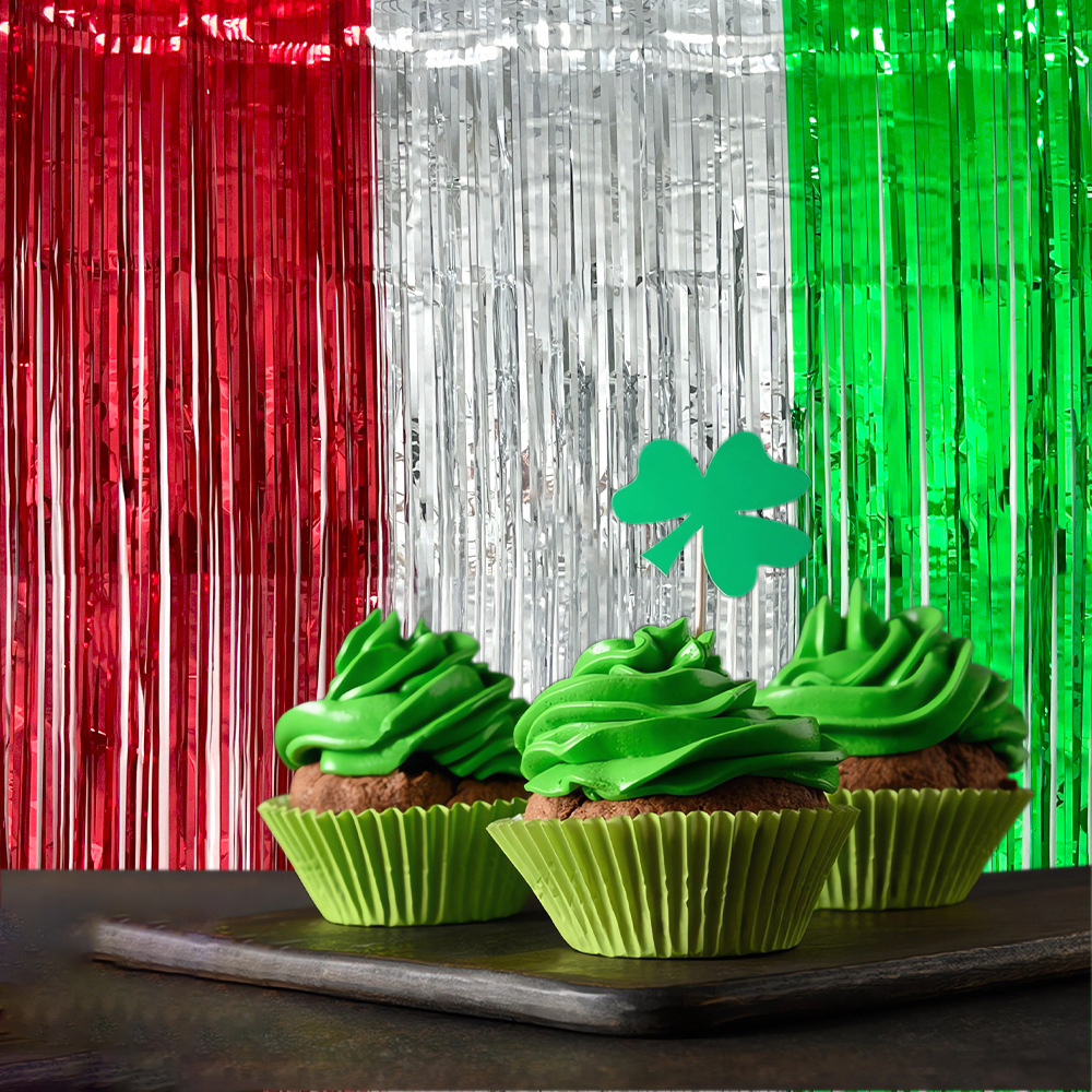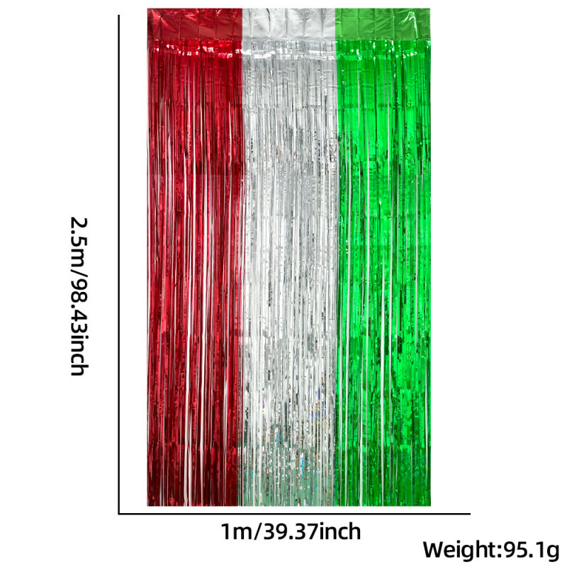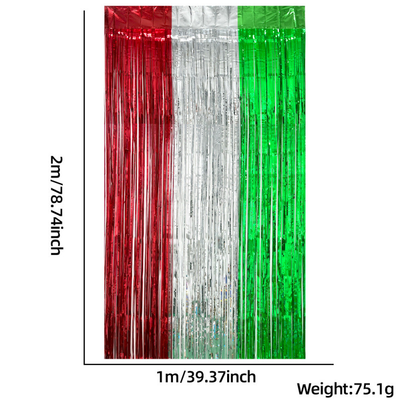 레드 실버 그린 브라이트 레인 실크 커튼 아일랜드 성 패트릭의 날 파티 장식 3 색 접합 레인 실크 커튼 술스토어 가기