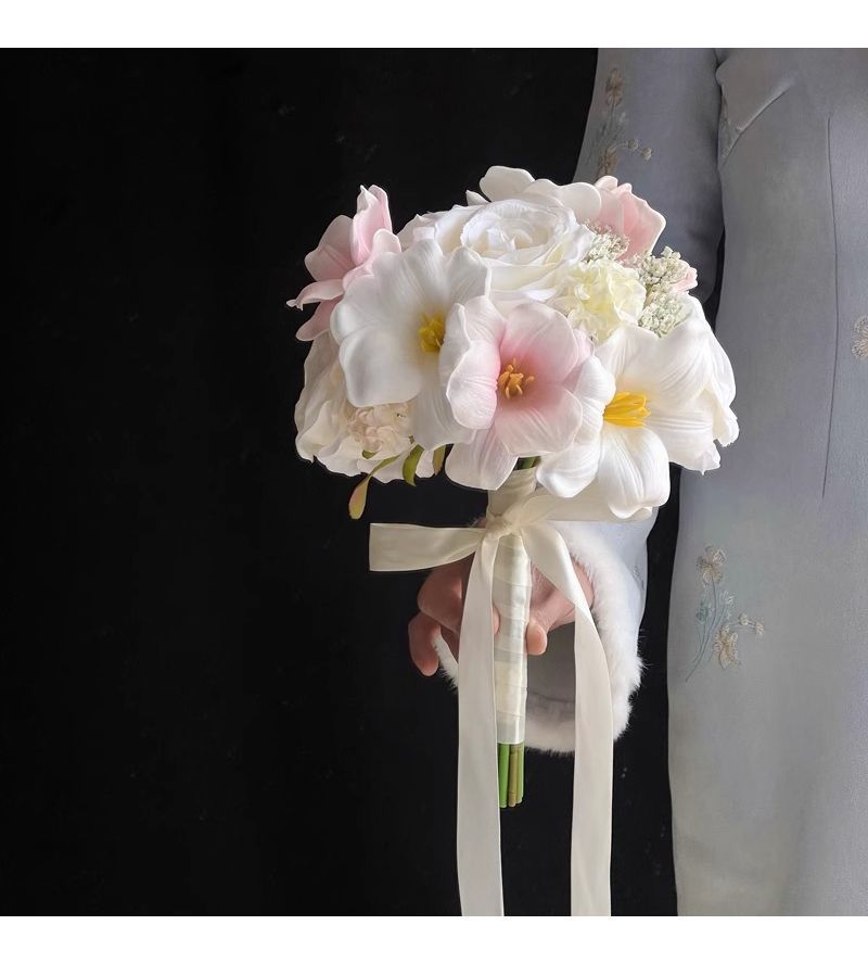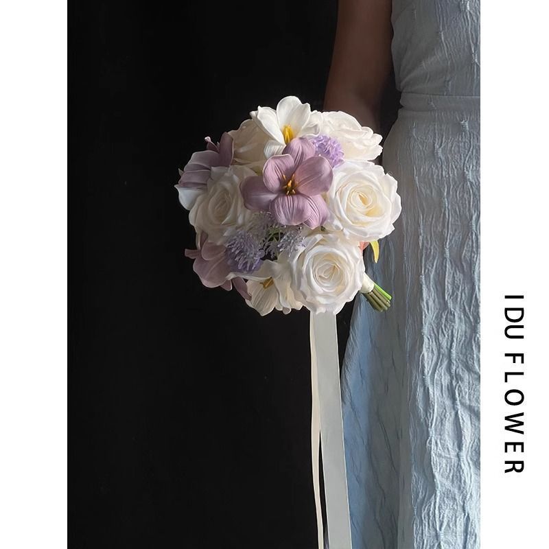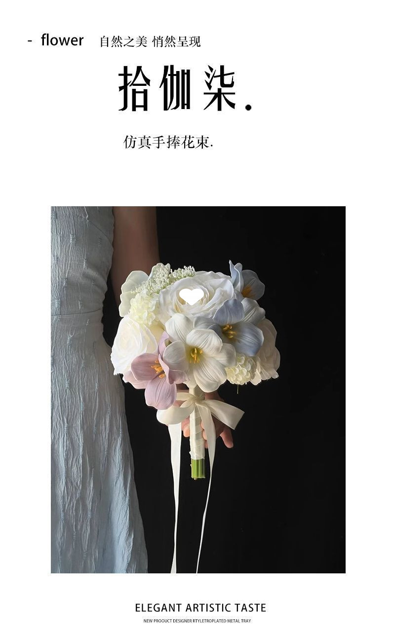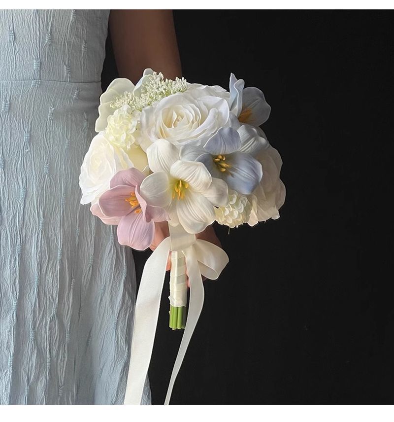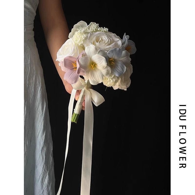 인스타일 시뮬레이션 튤립 부케 인증서 약혼 영원한 생활 꽃다발 신부 결혼식 장식 사진 소품스토어 가기