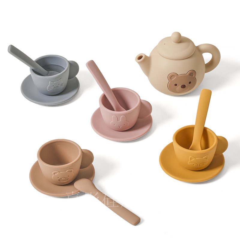 어린이 놀이 장난감 곰 모양 애프터눈 티 세트 역할 놀이 씹을 수있는 삶은 실리콘 장난감