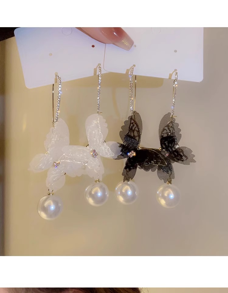 나비 메쉬 진주 펜던트 귀걸이 2025 새로운 핫 스타일 하이 엔드 귀걸이 여성을위한 라이트 럭셔리 틈새 귀고리 귀걸이스토어 가기